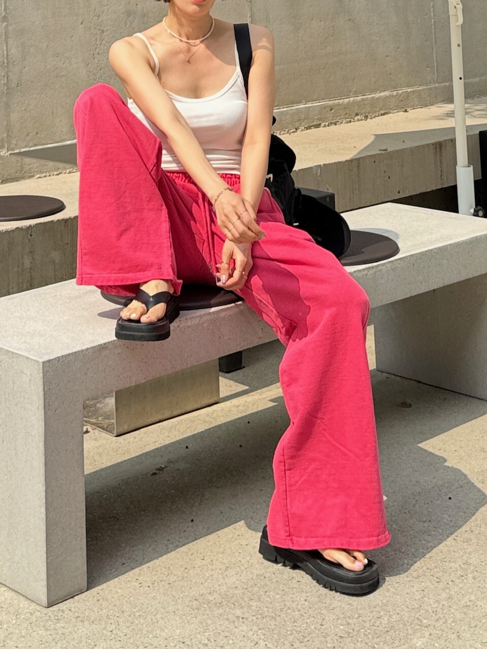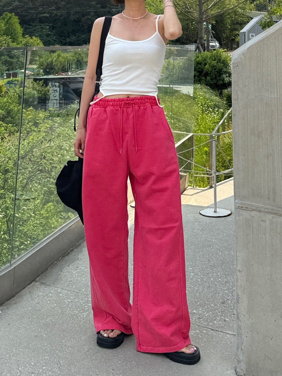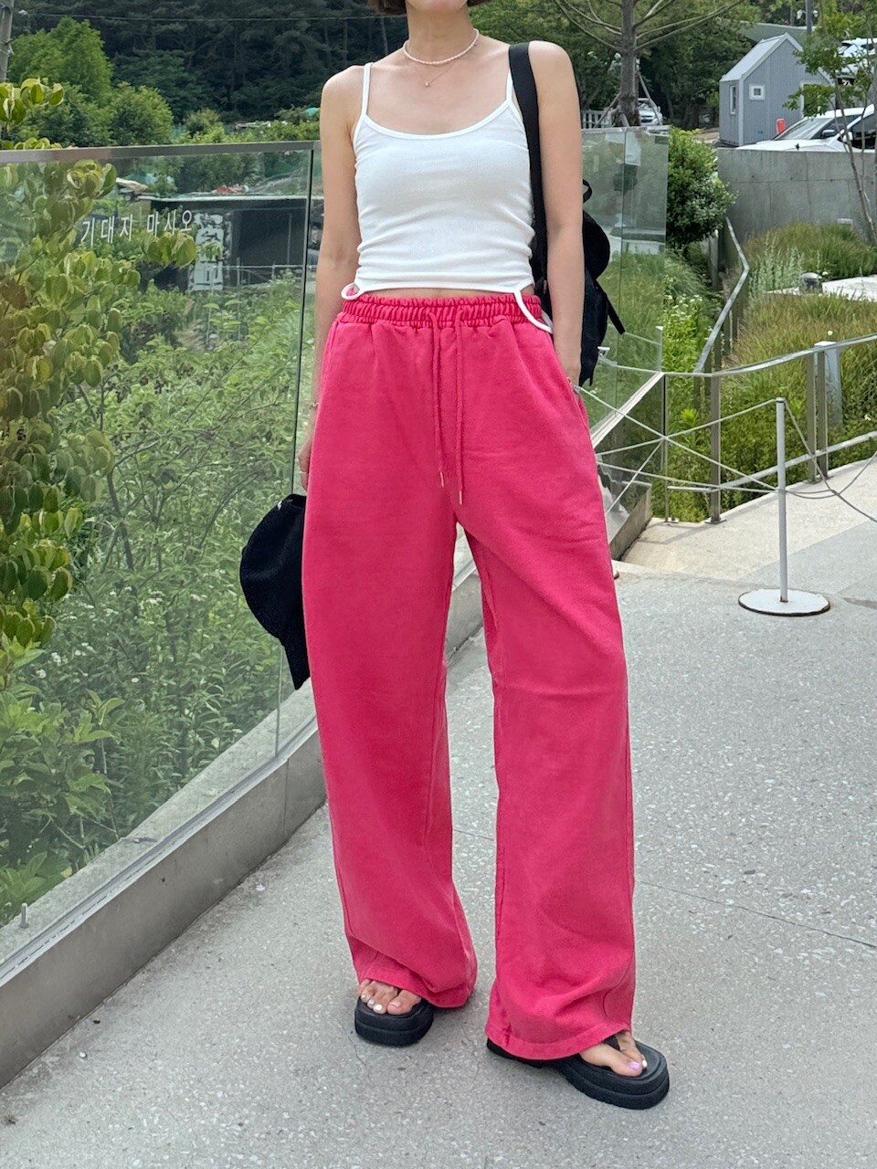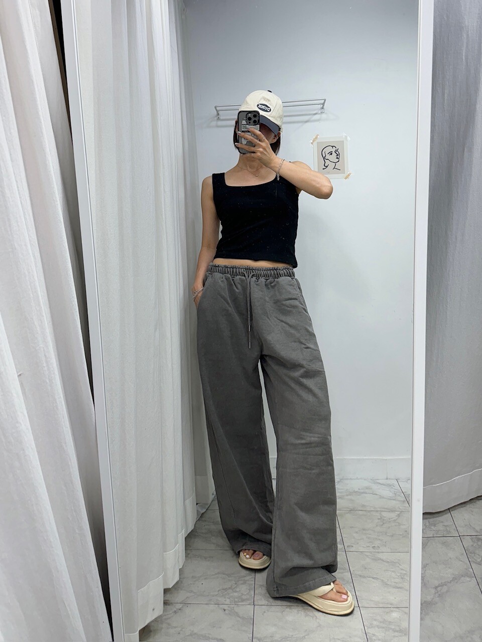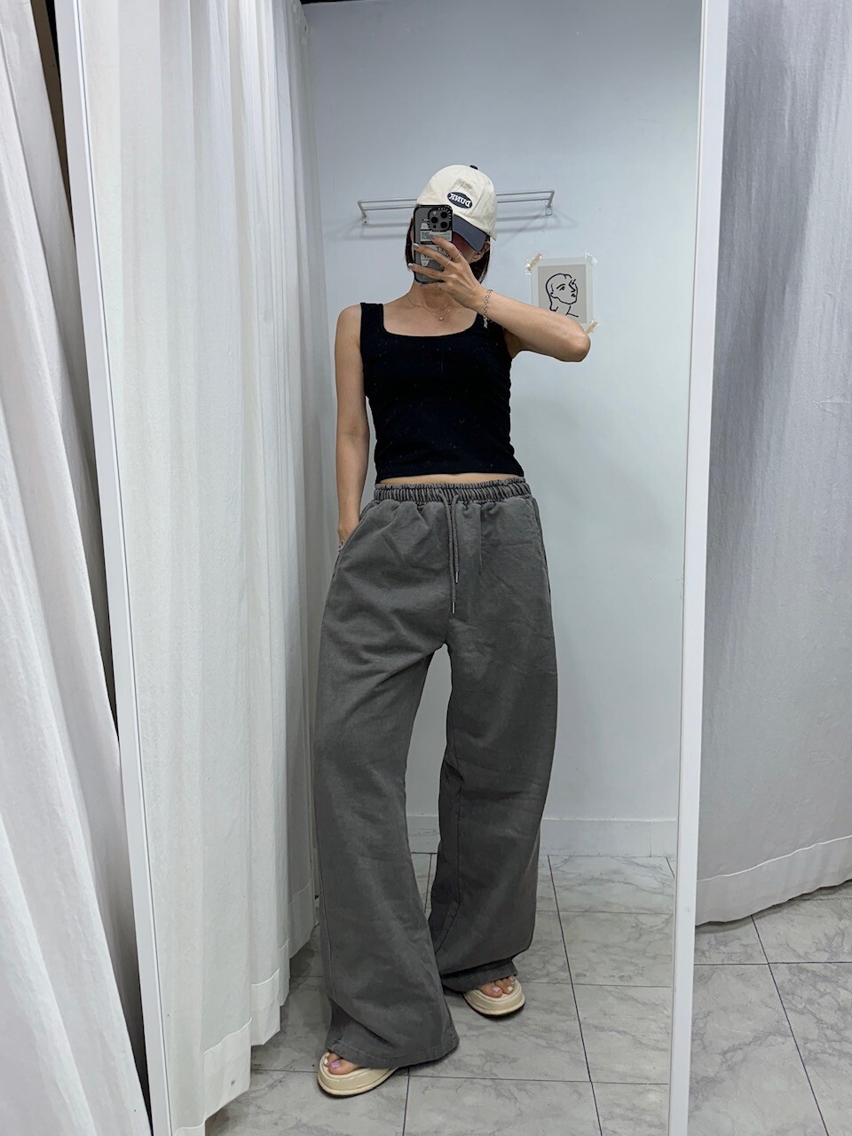 남녀공용 입기 좋은 피그먼트 와이드 밴딩 팬츠