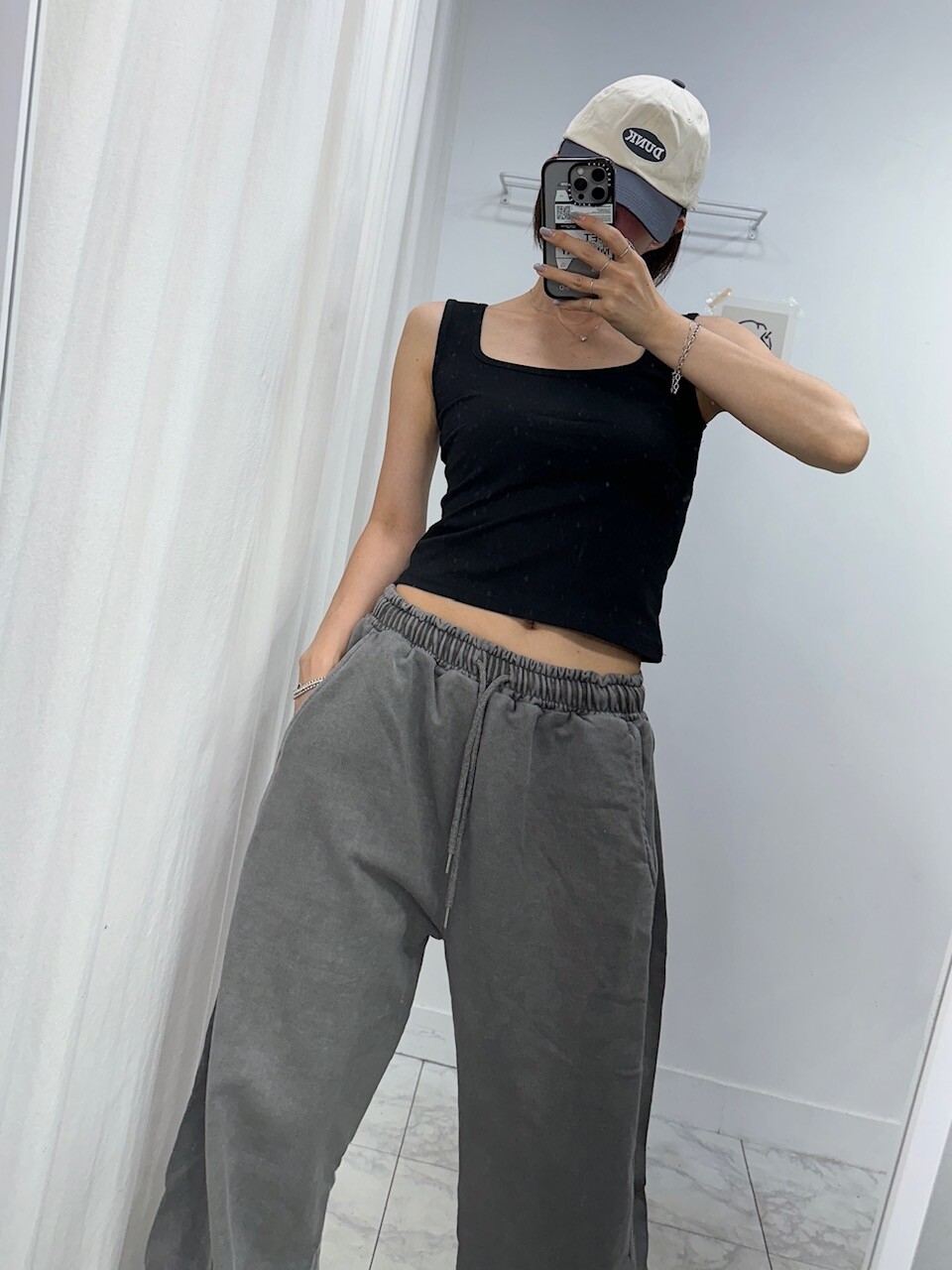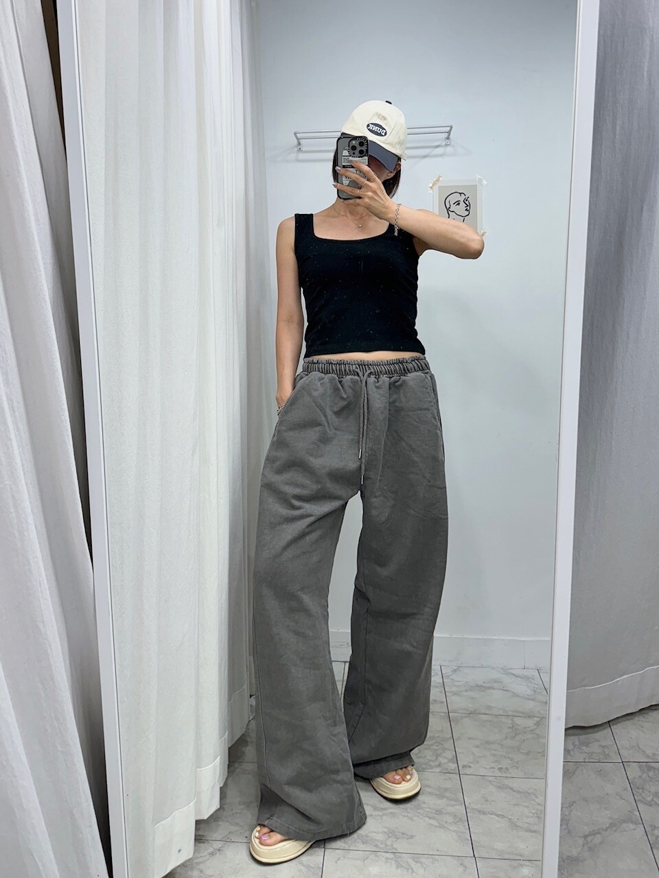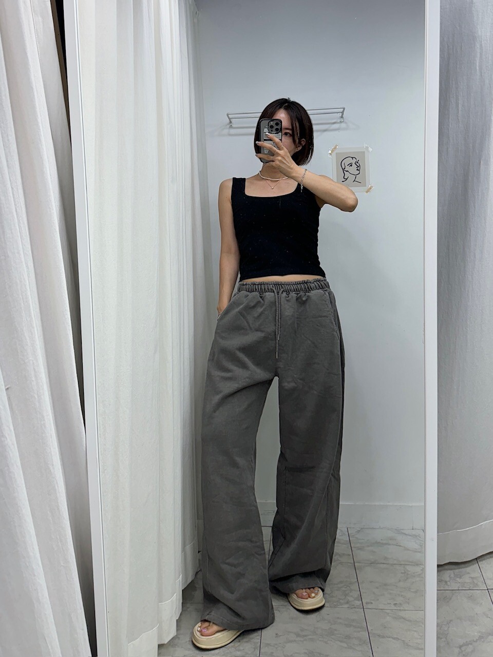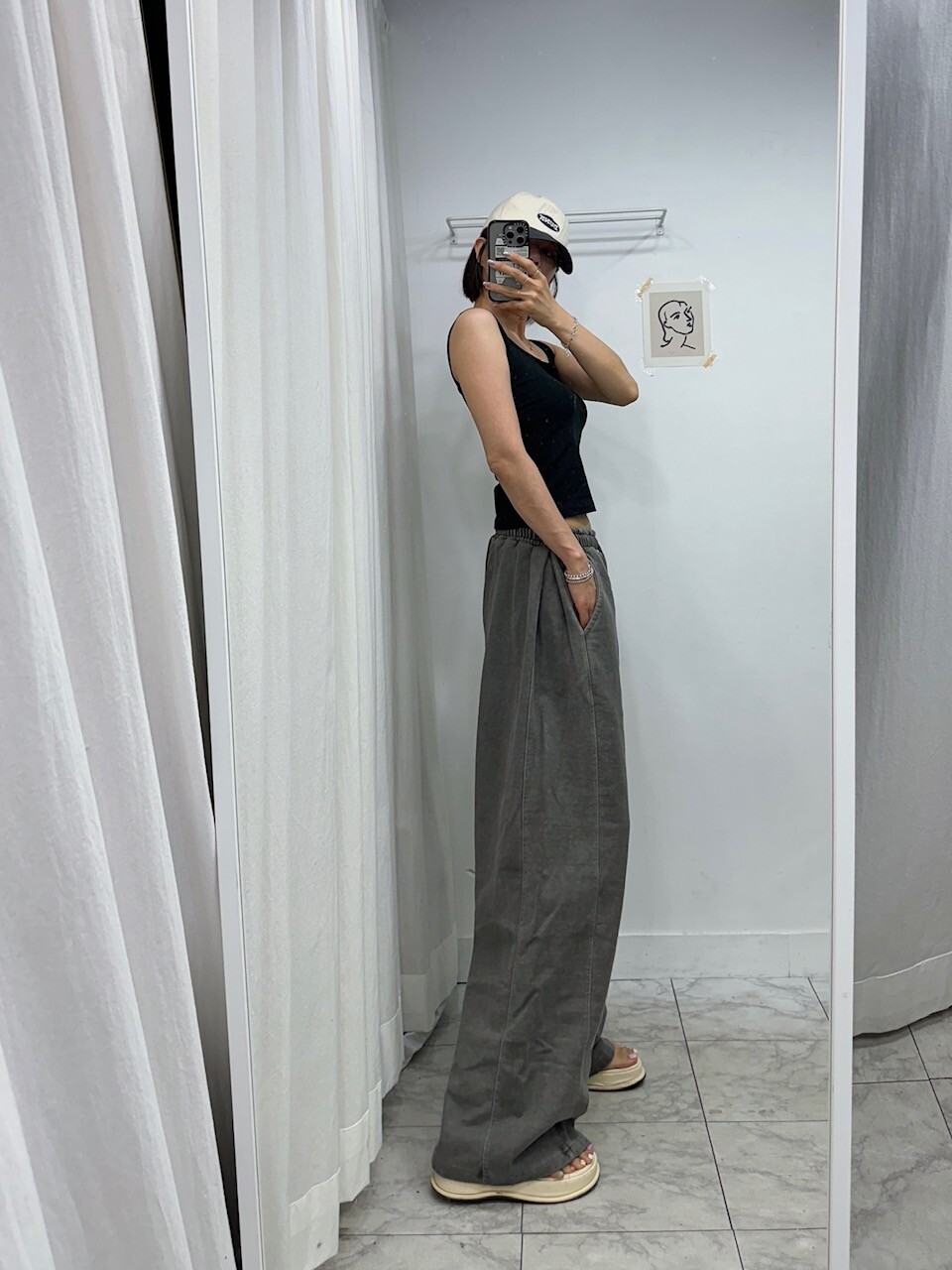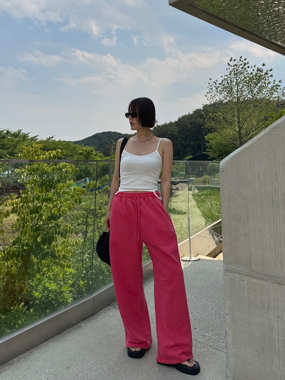 남녀공용 입기 좋은 피그먼트 와이드 밴딩 팬츠