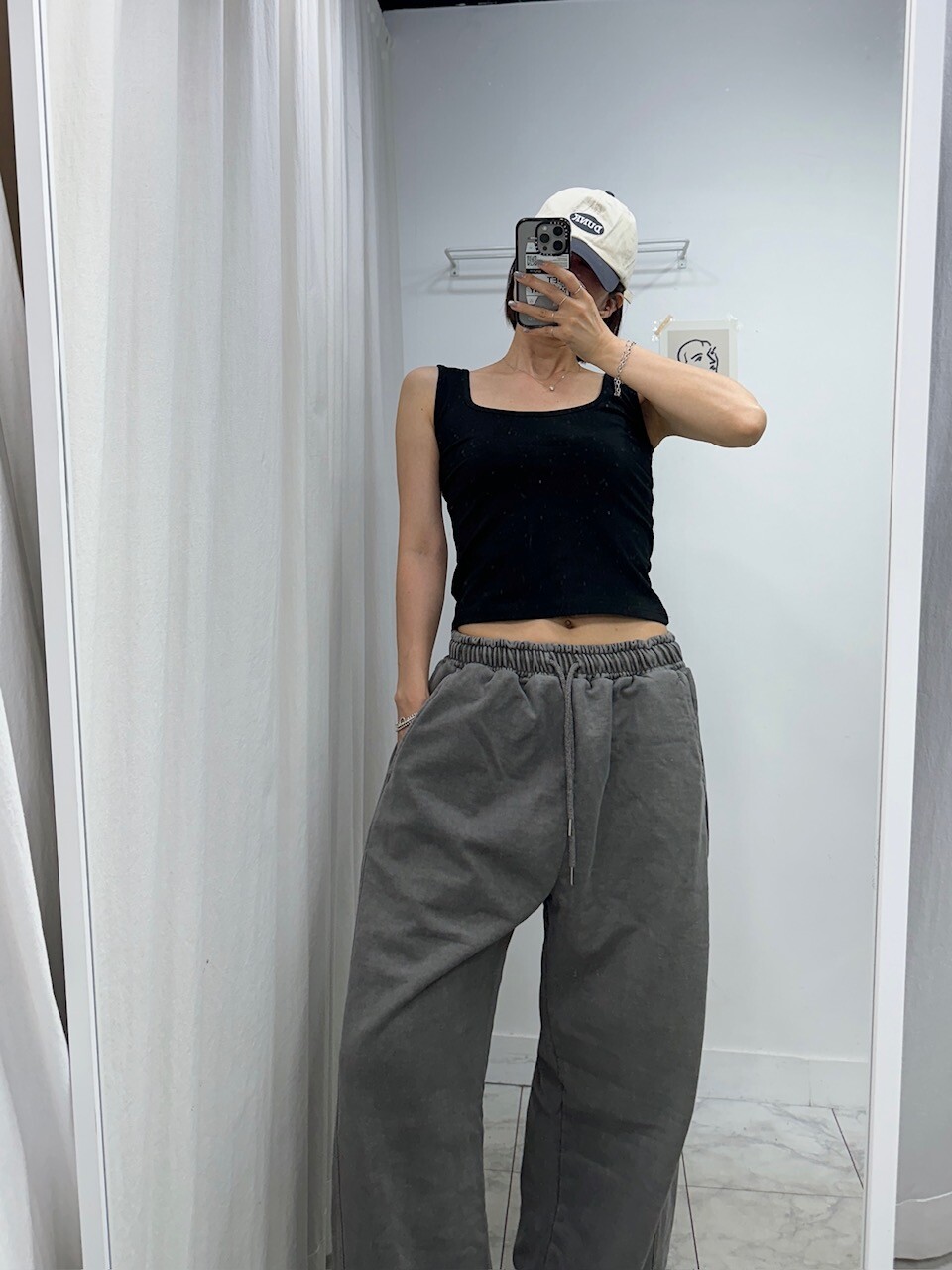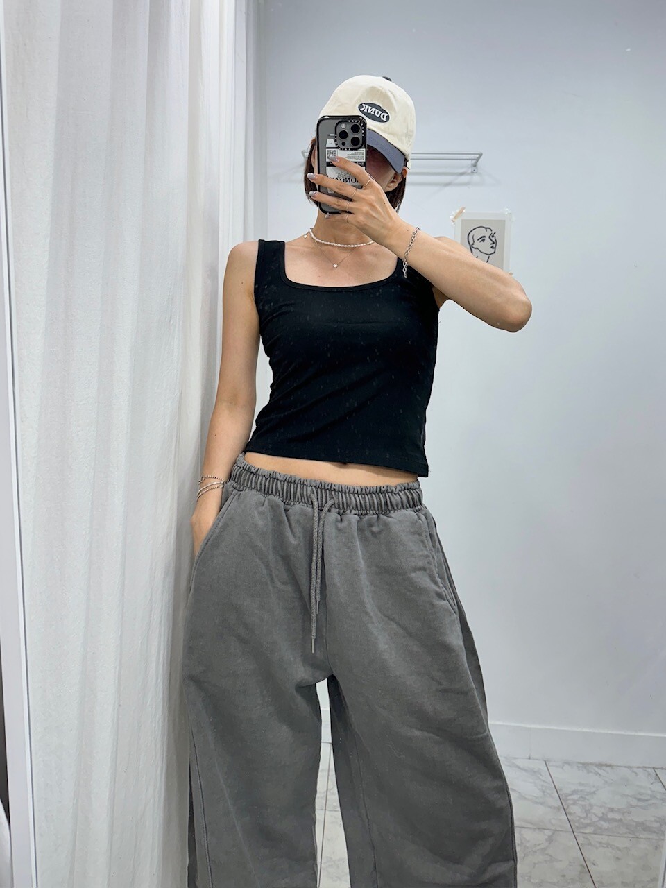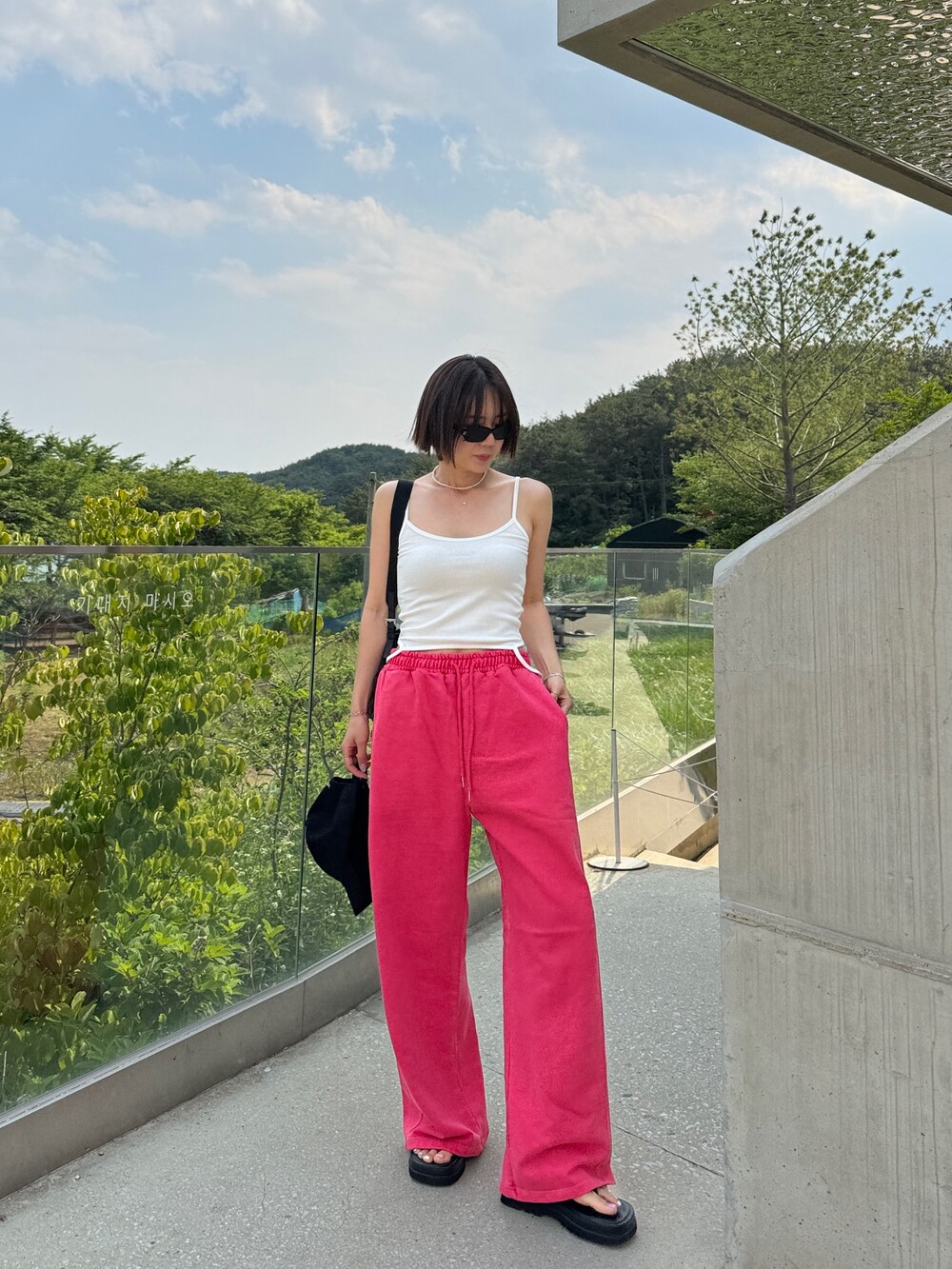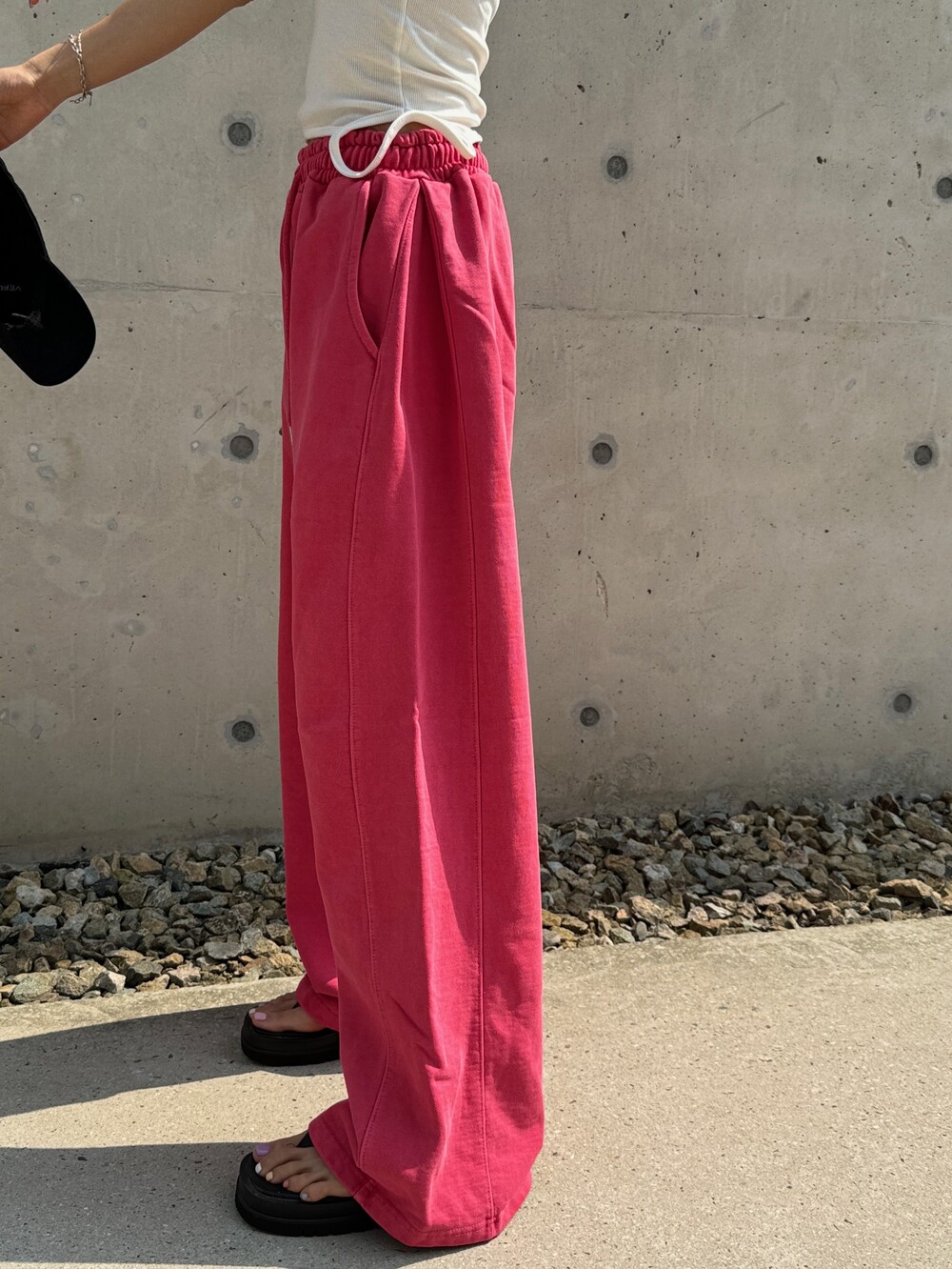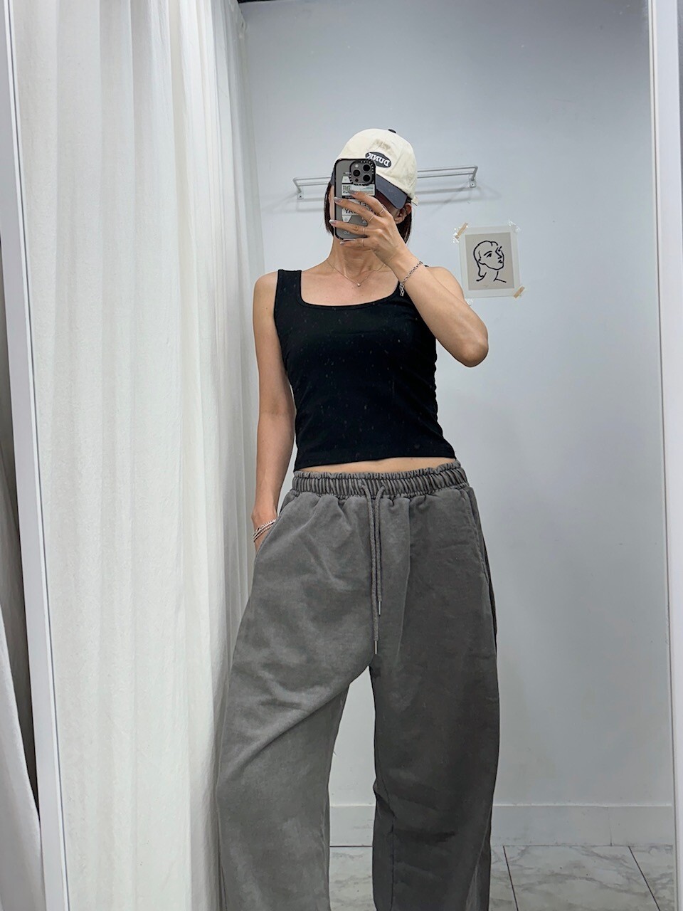 남녀공용 입기 좋은 피그먼트 와이드 밴딩 팬츠