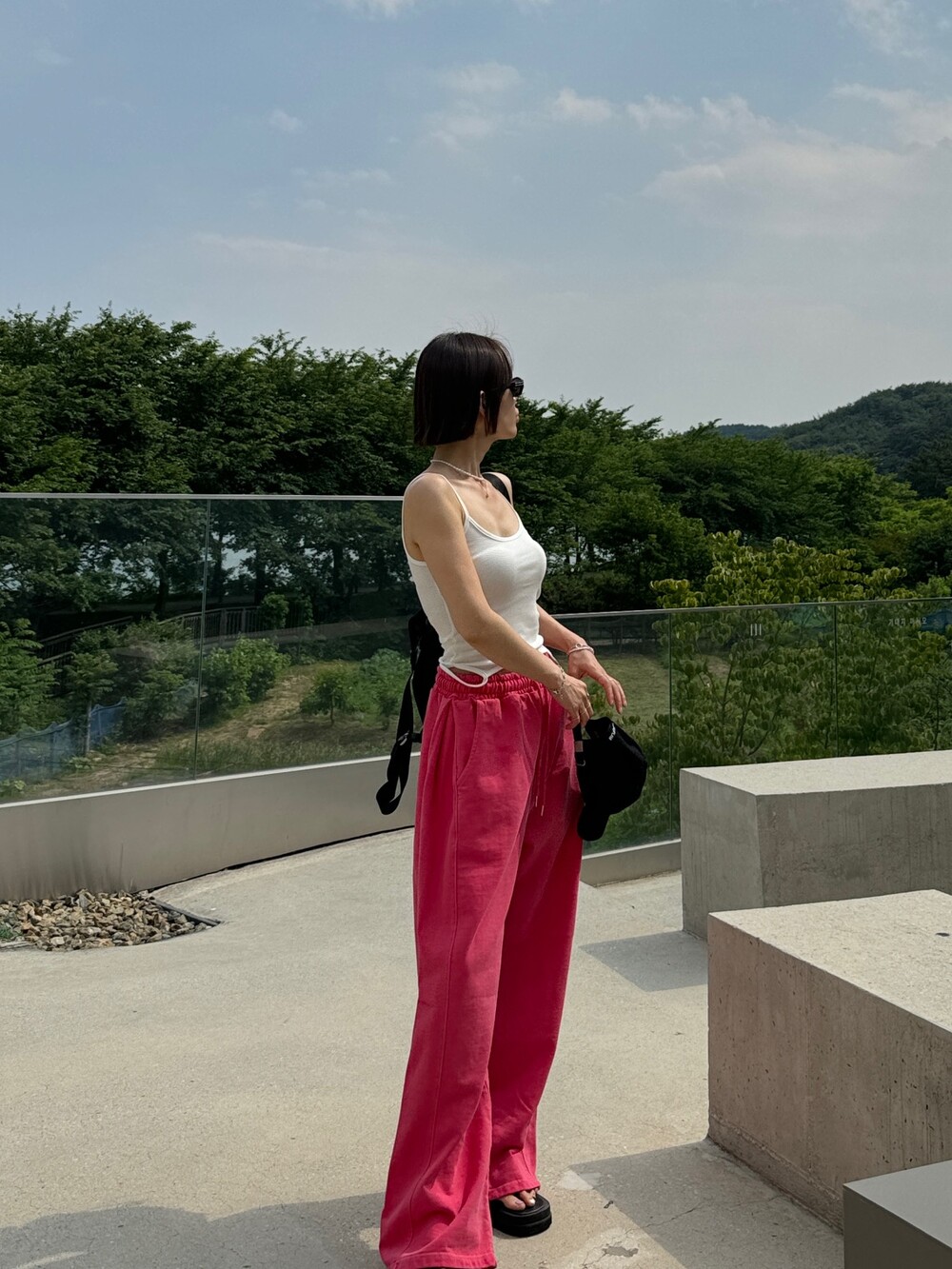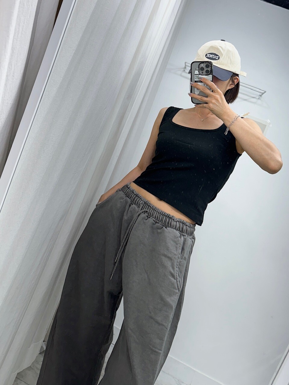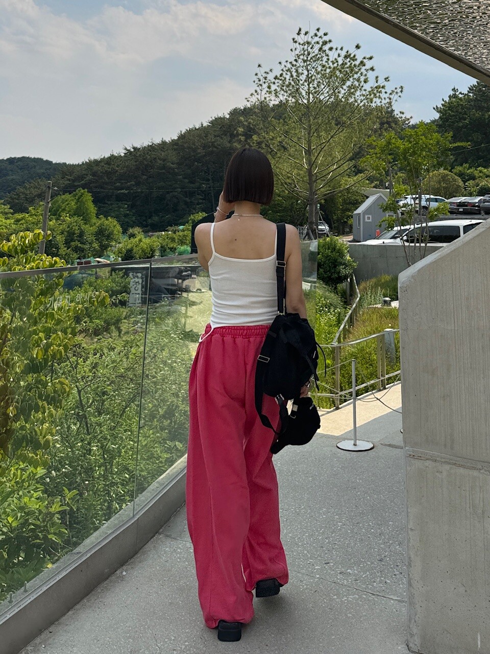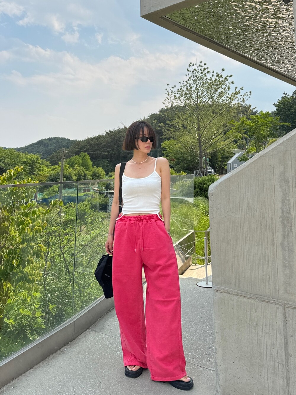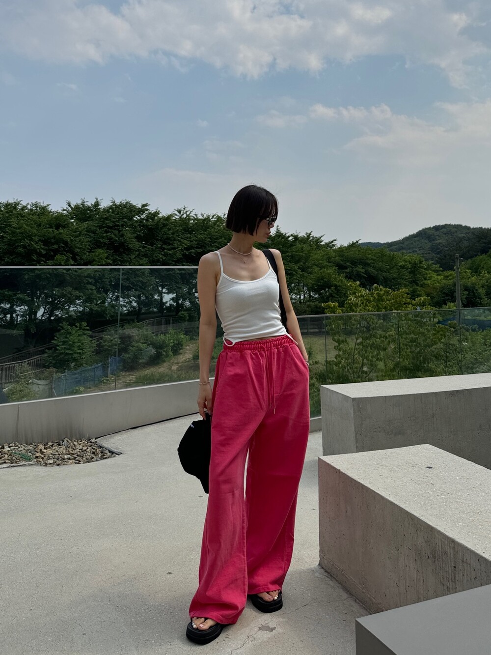 남녀공용 입기 좋은 피그먼트 와이드 밴딩 팬츠