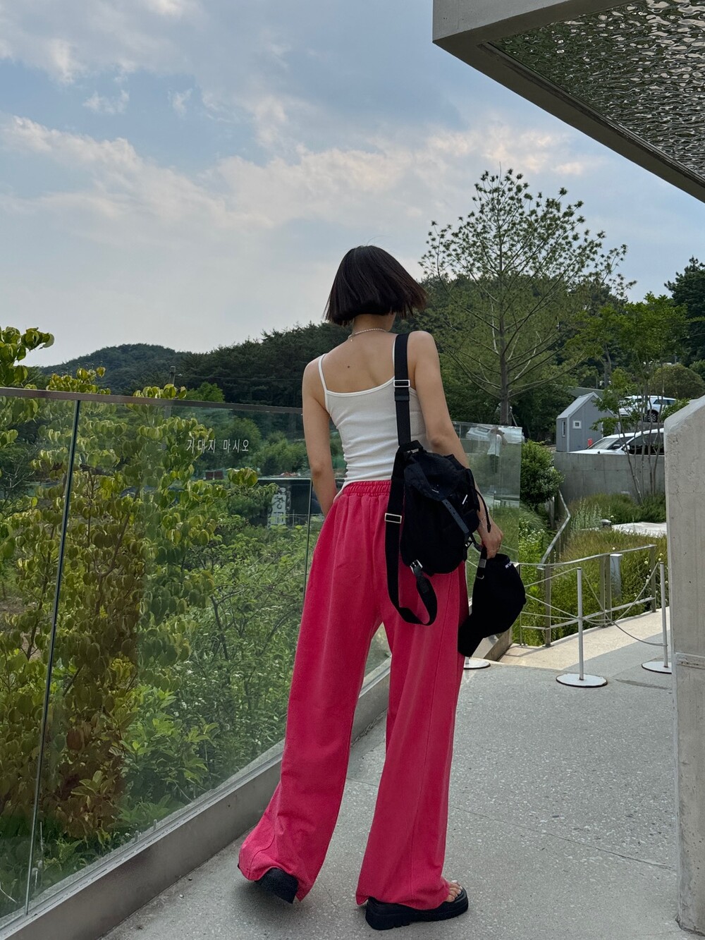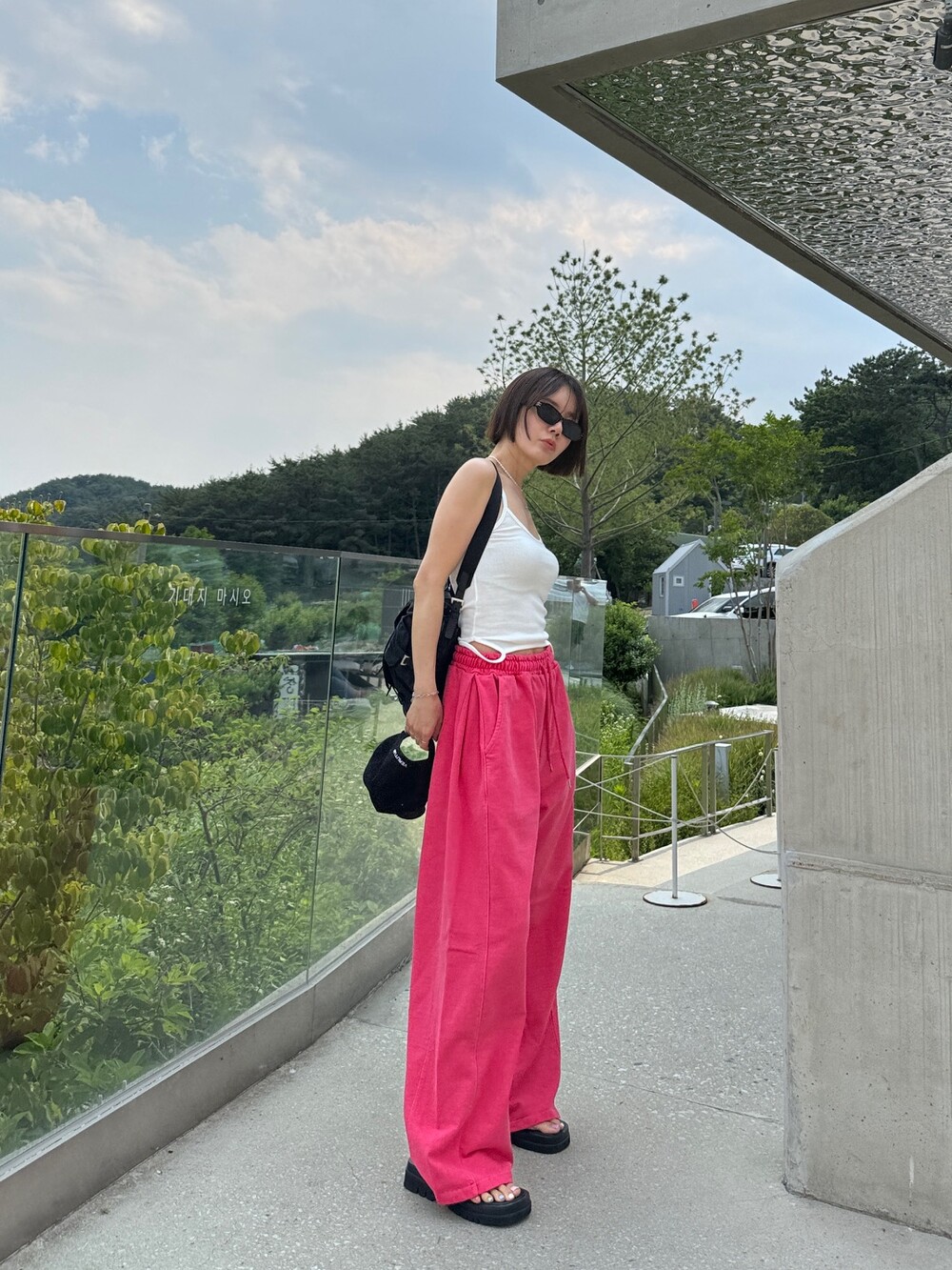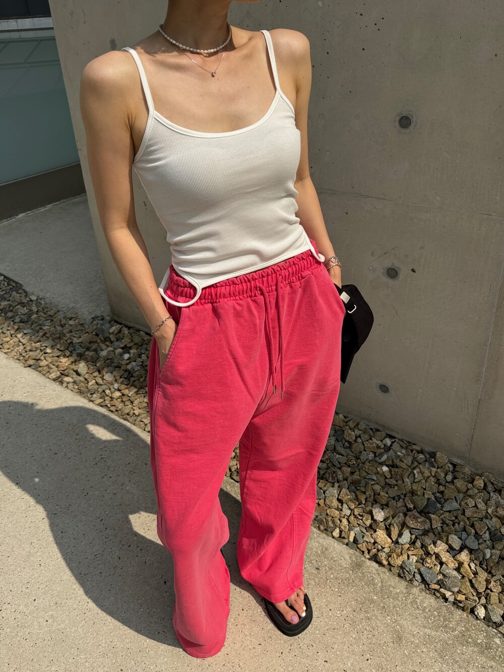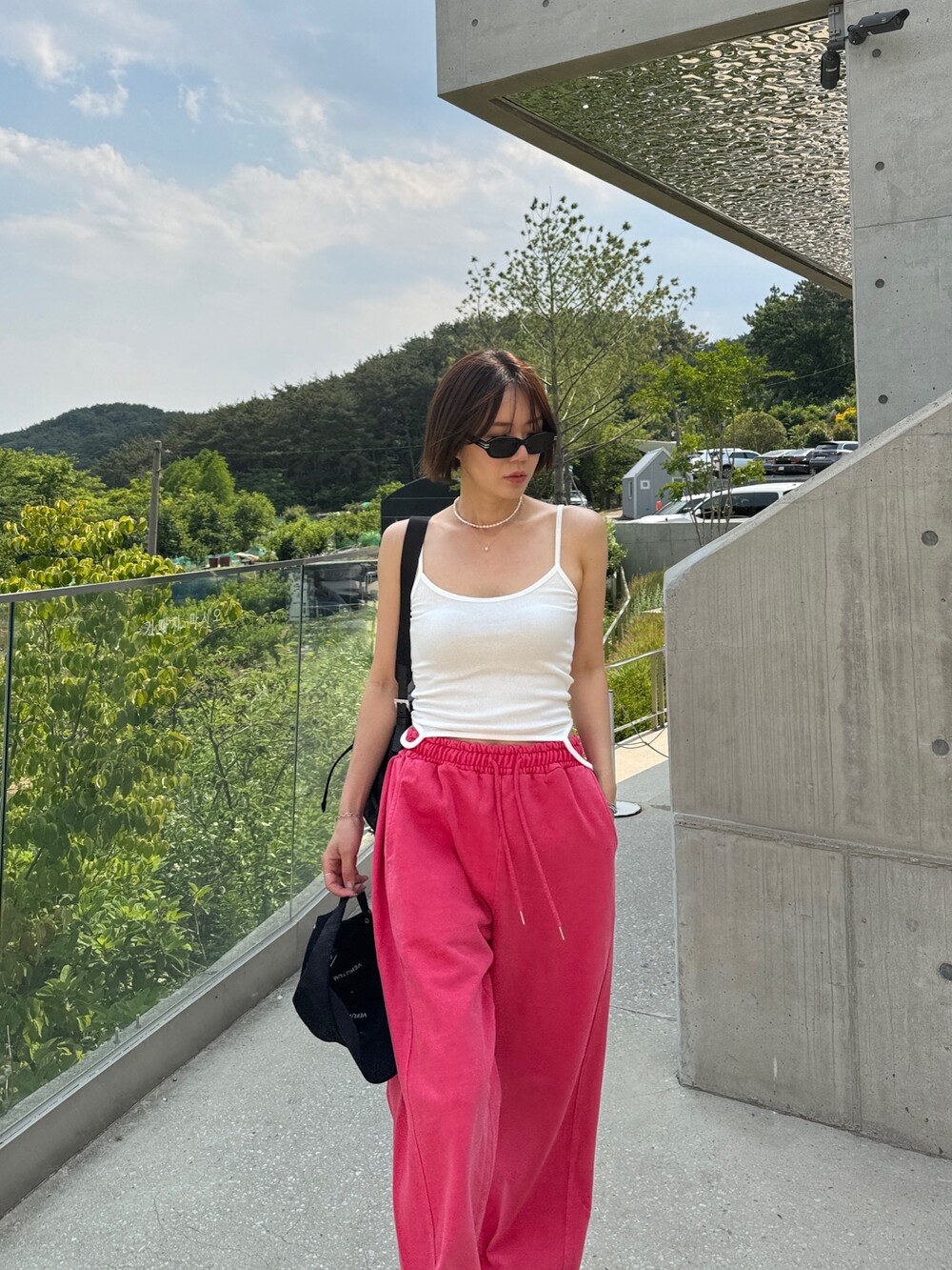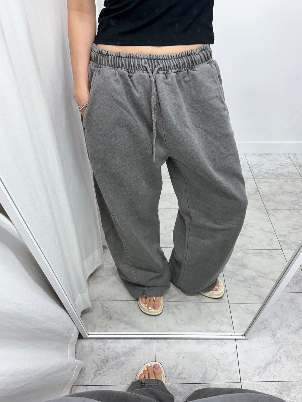 남녀공용 입기 좋은 피그먼트 와이드 밴딩 팬츠