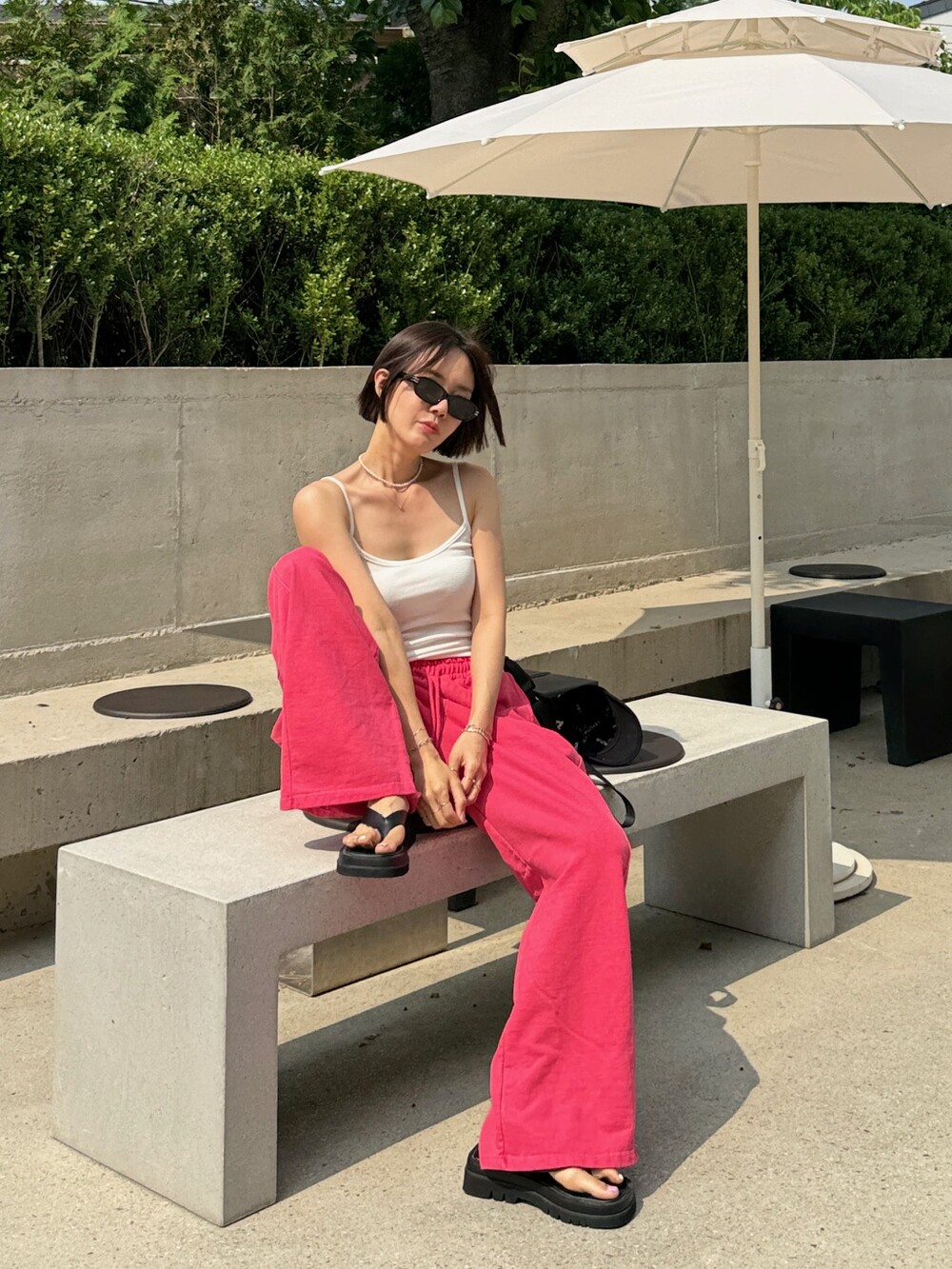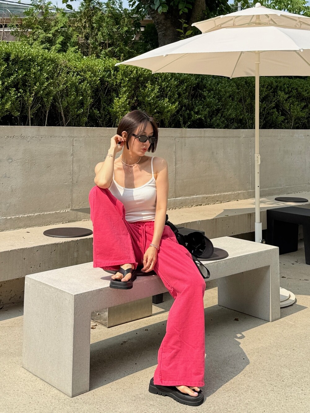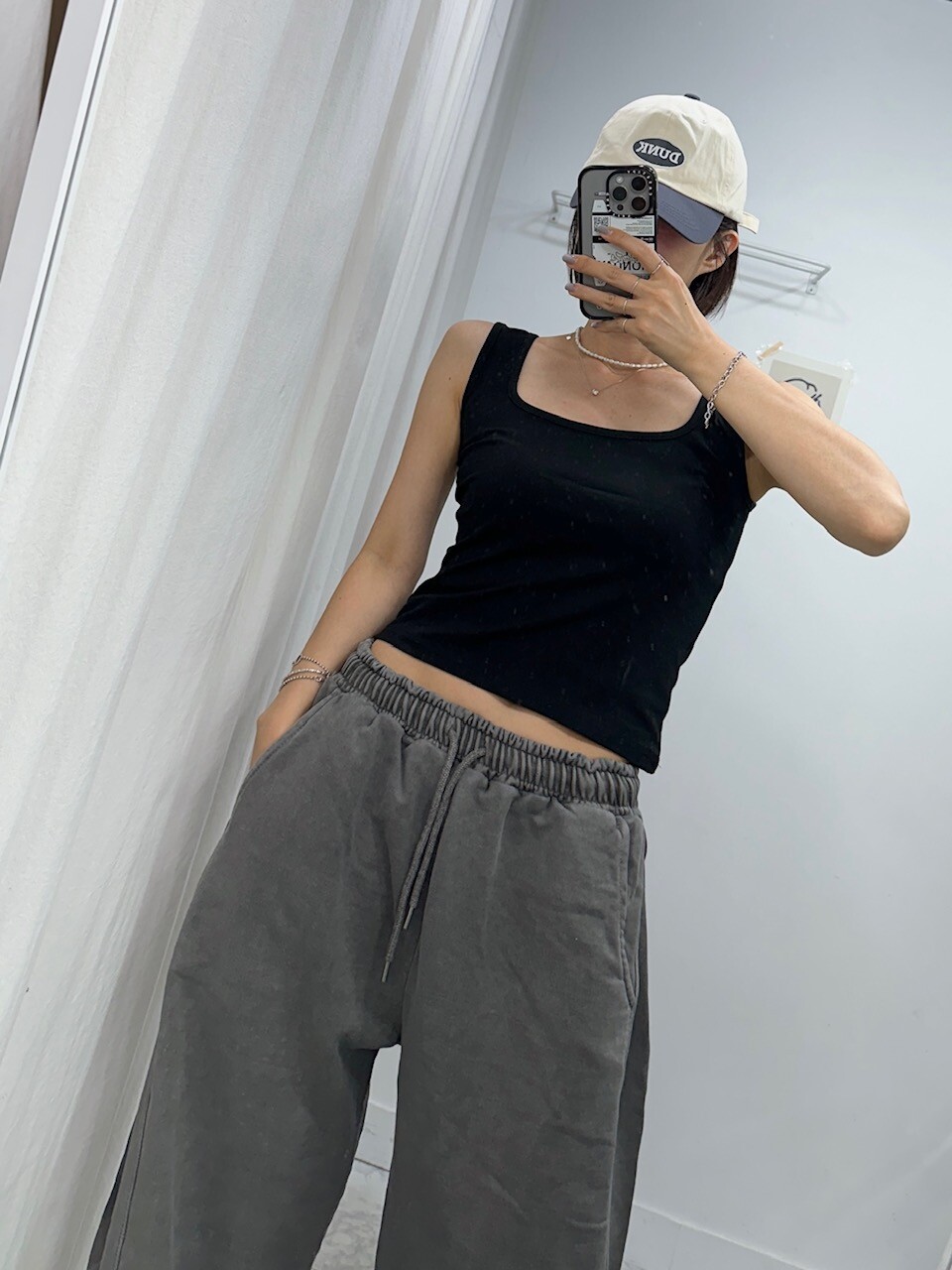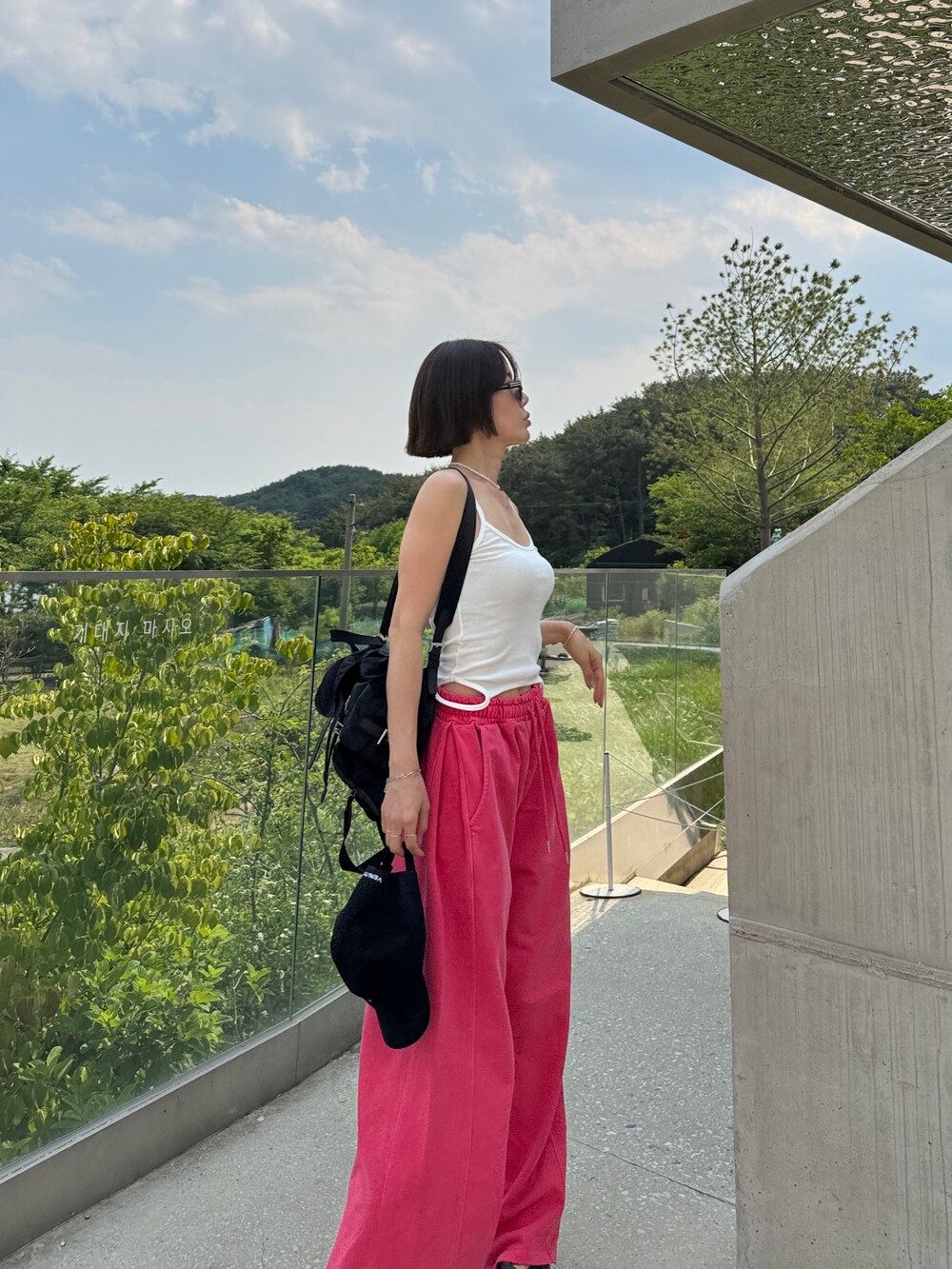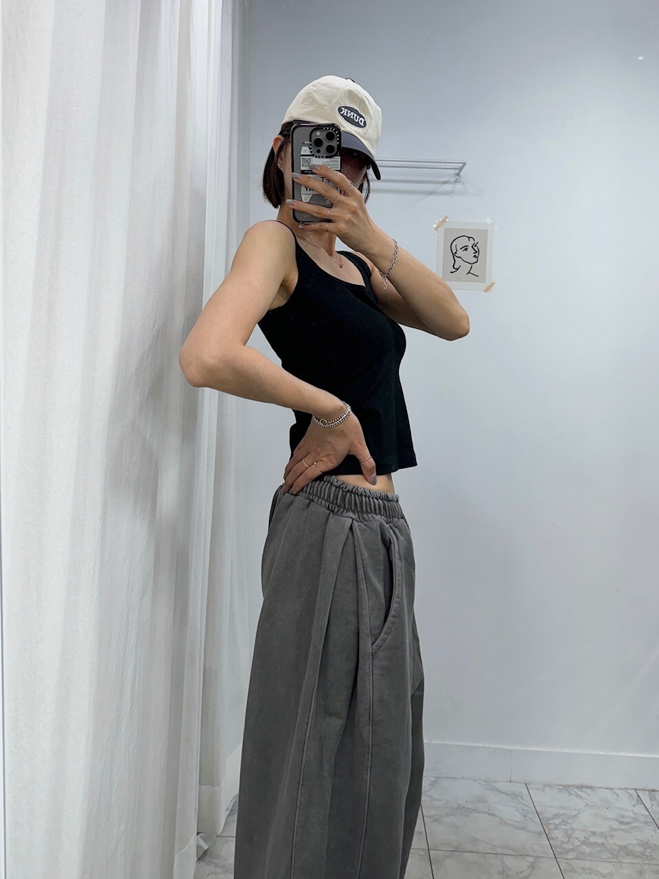 남녀공용 입기 좋은 피그먼트 와이드 밴딩 팬츠