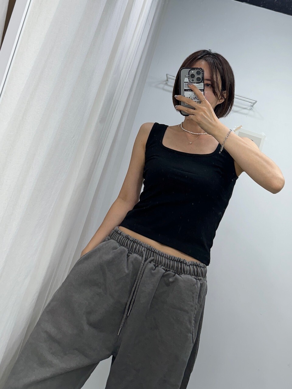 특징: 신축성 O, 비침 X, 안감 X , 두께감 보통, 무게감 보통
