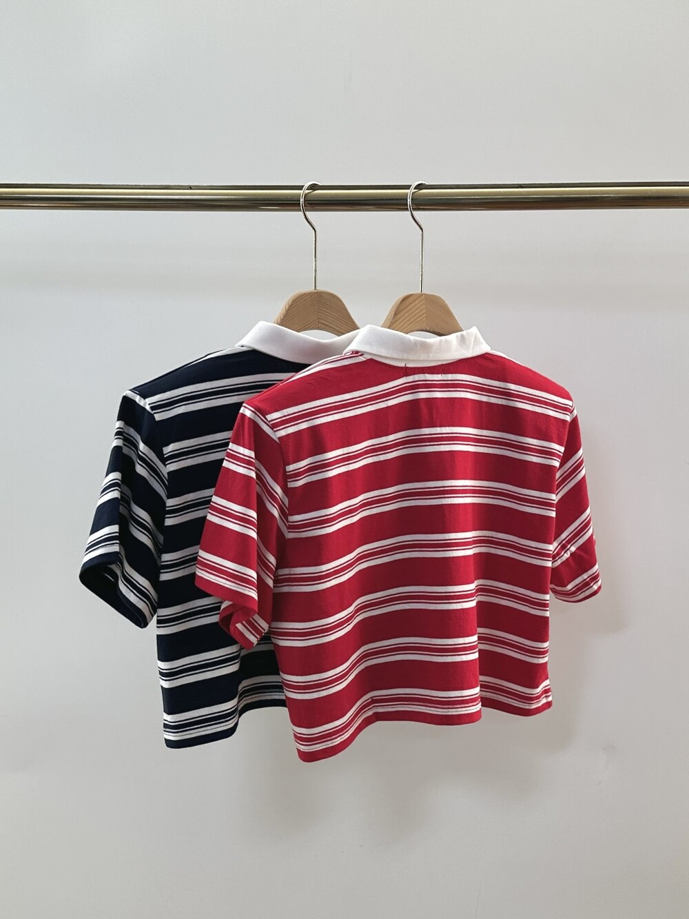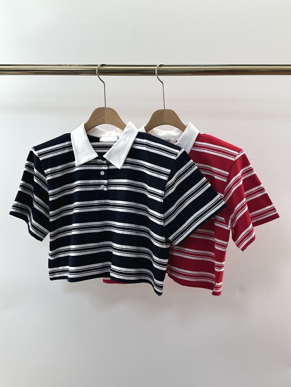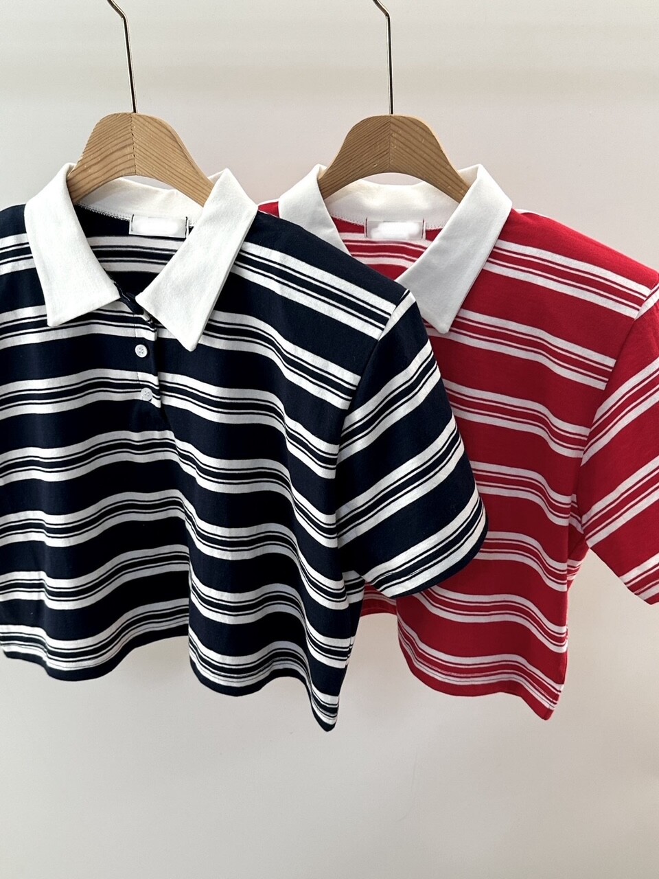 크롭기장의 단가라 카라 티셔츠예요