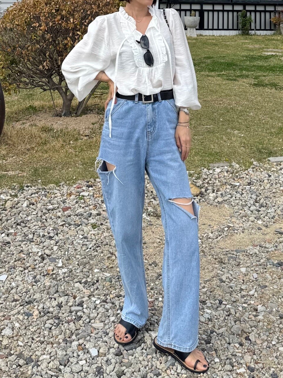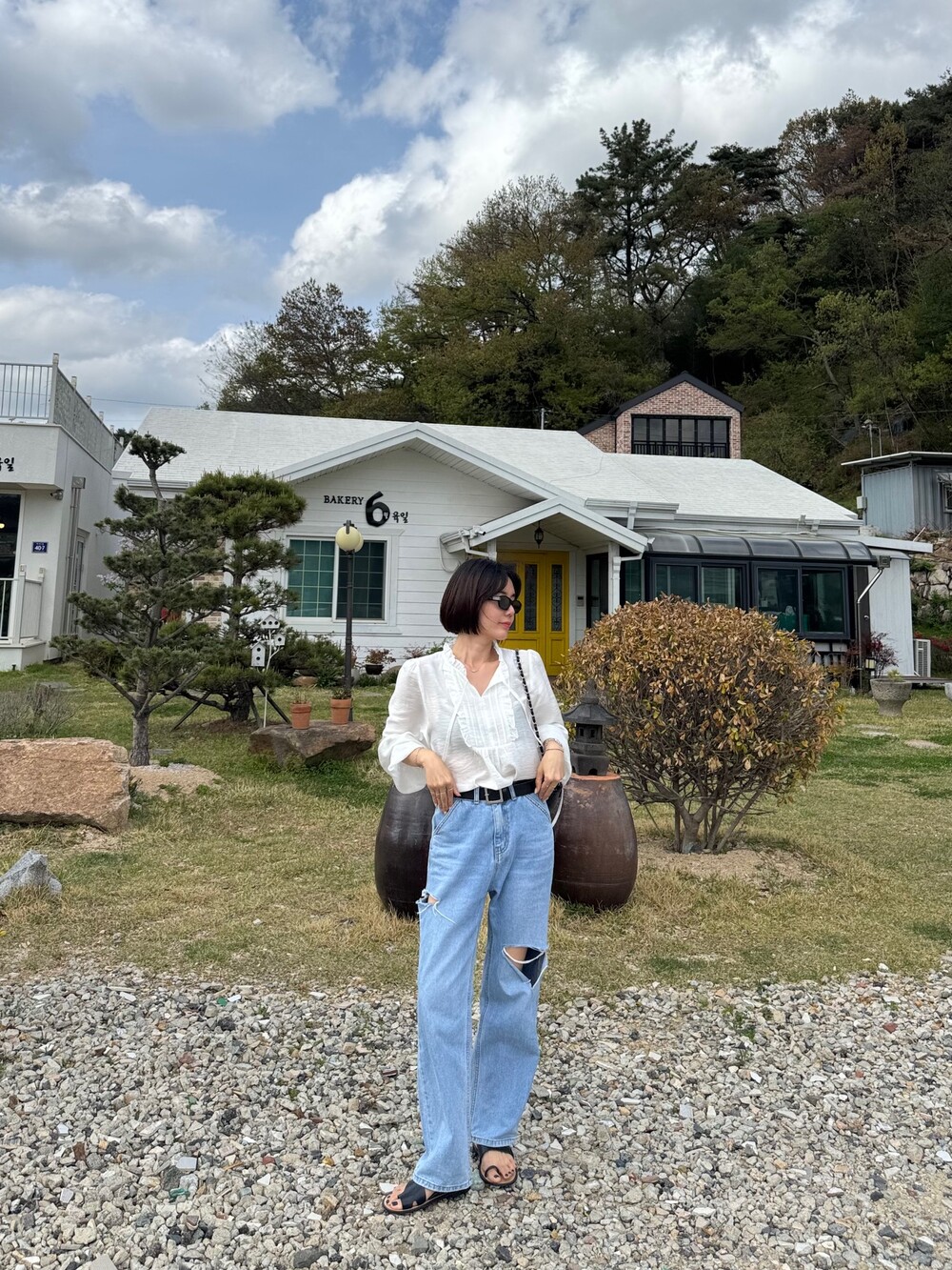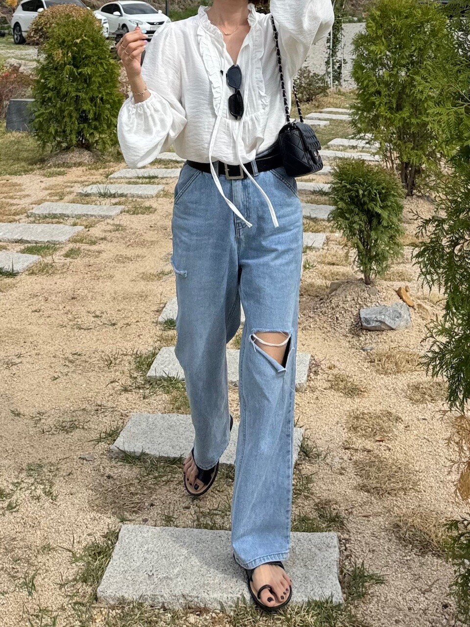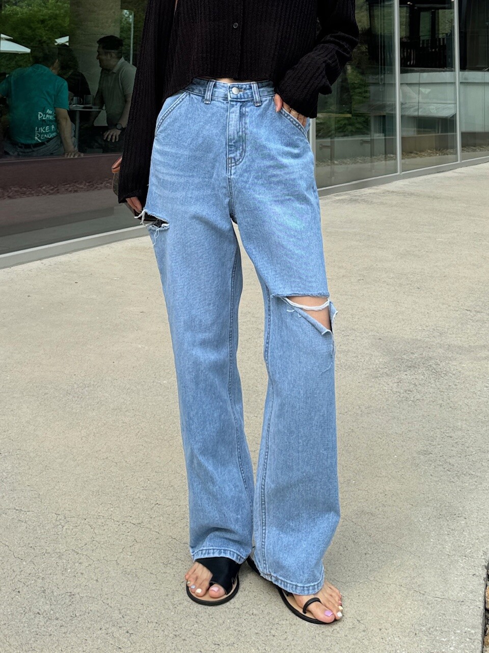 양쪽 트임이 매력적인 와이드 청팬츠예요