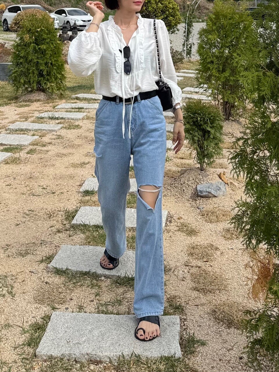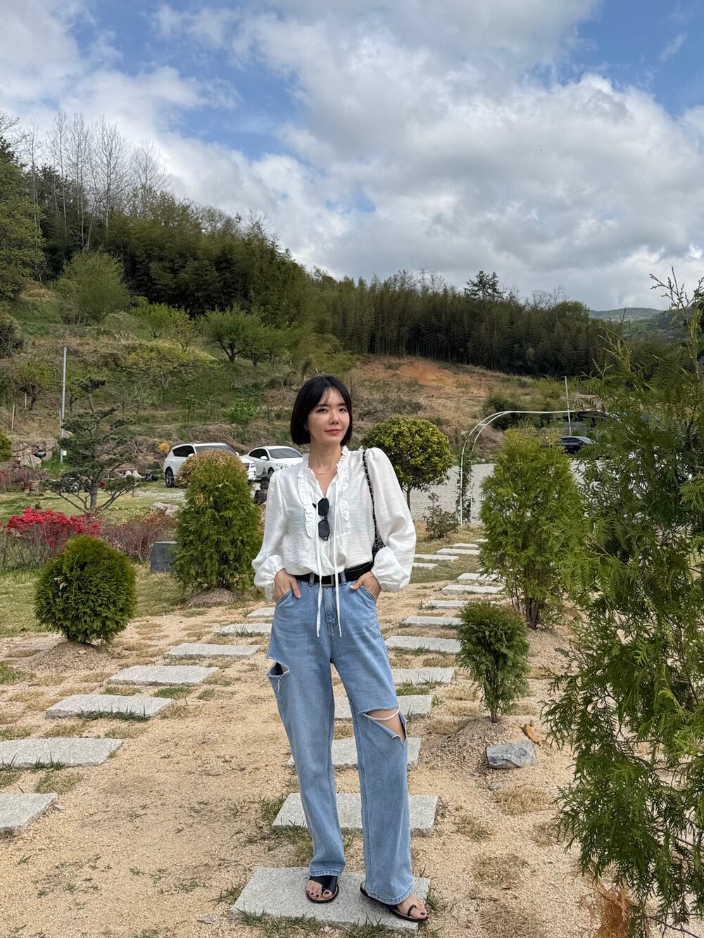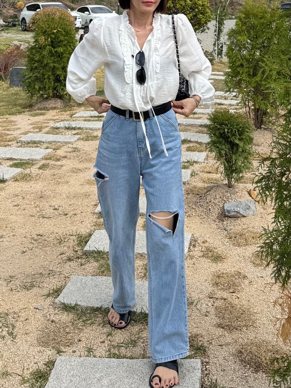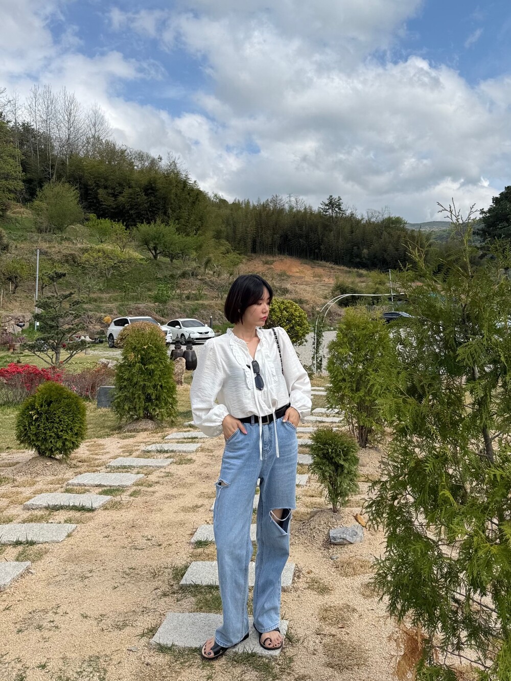 양쪽 트임이 매력적인 와이드 청팬츠예요