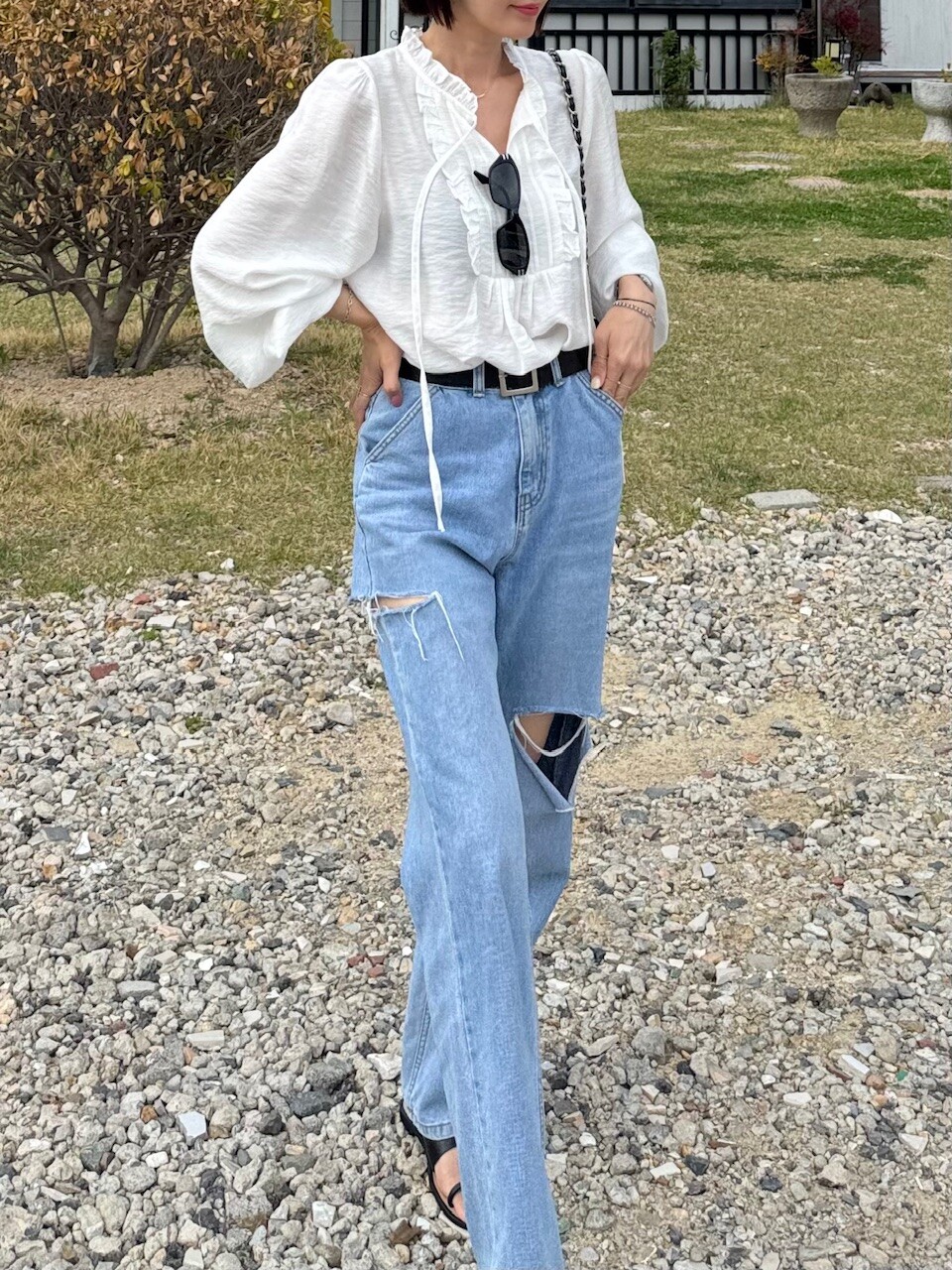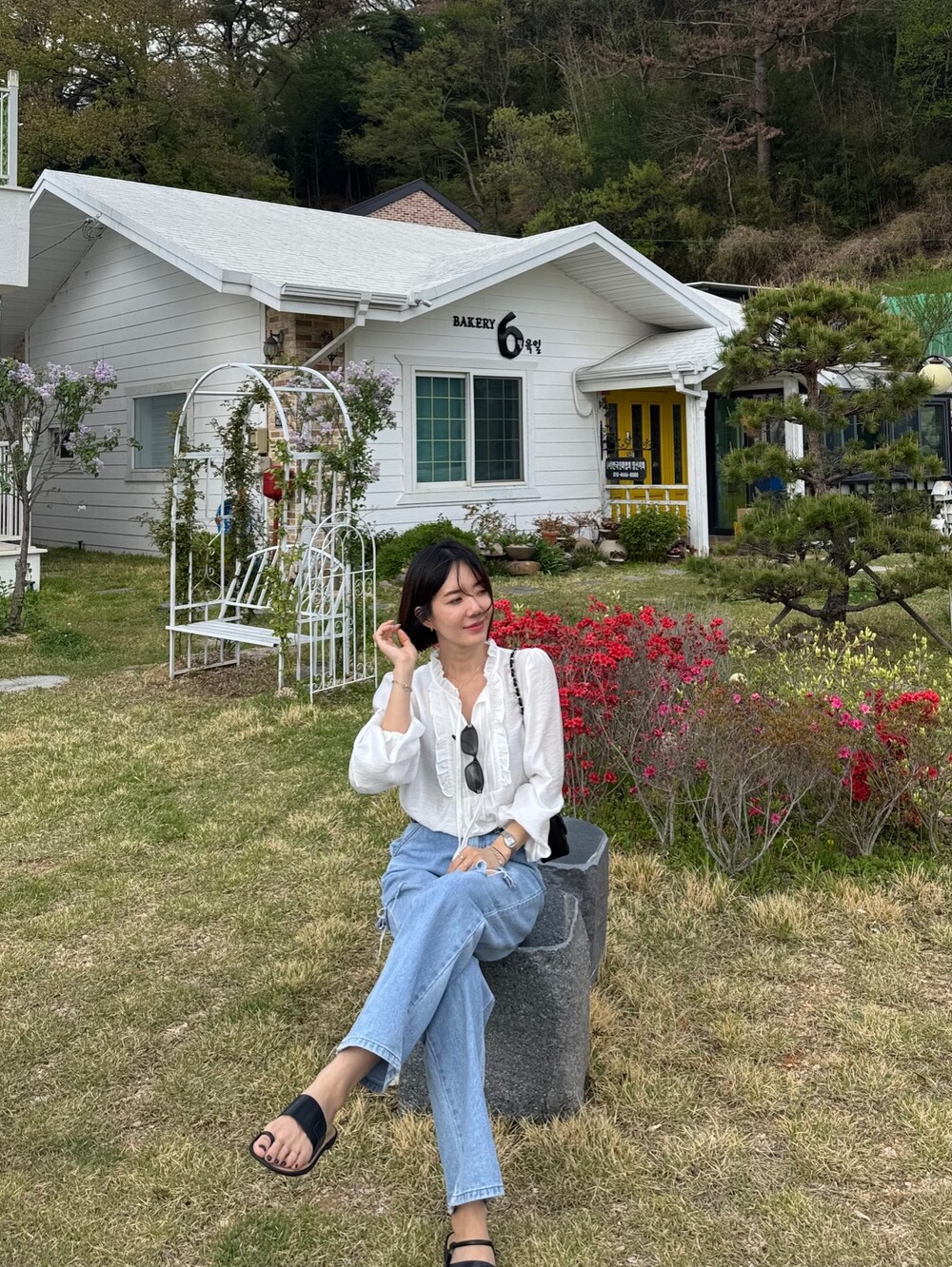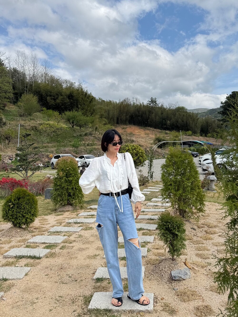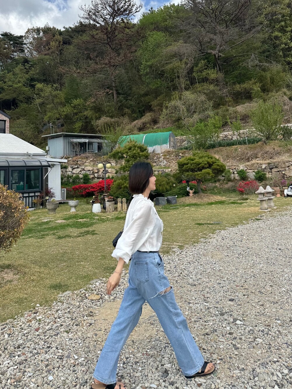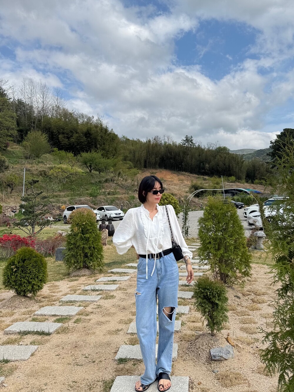 양쪽 트임이 매력적인 와이드 청팬츠예요