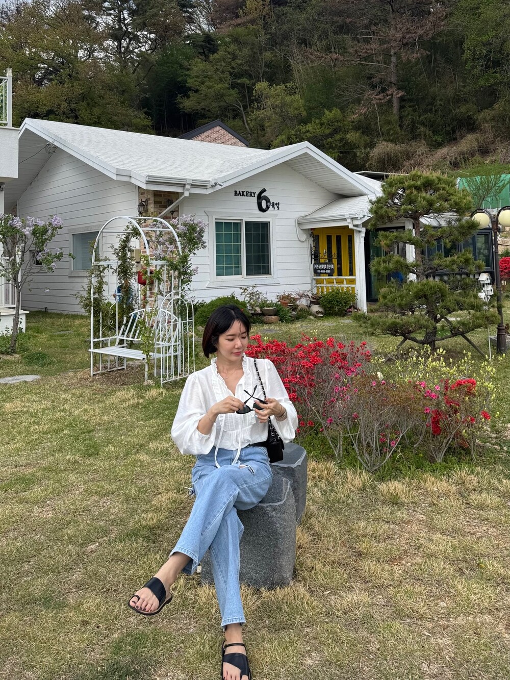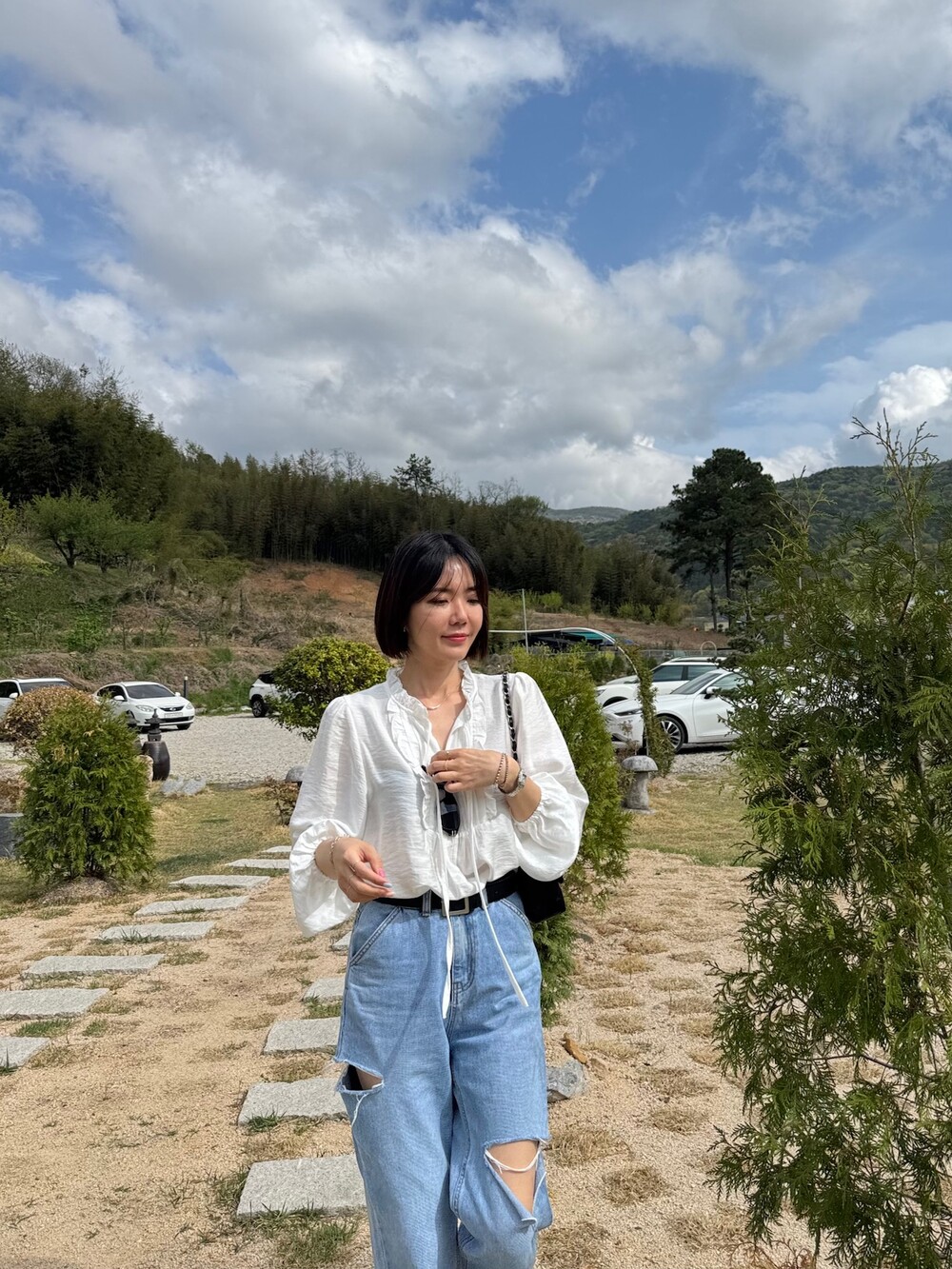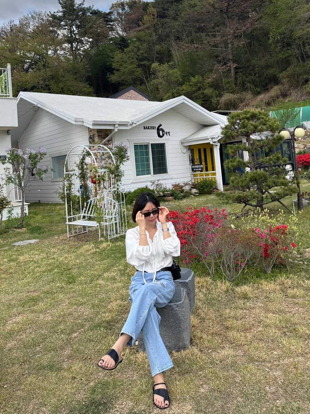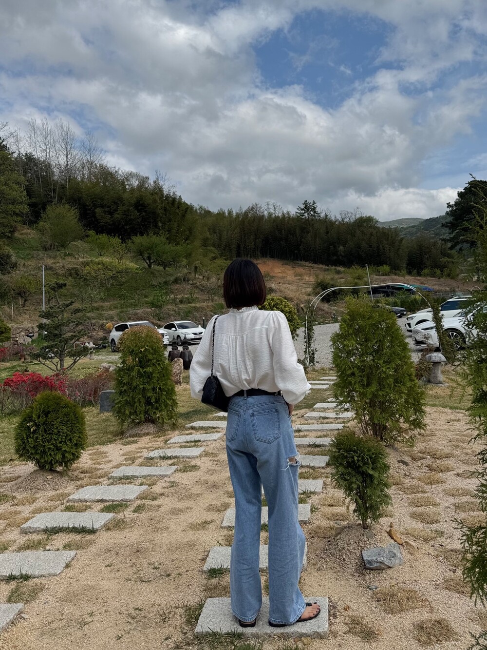 양쪽 트임이 매력적인 와이드 청팬츠예요