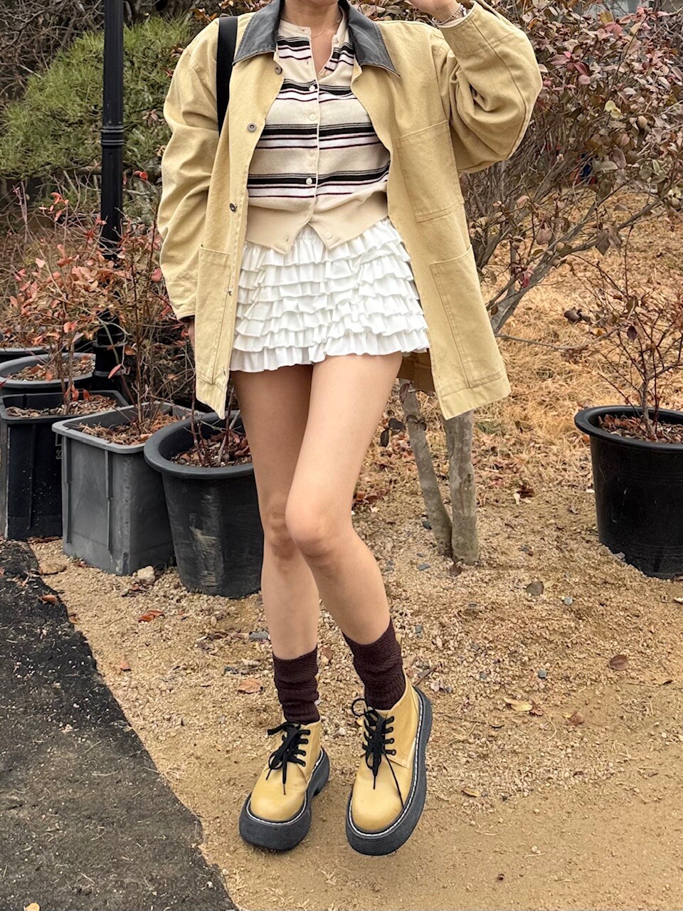 특징: 신축성 O, 비침 X, 안감 O , 두께감 보통, 무게감 가벼움