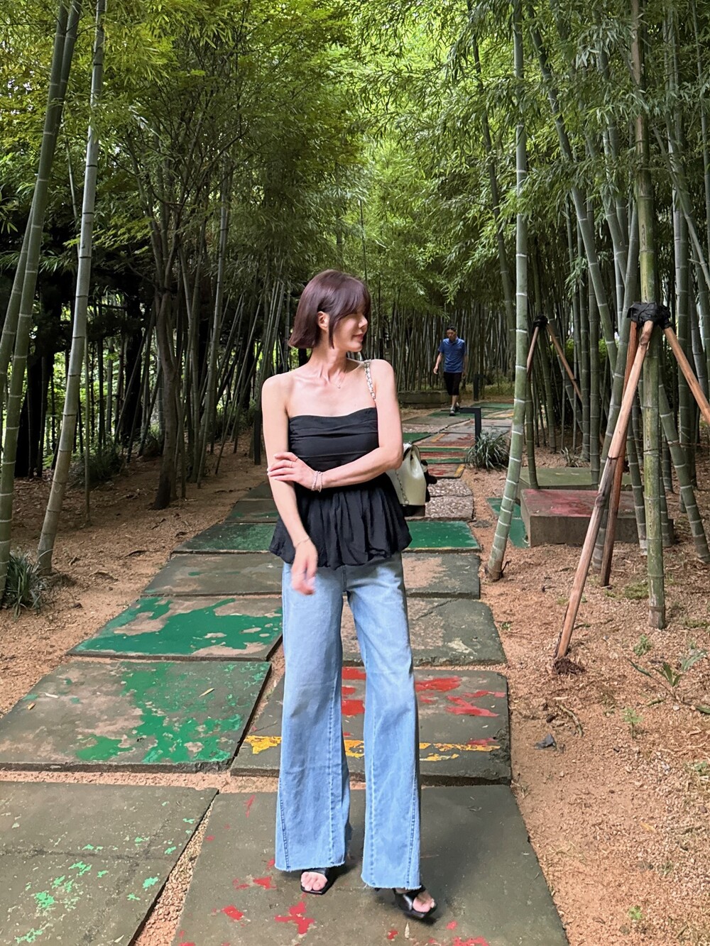 S 허리 31 힙 46 밑위 30 허벅지 28 밑단 31 총장 104