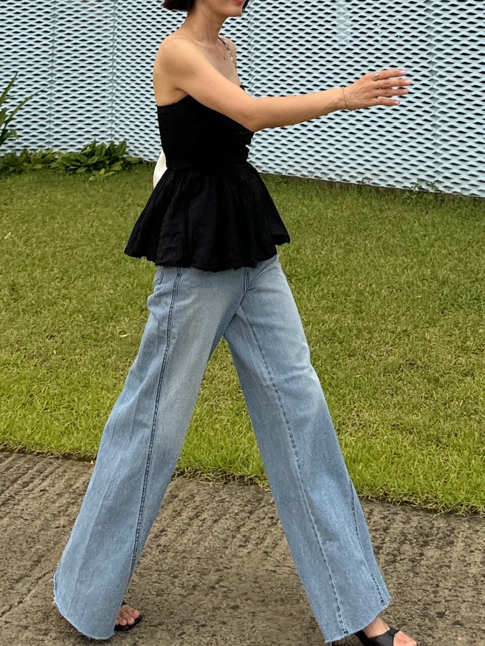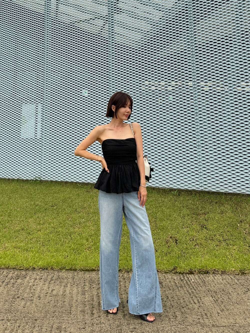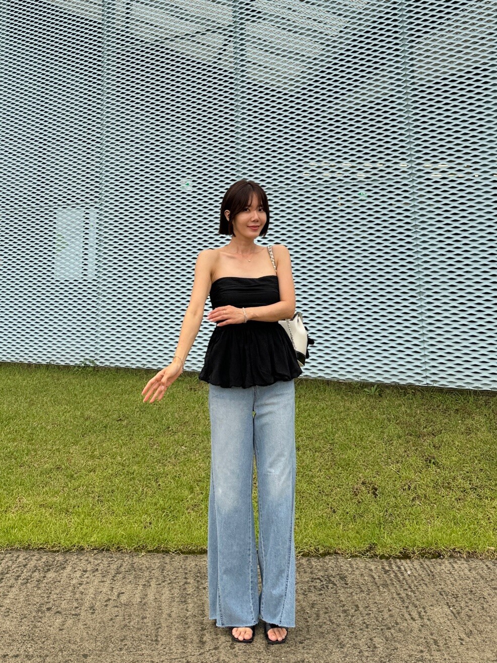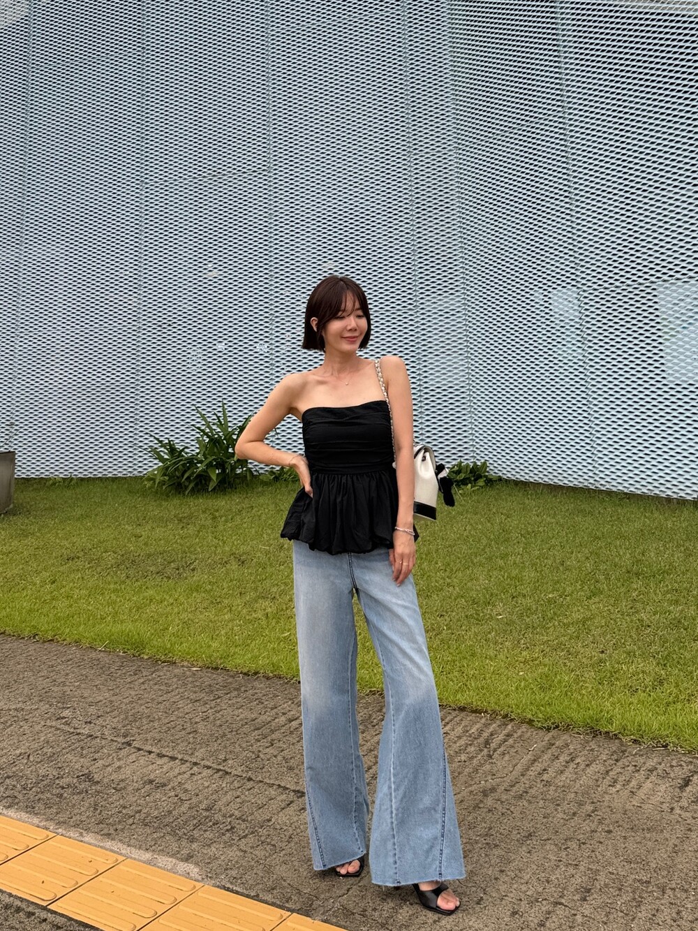 L 허리 36 힙 51 밑위 30.5 허벅지 31 밑단 34 총장 106