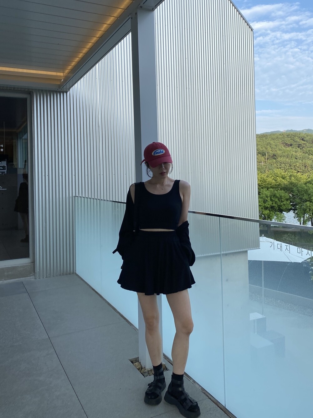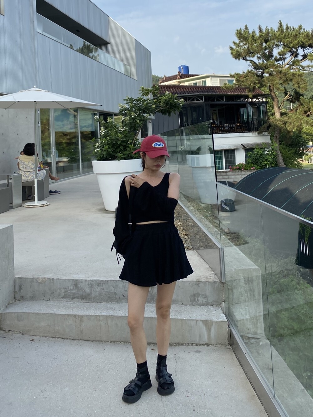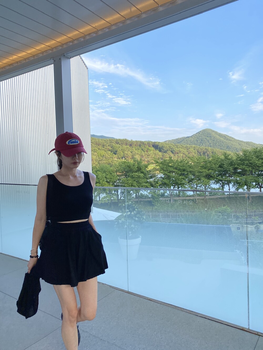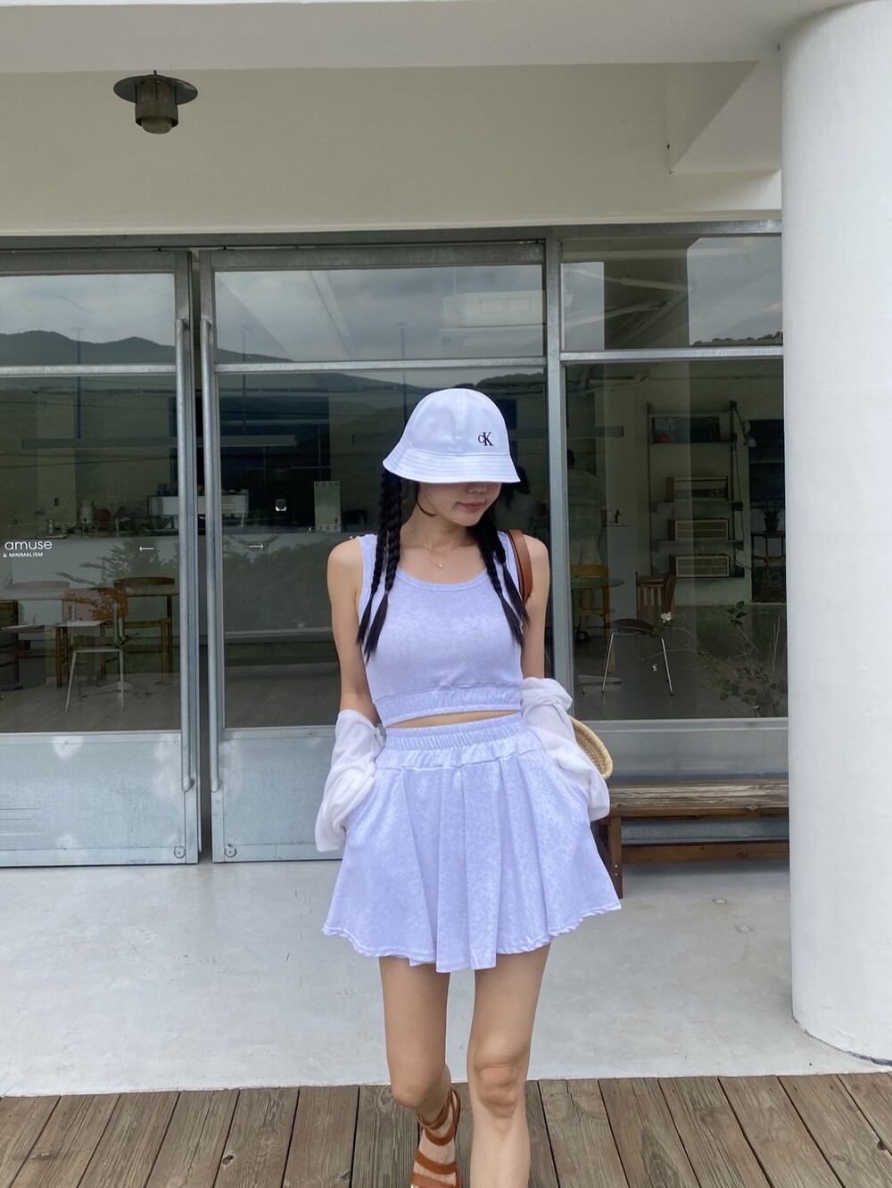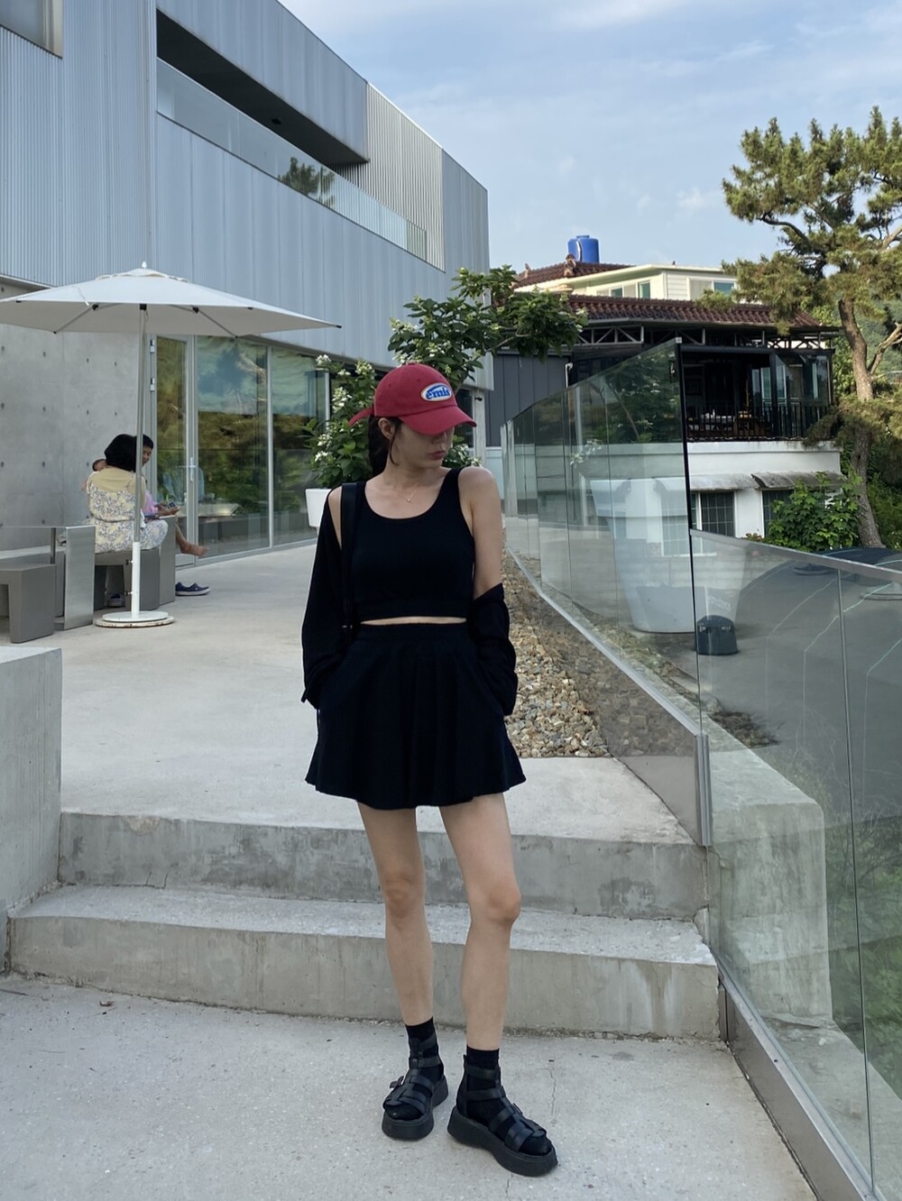 크롭기장의 나시지만 스커트가 하이로 올라오며