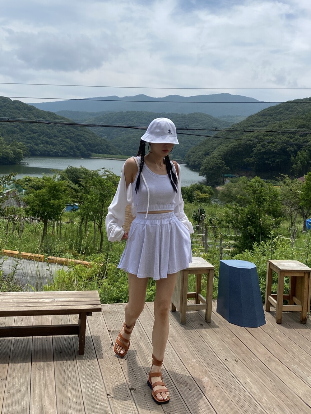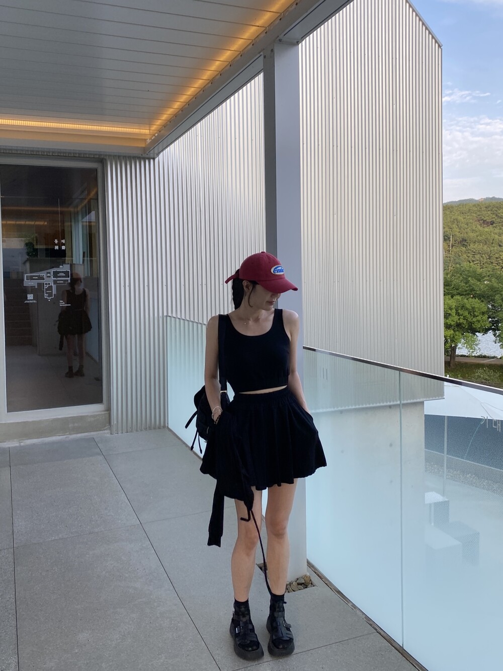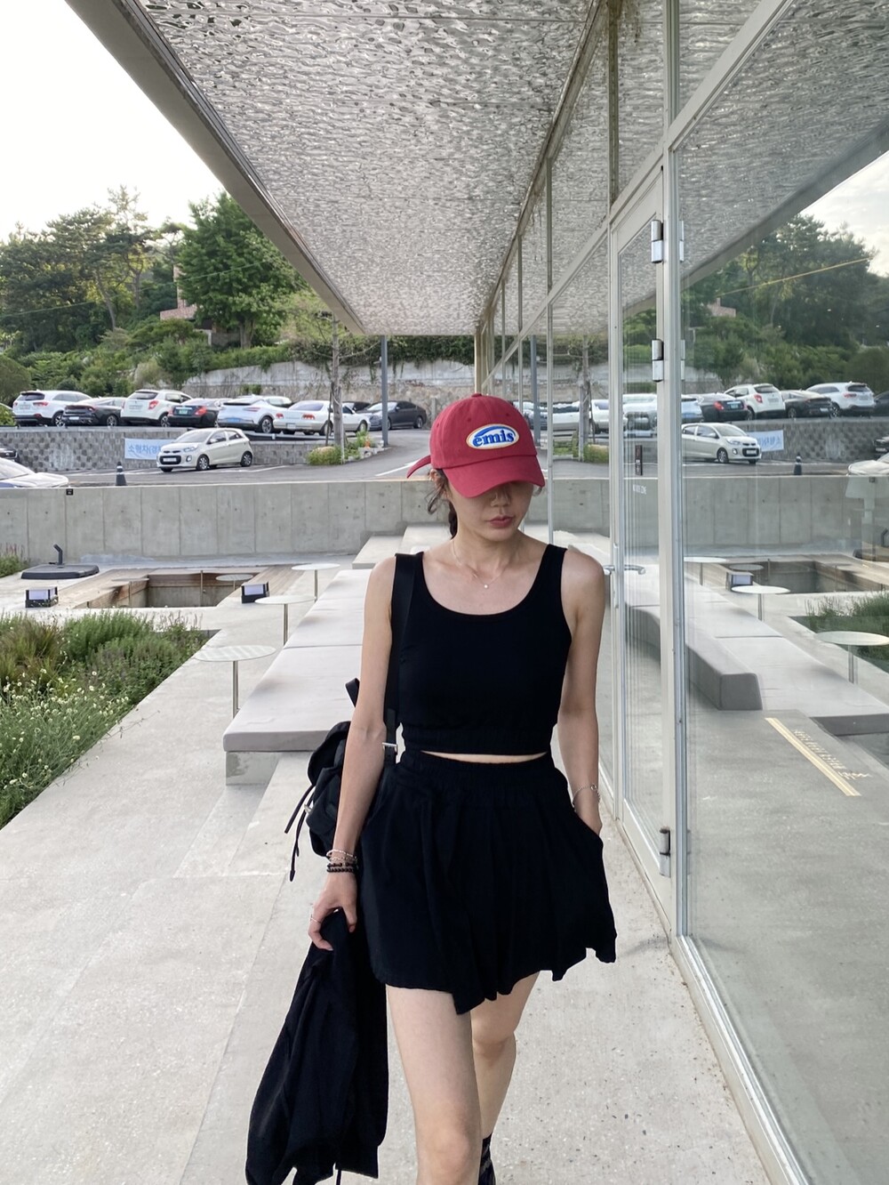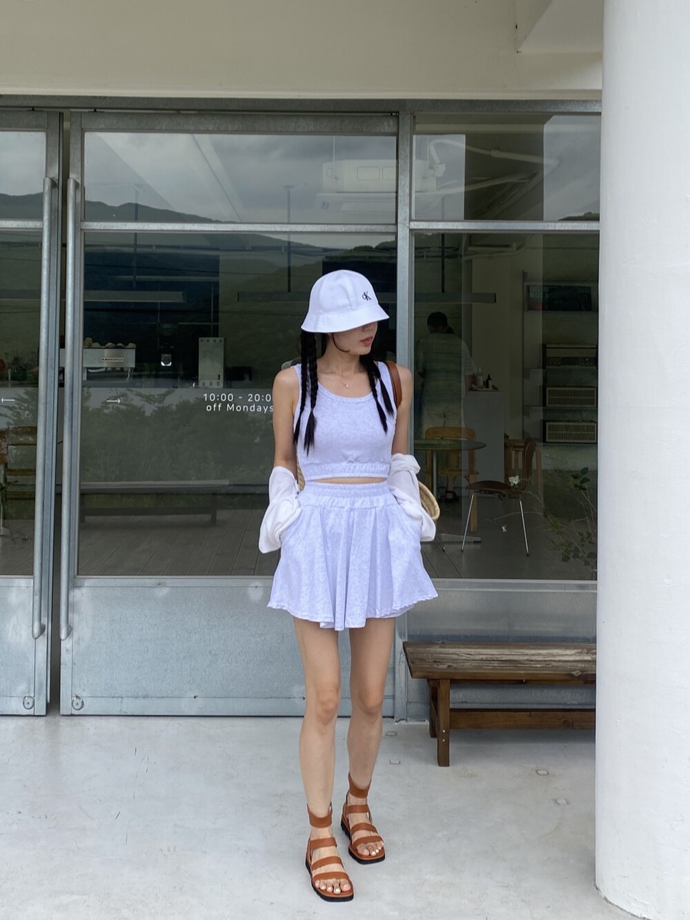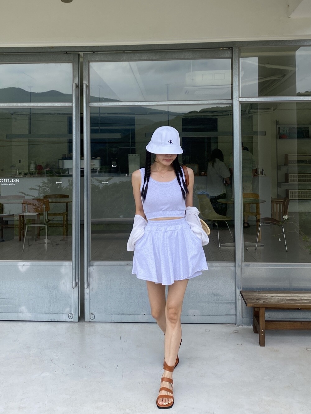 크롭기장의 나시지만 스커트가 하이로 올라오며