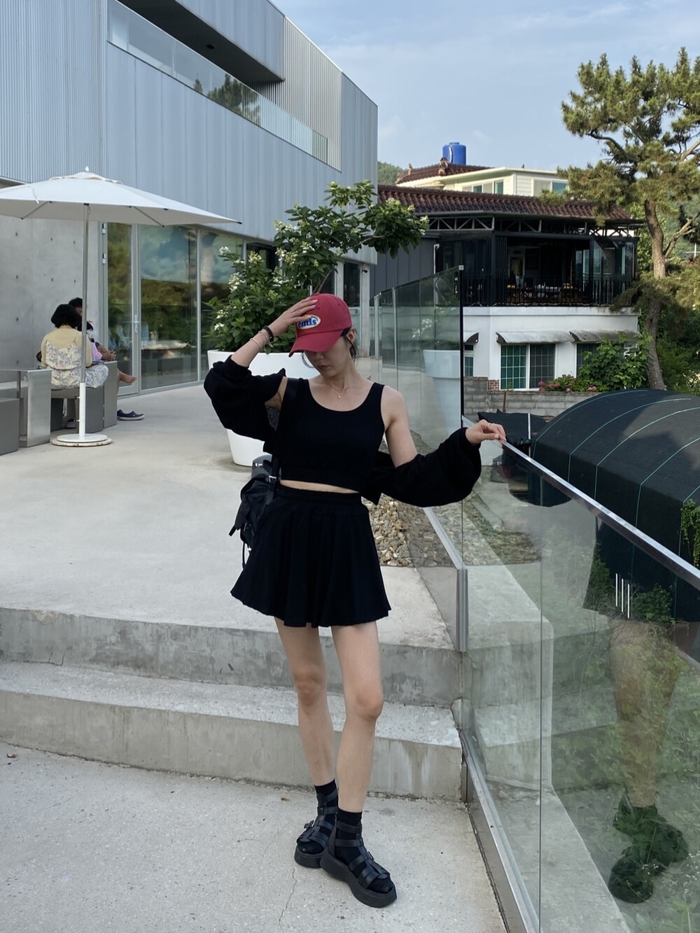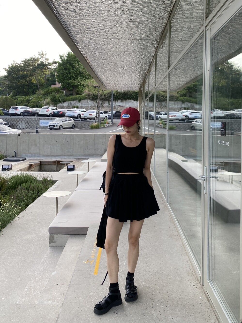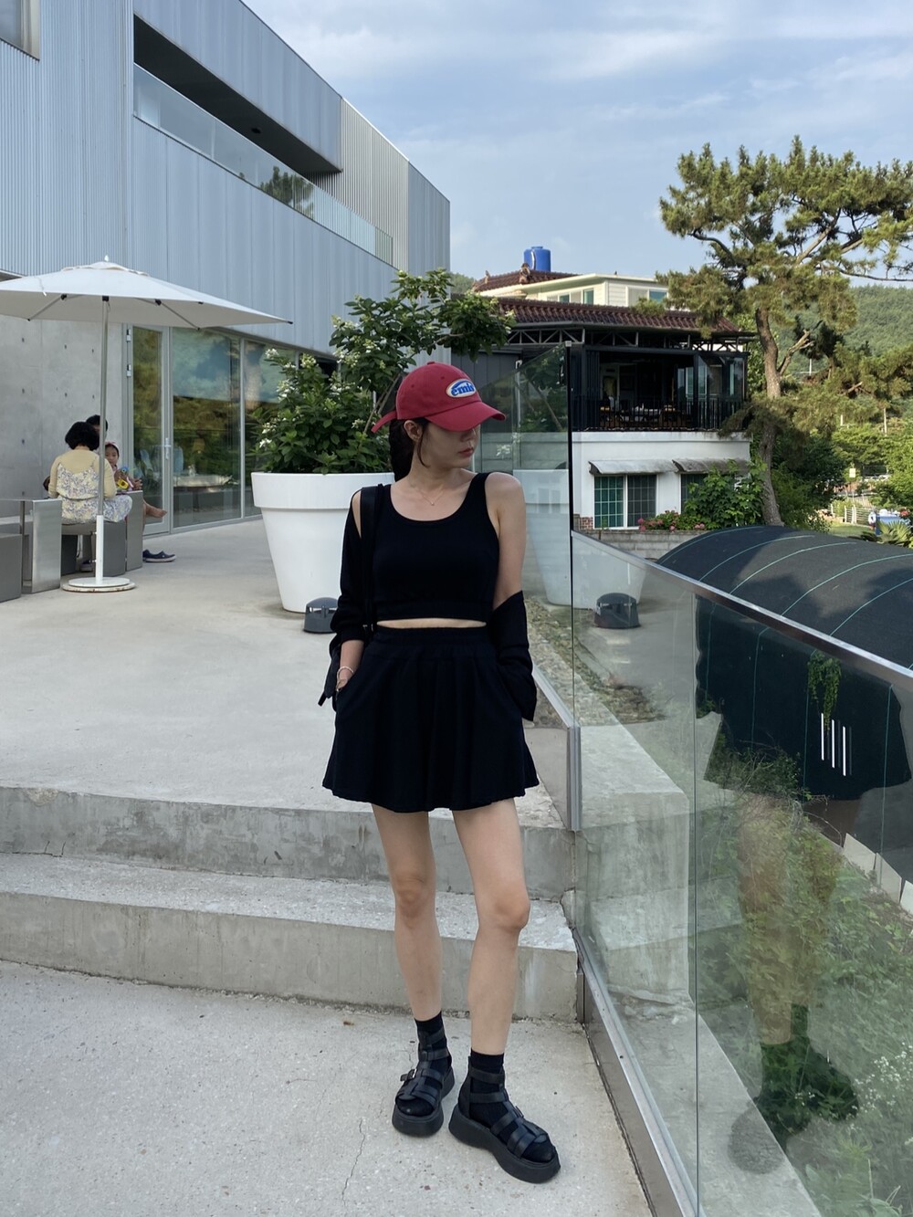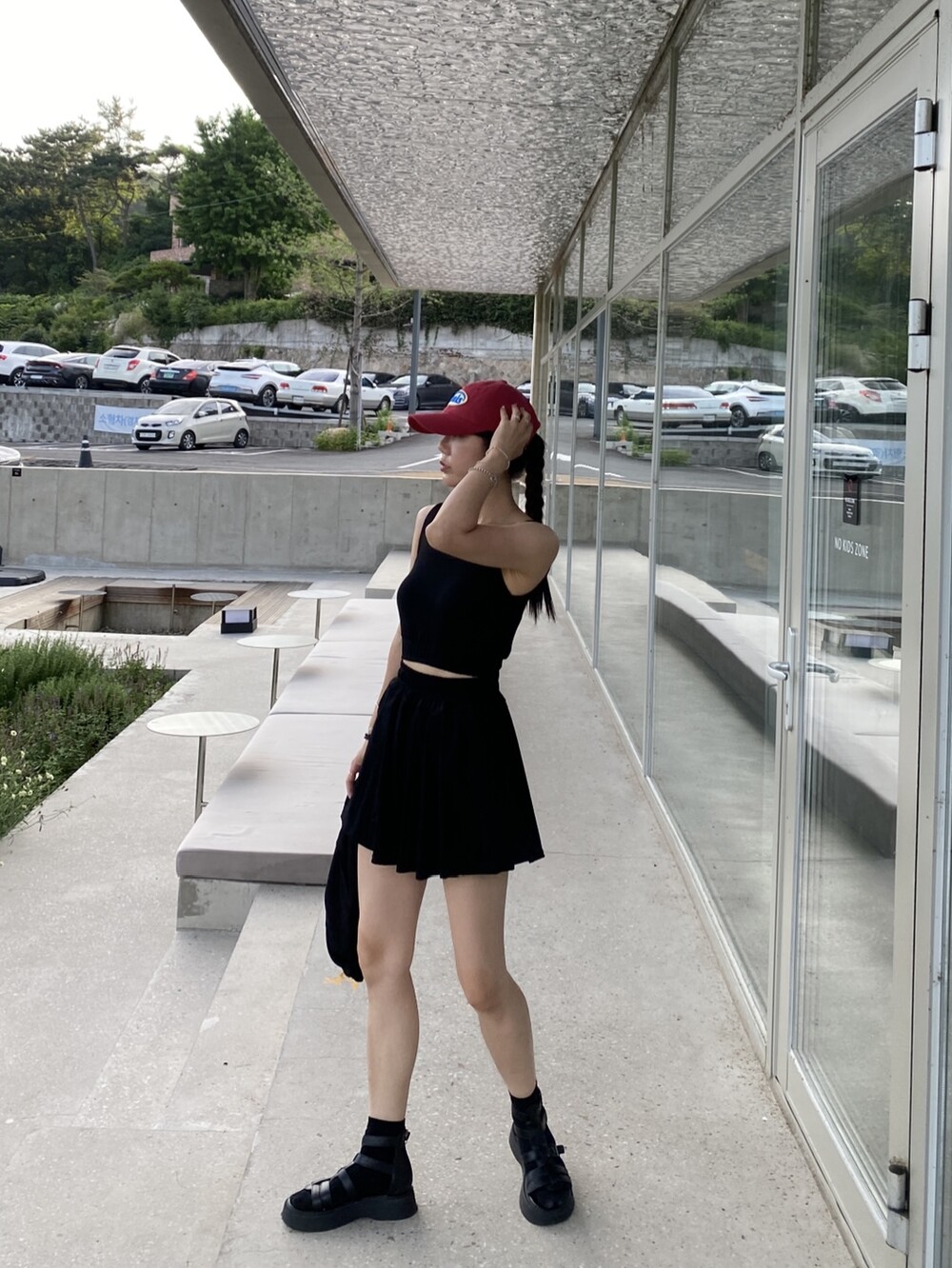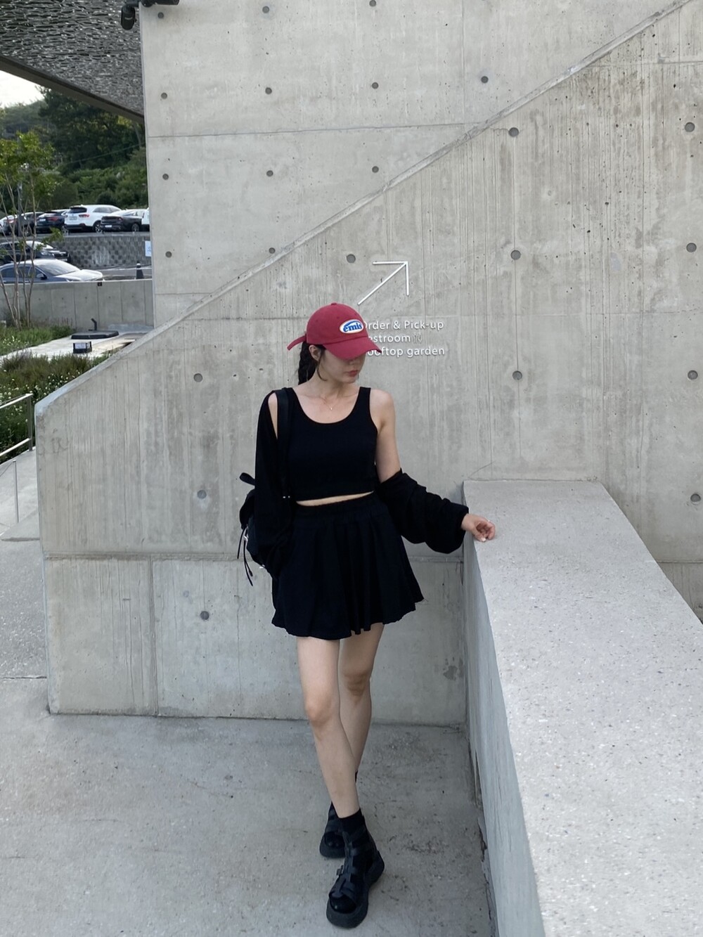 크롭기장의 나시지만 스커트가 하이로 올라오며