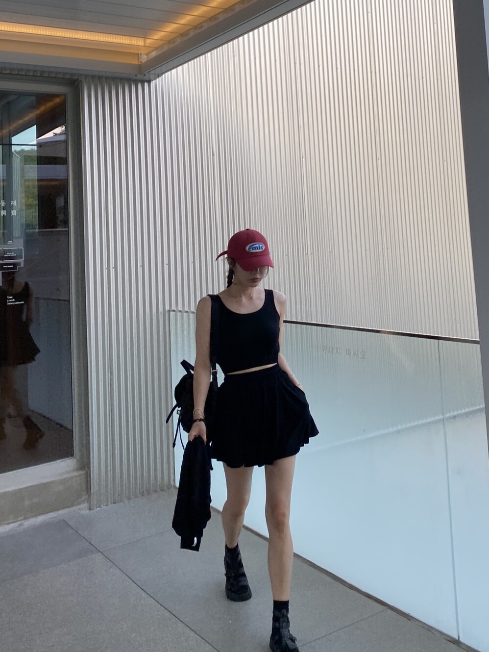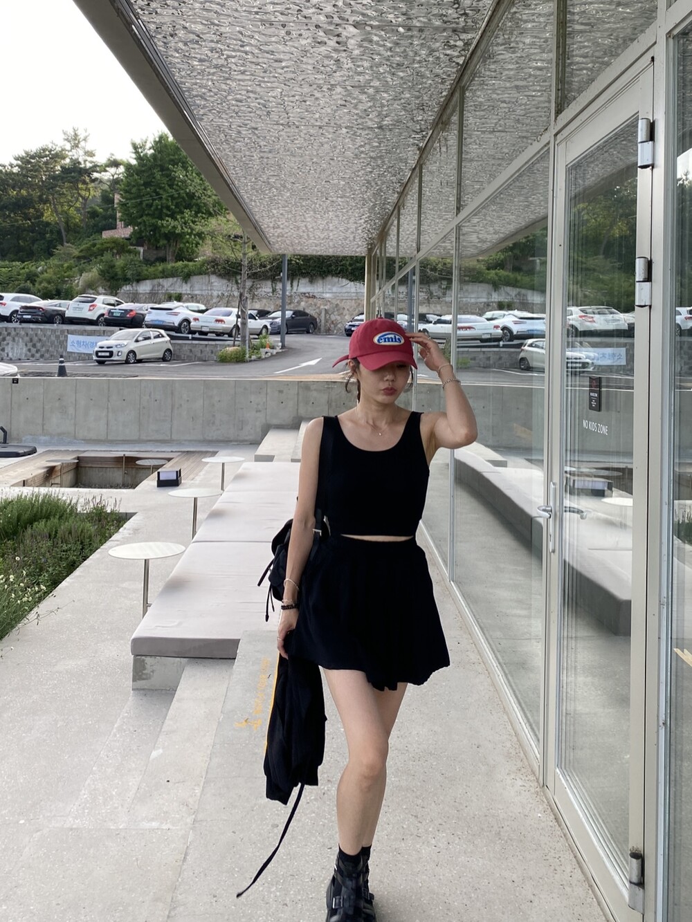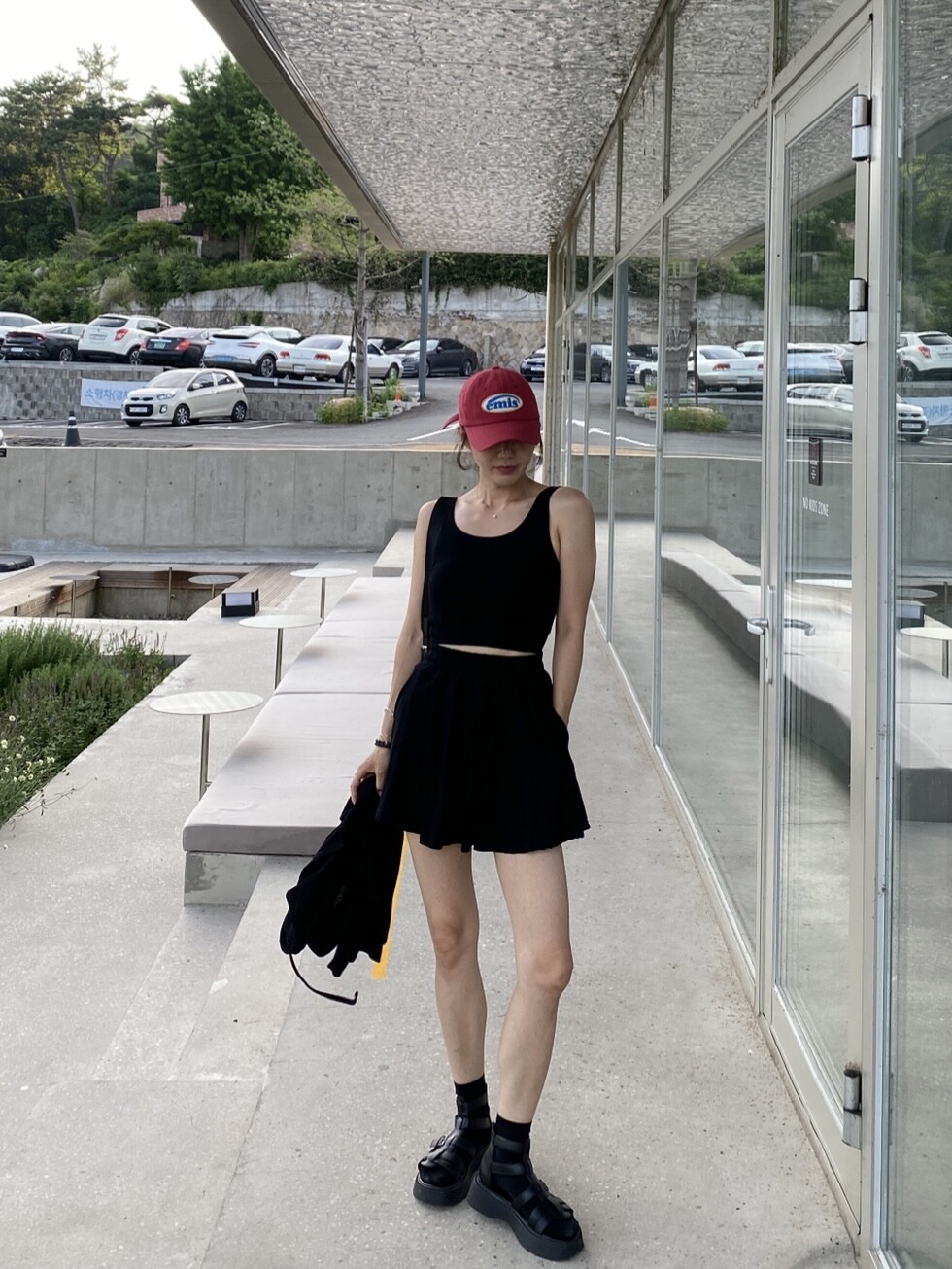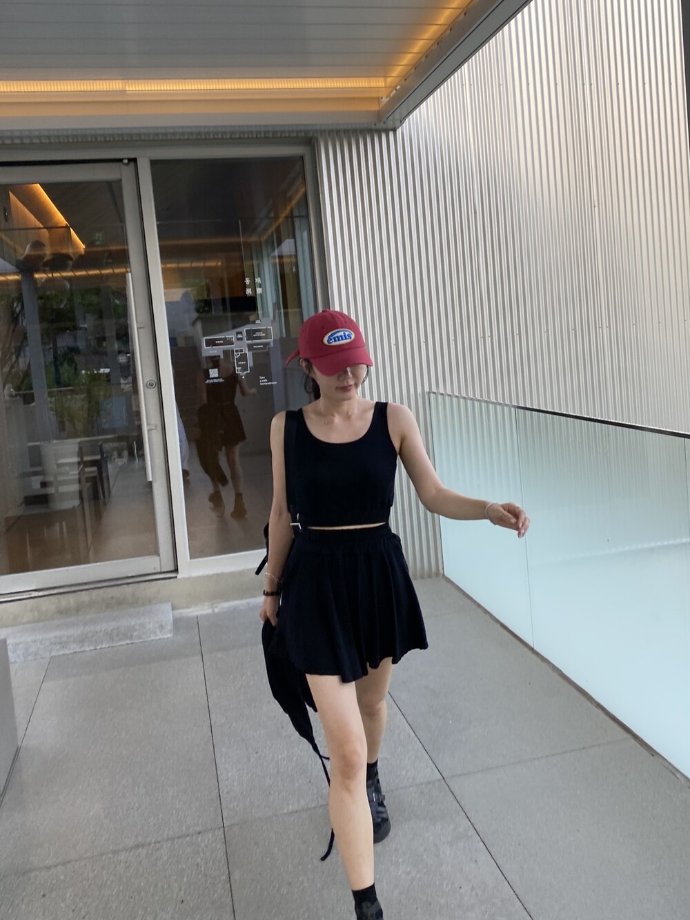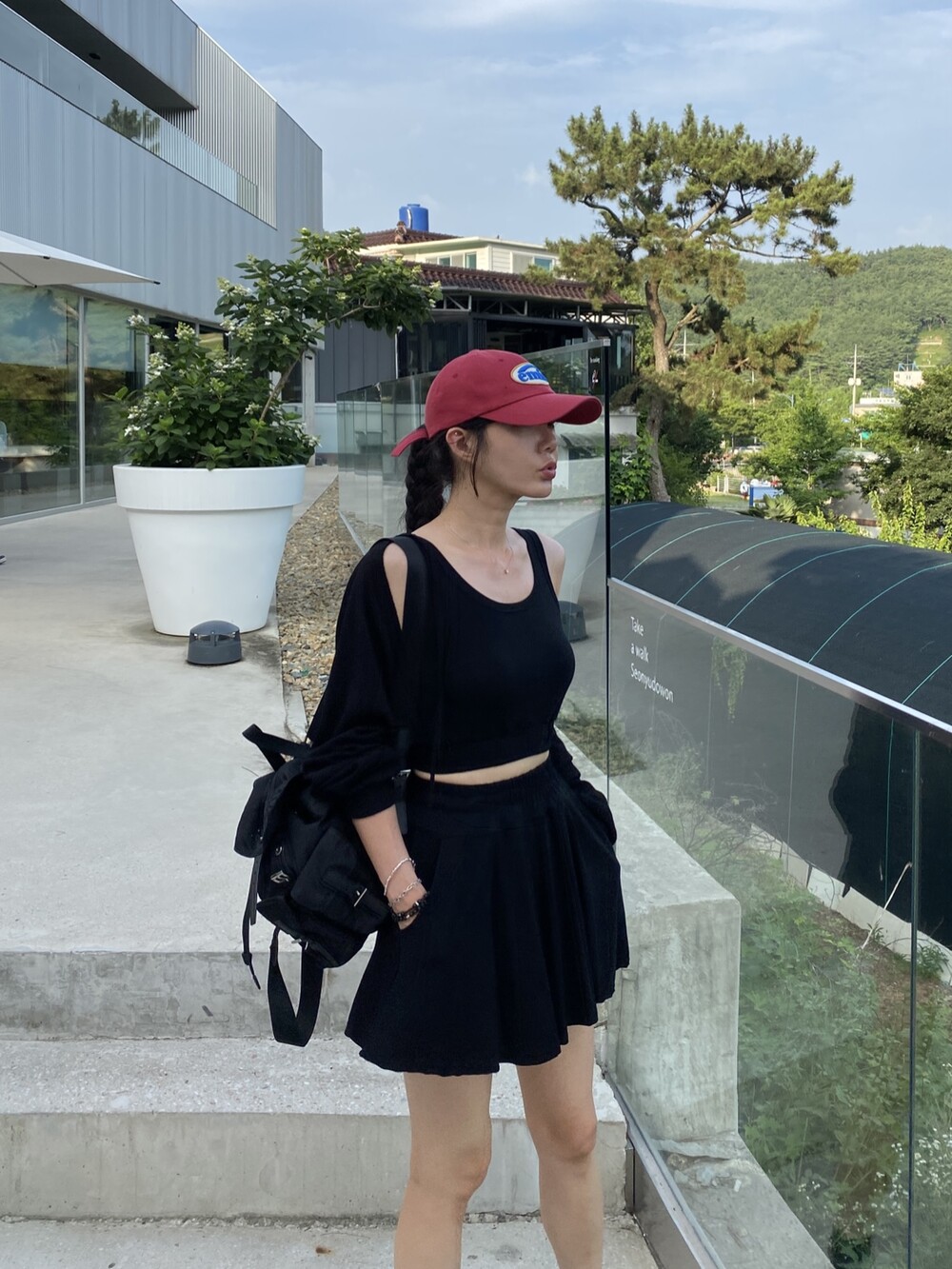 크롭기장의 나시지만 스커트가 하이로 올라오며