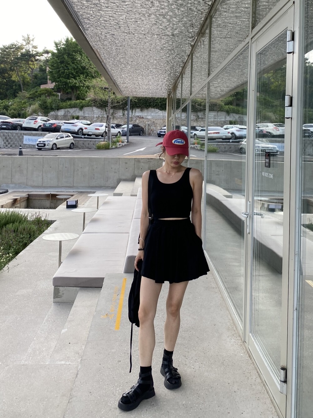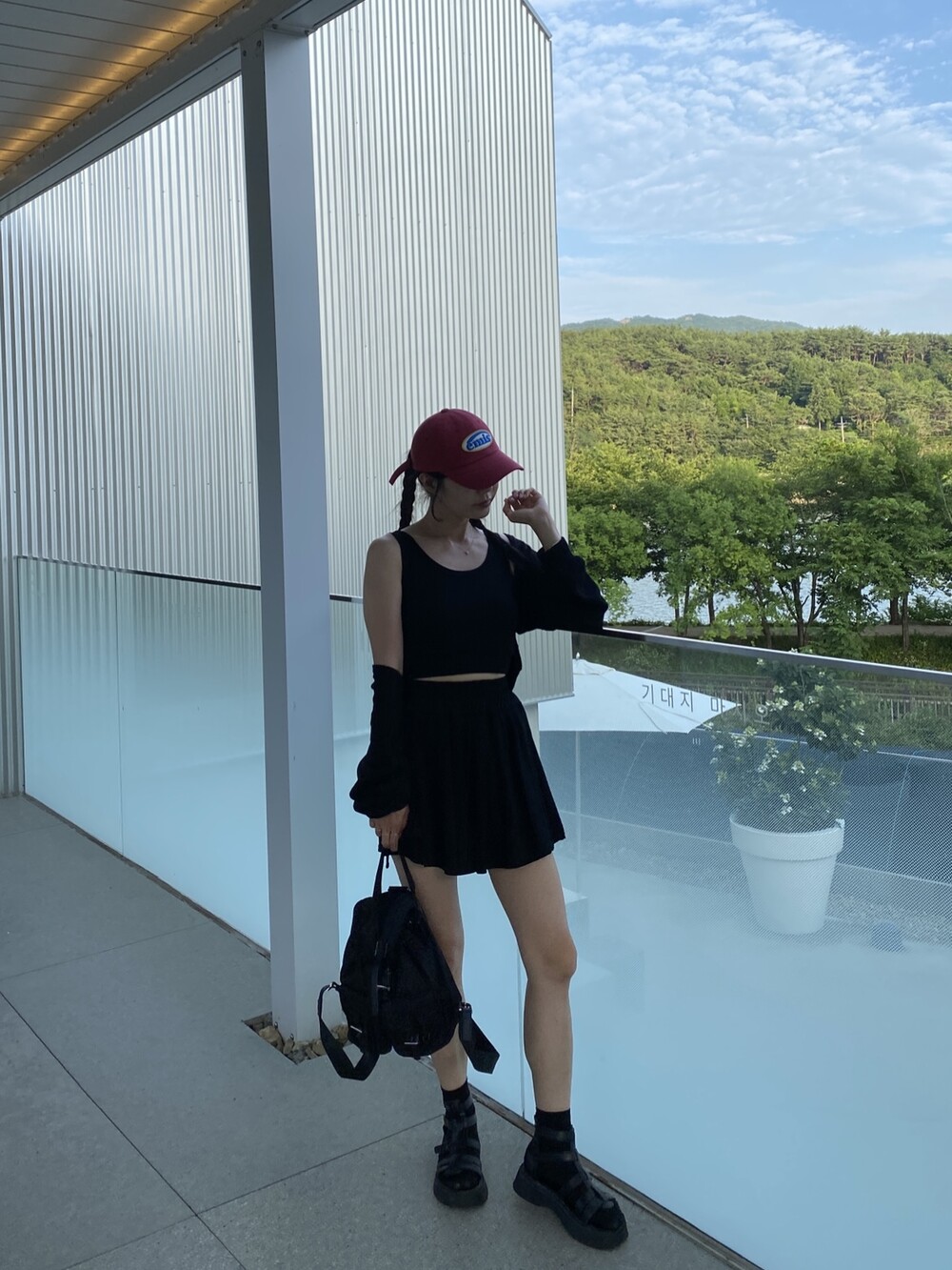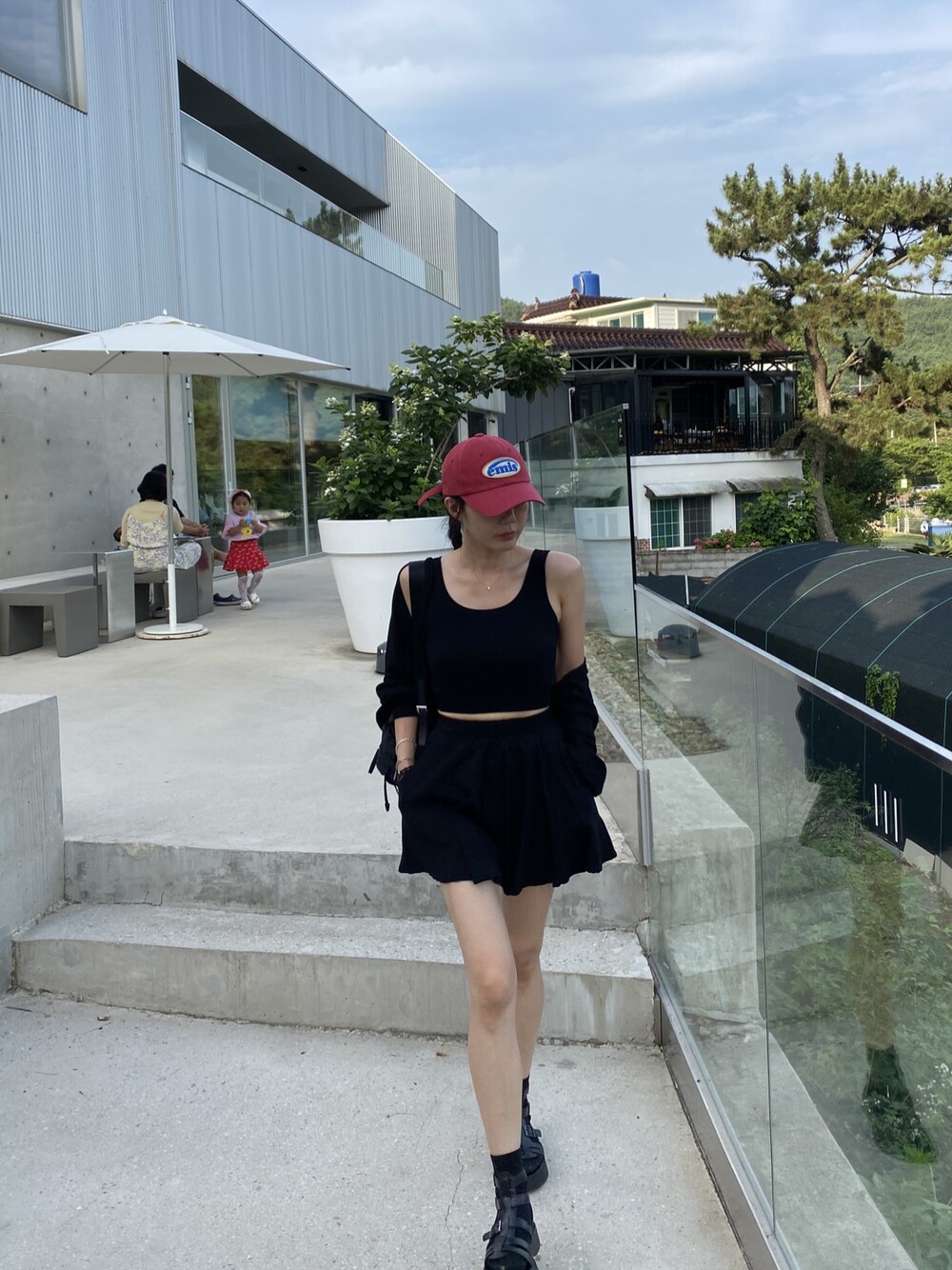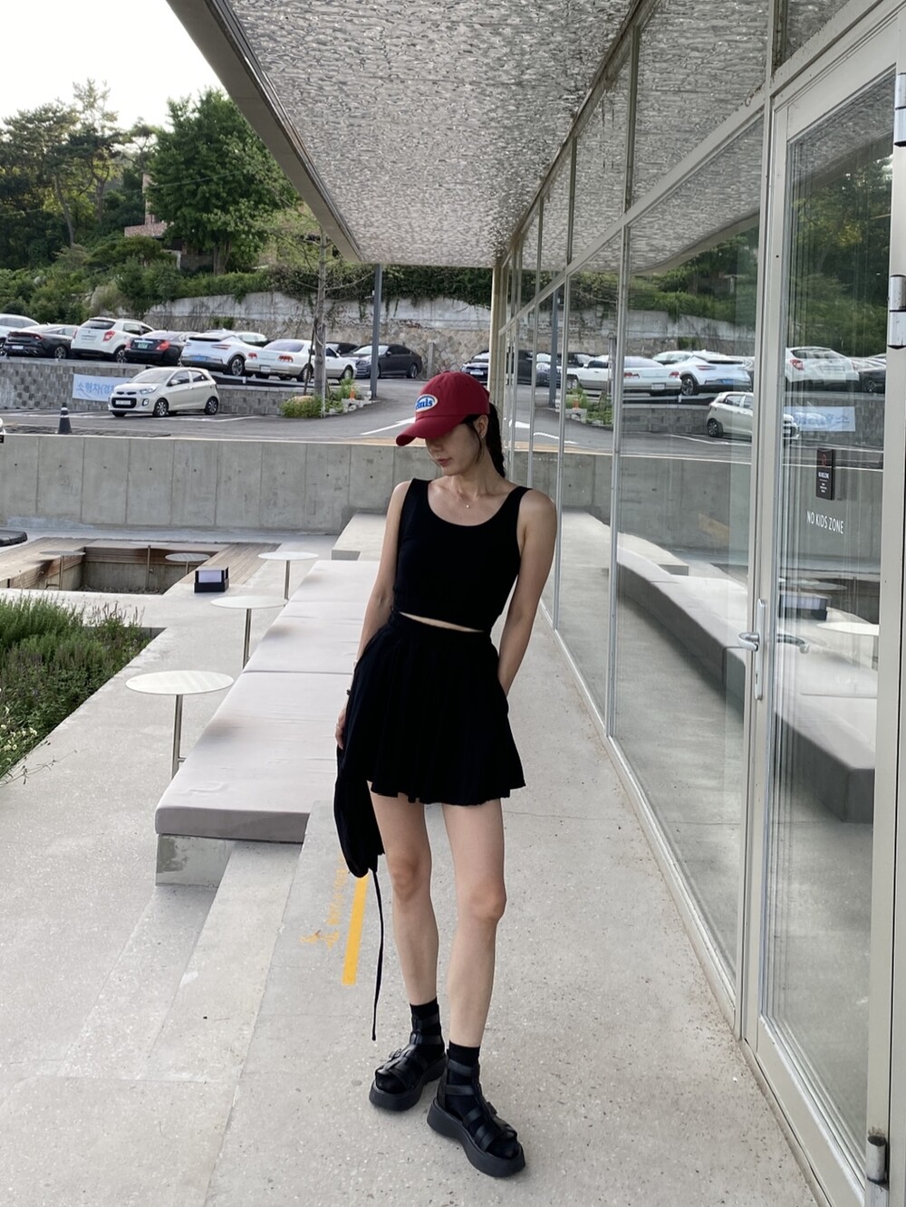 크롭기장의 나시지만 스커트가 하이로 올라오며