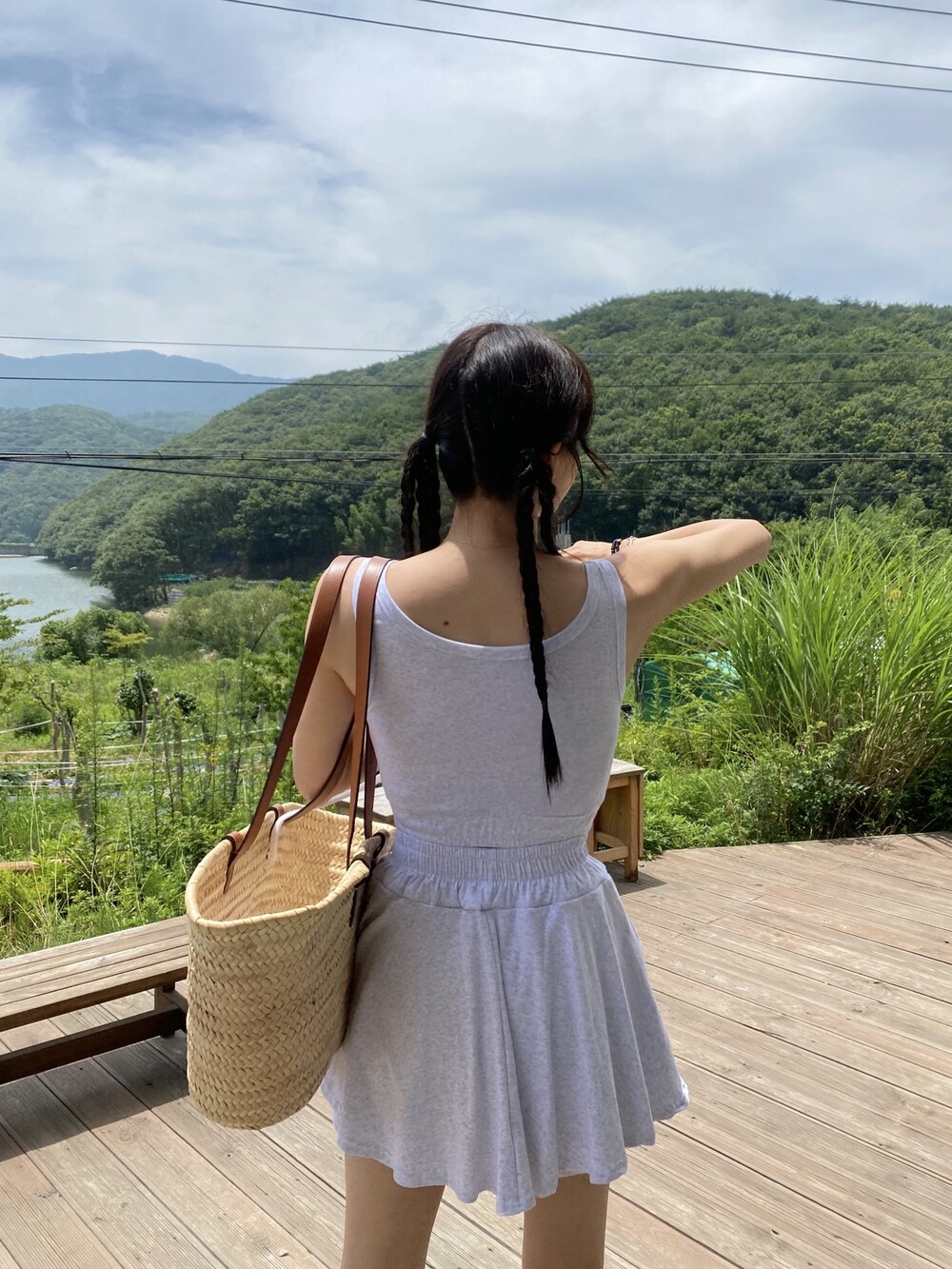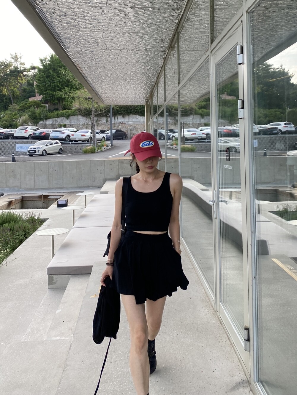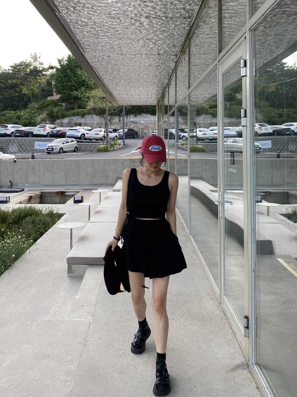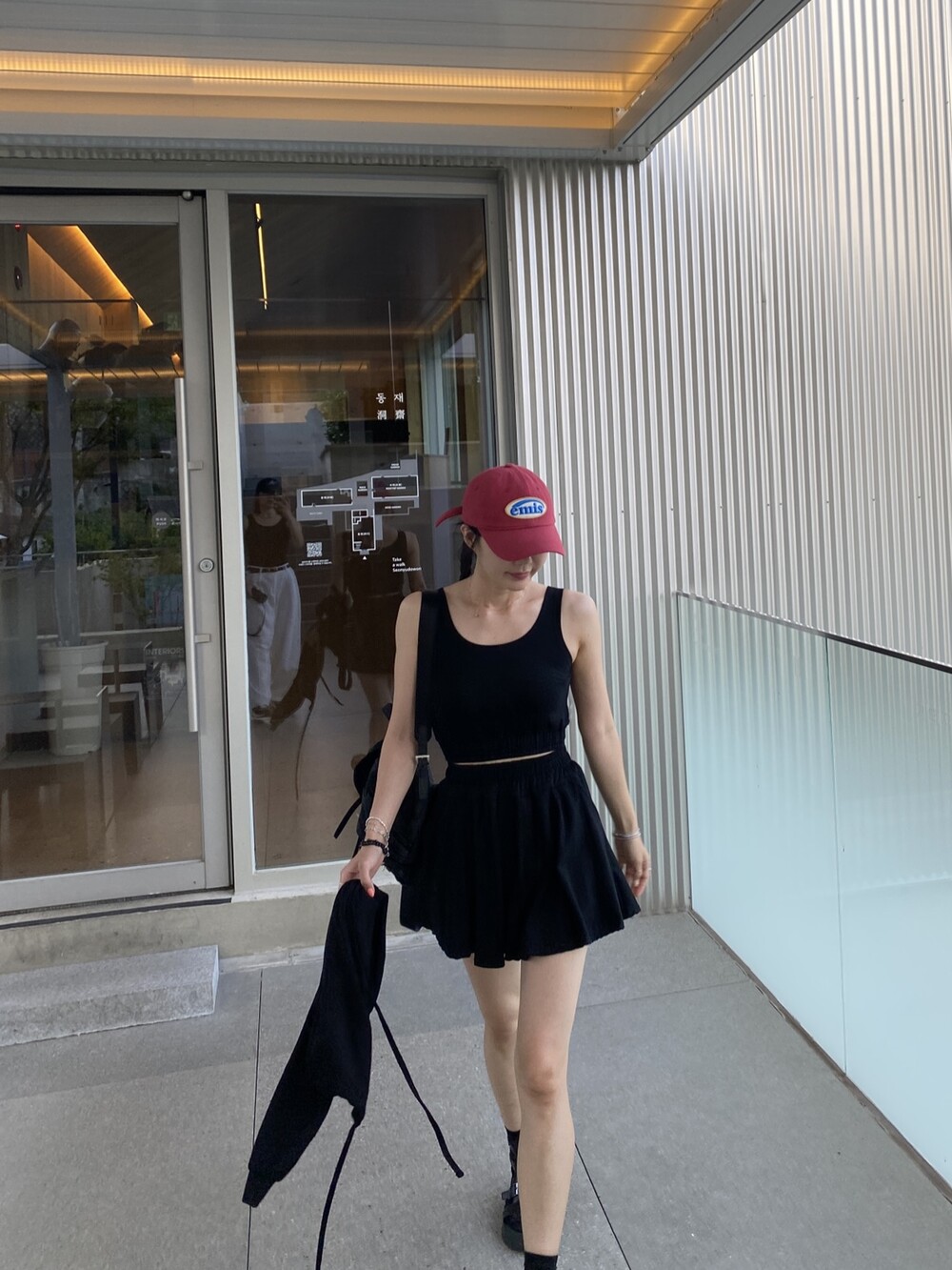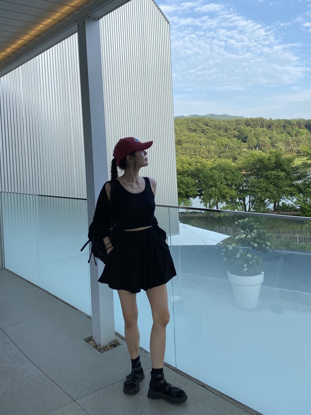 크롭기장의 나시지만 스커트가 하이로 올라오며