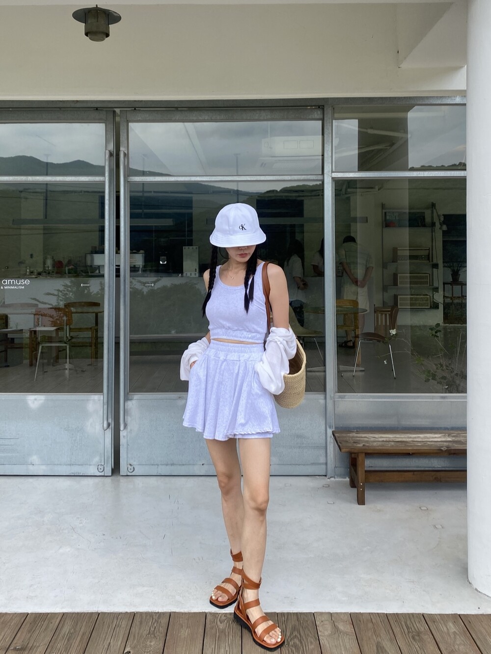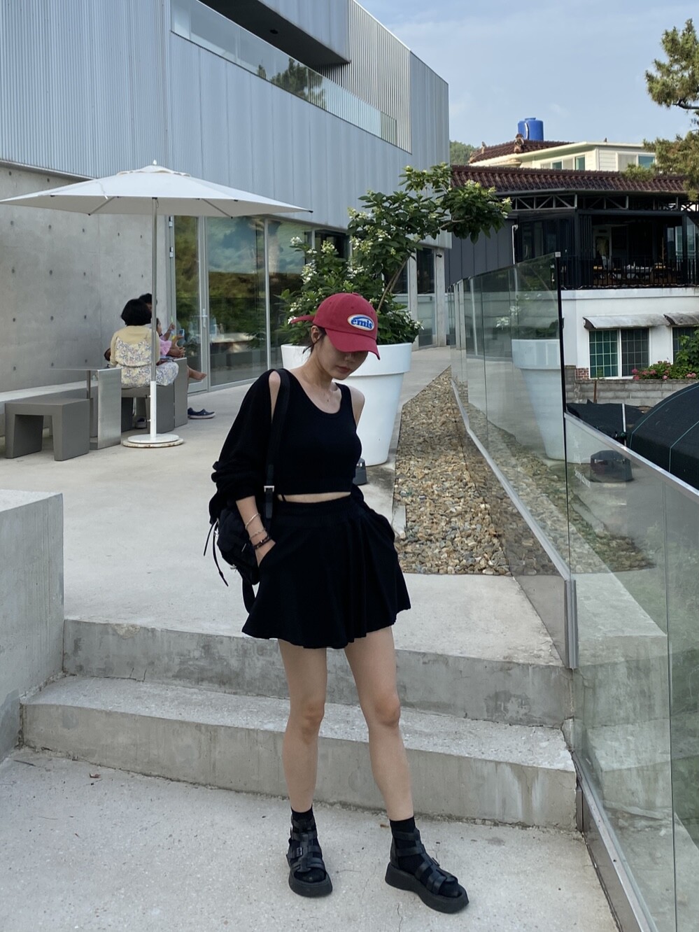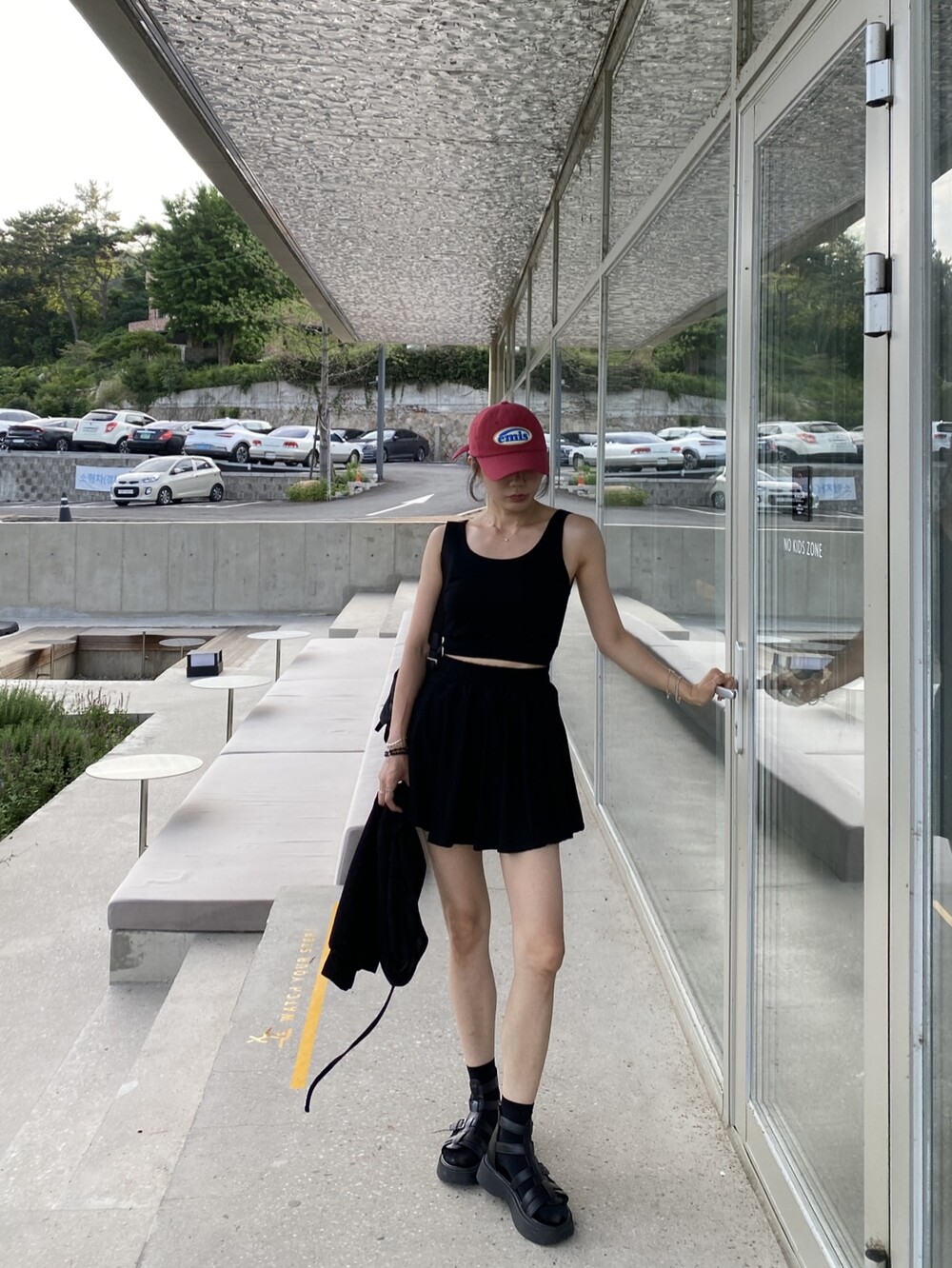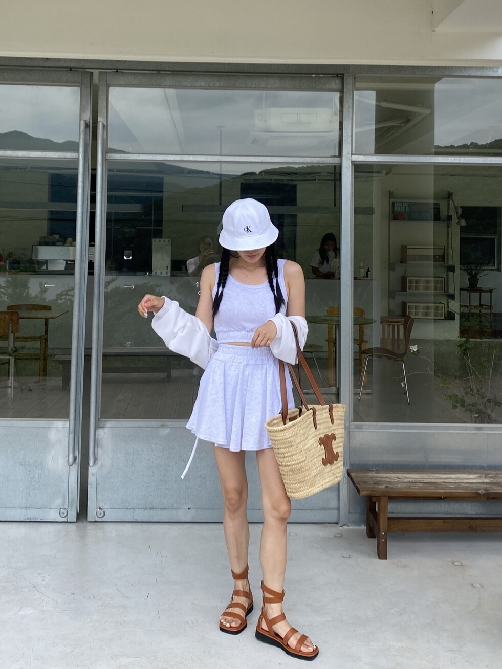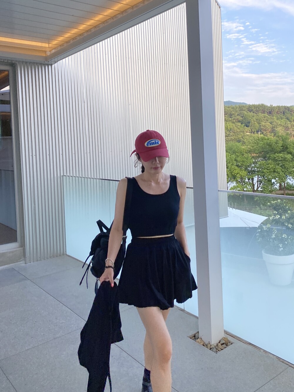 크롭기장의 나시지만 스커트가 하이로 올라오며