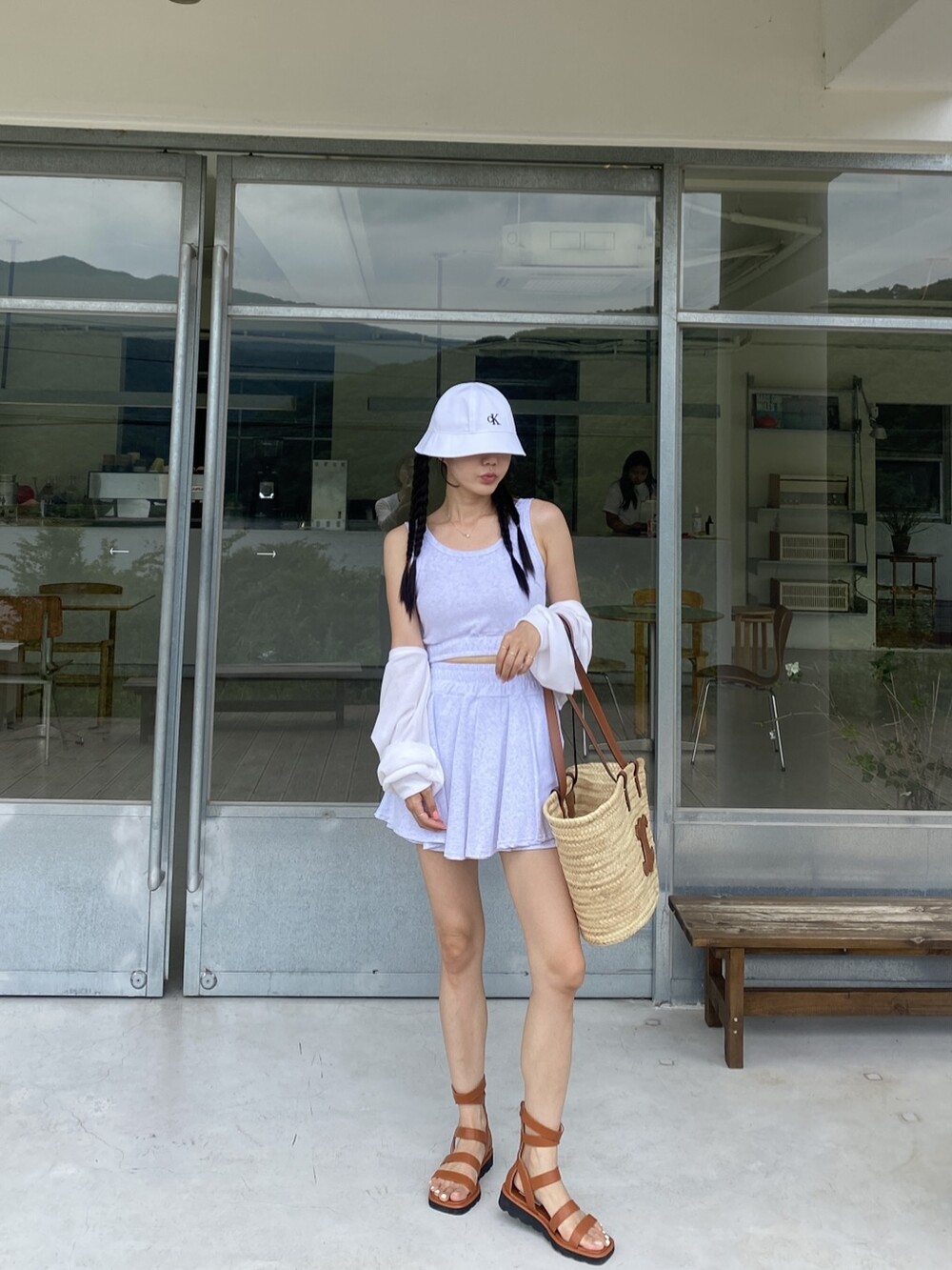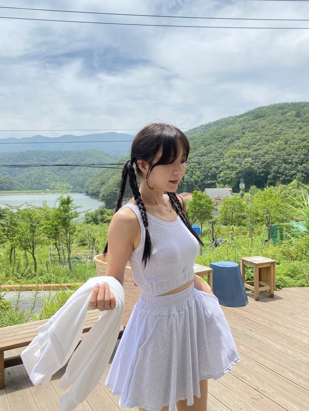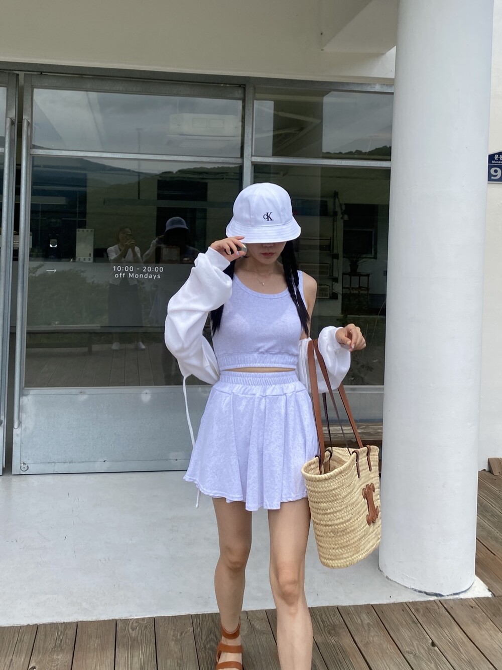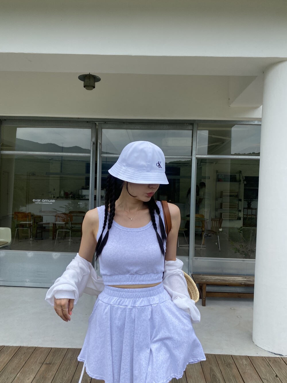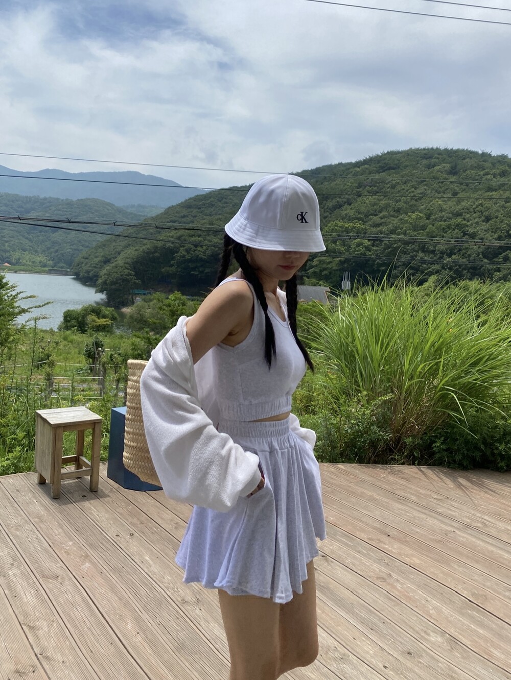 크롭기장의 나시지만 스커트가 하이로 올라오며