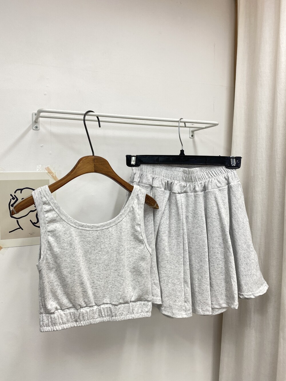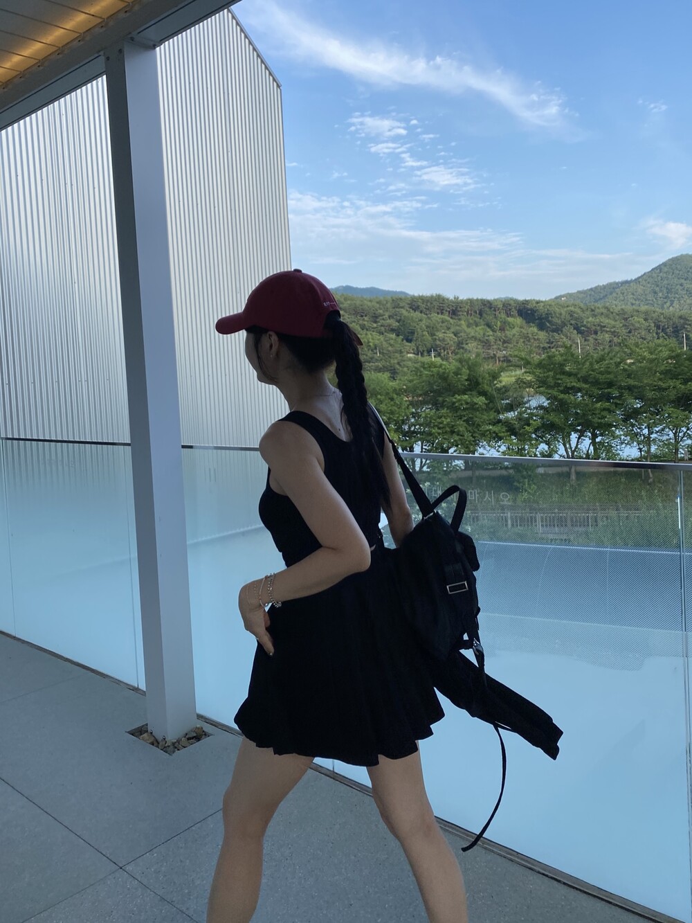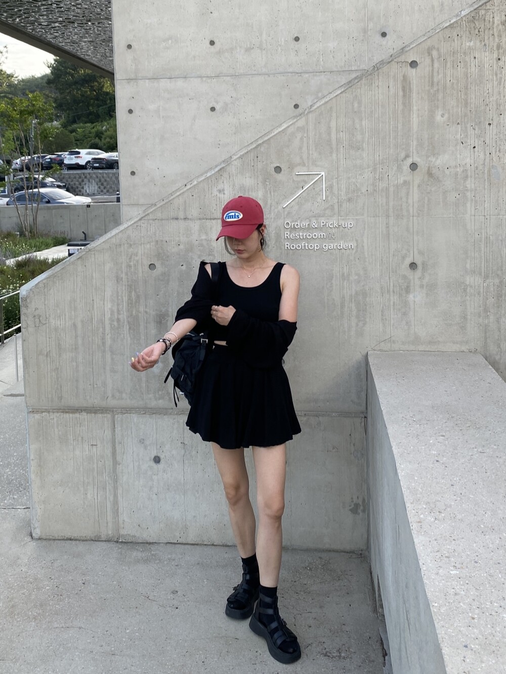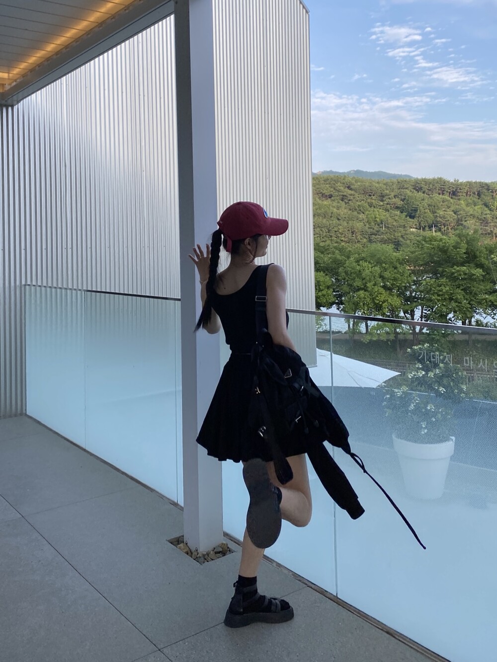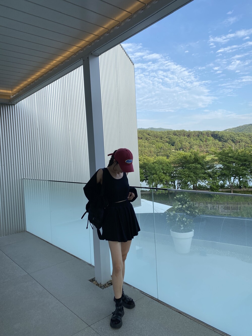 크롭기장의 나시지만 스커트가 하이로 올라오며