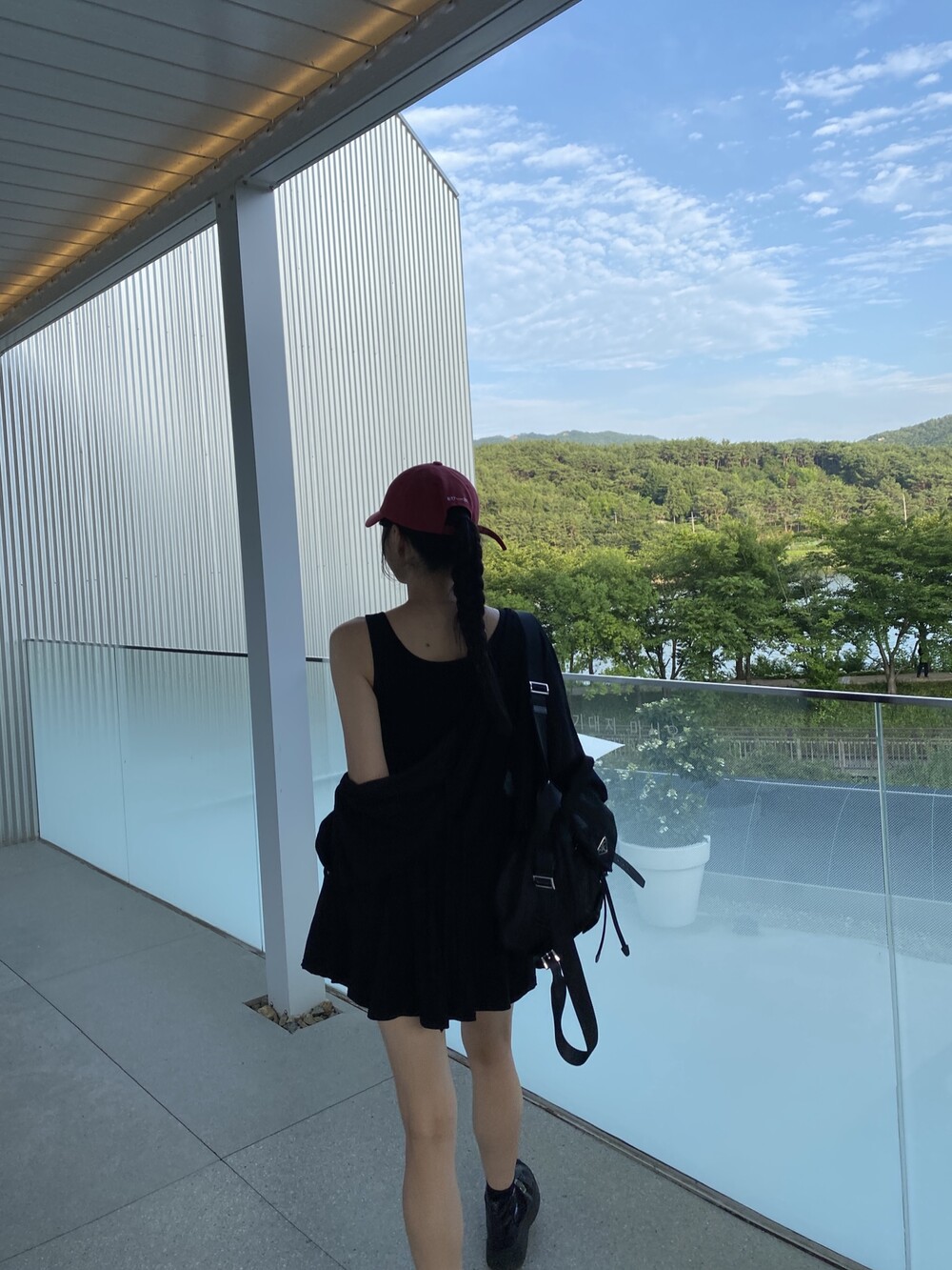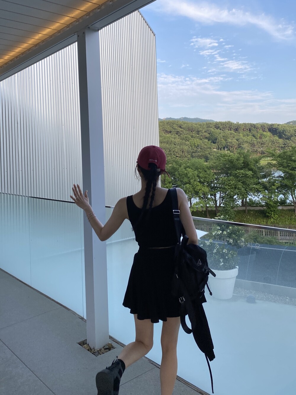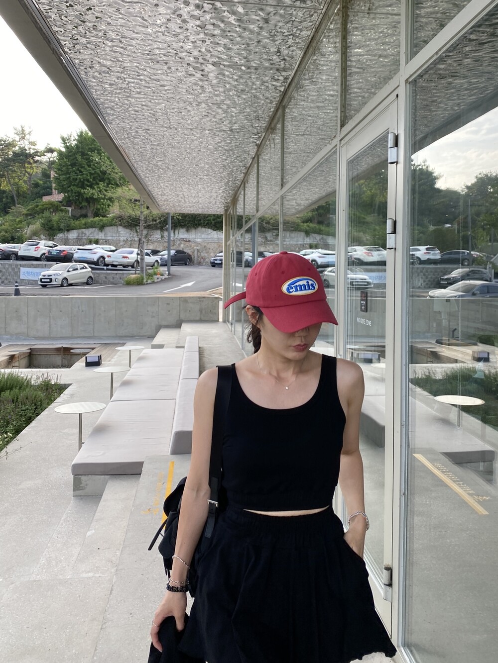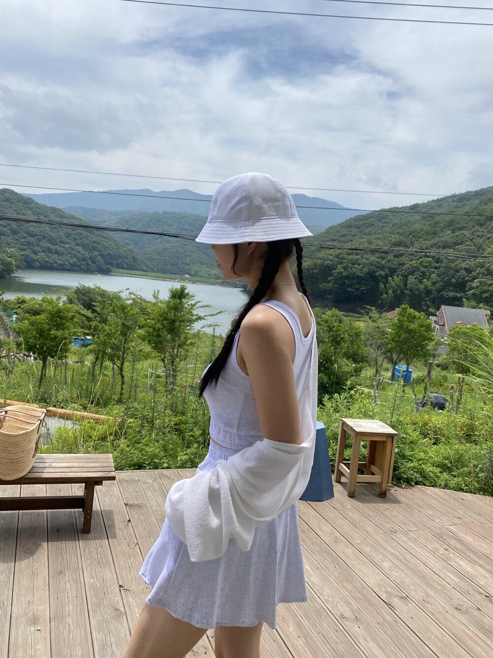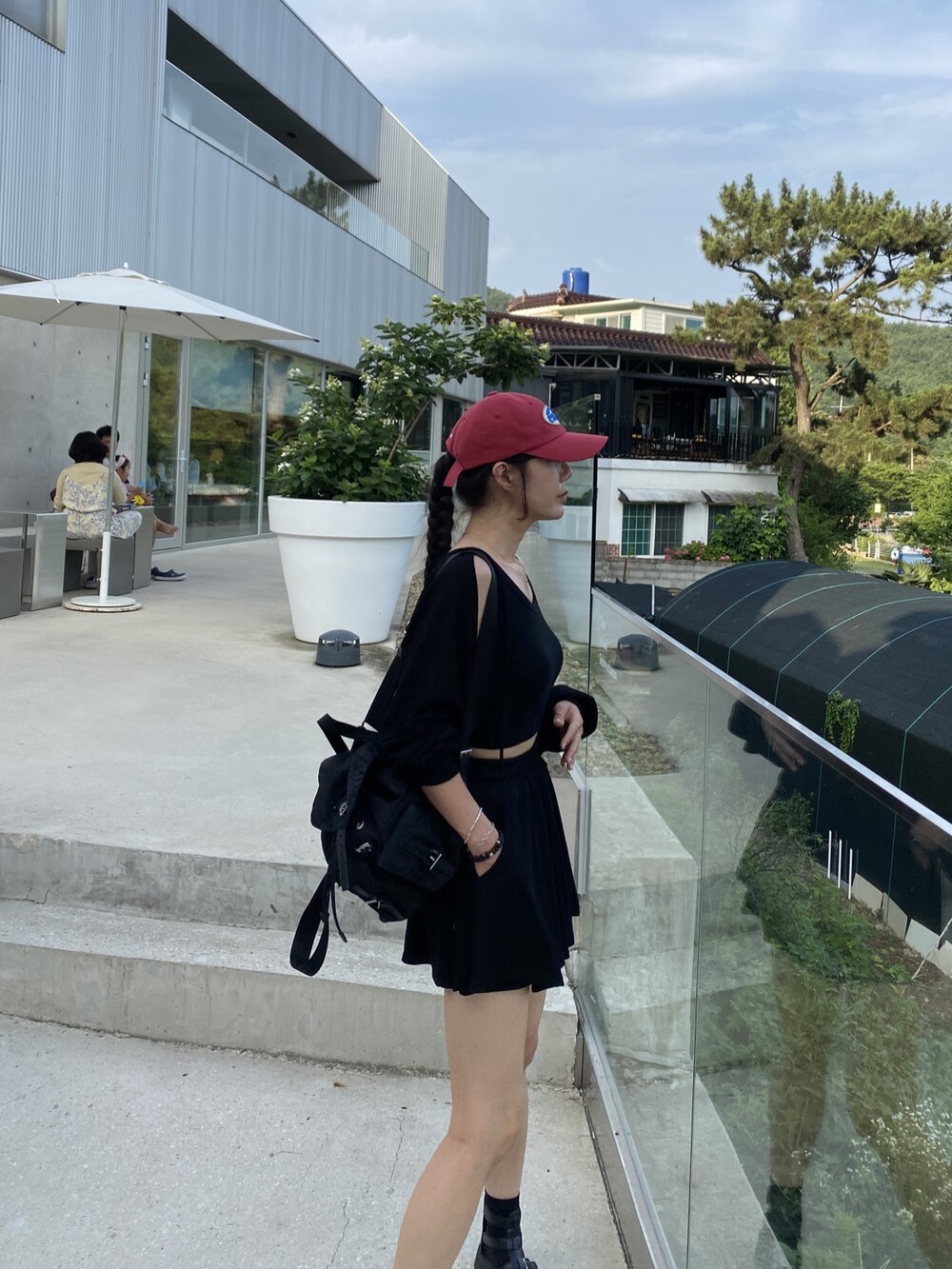 크롭기장의 나시지만 스커트가 하이로 올라오며
