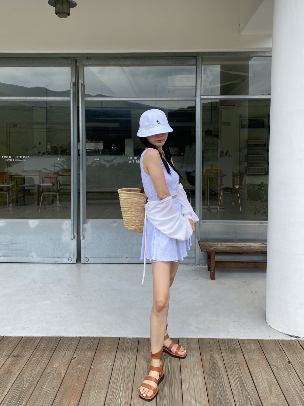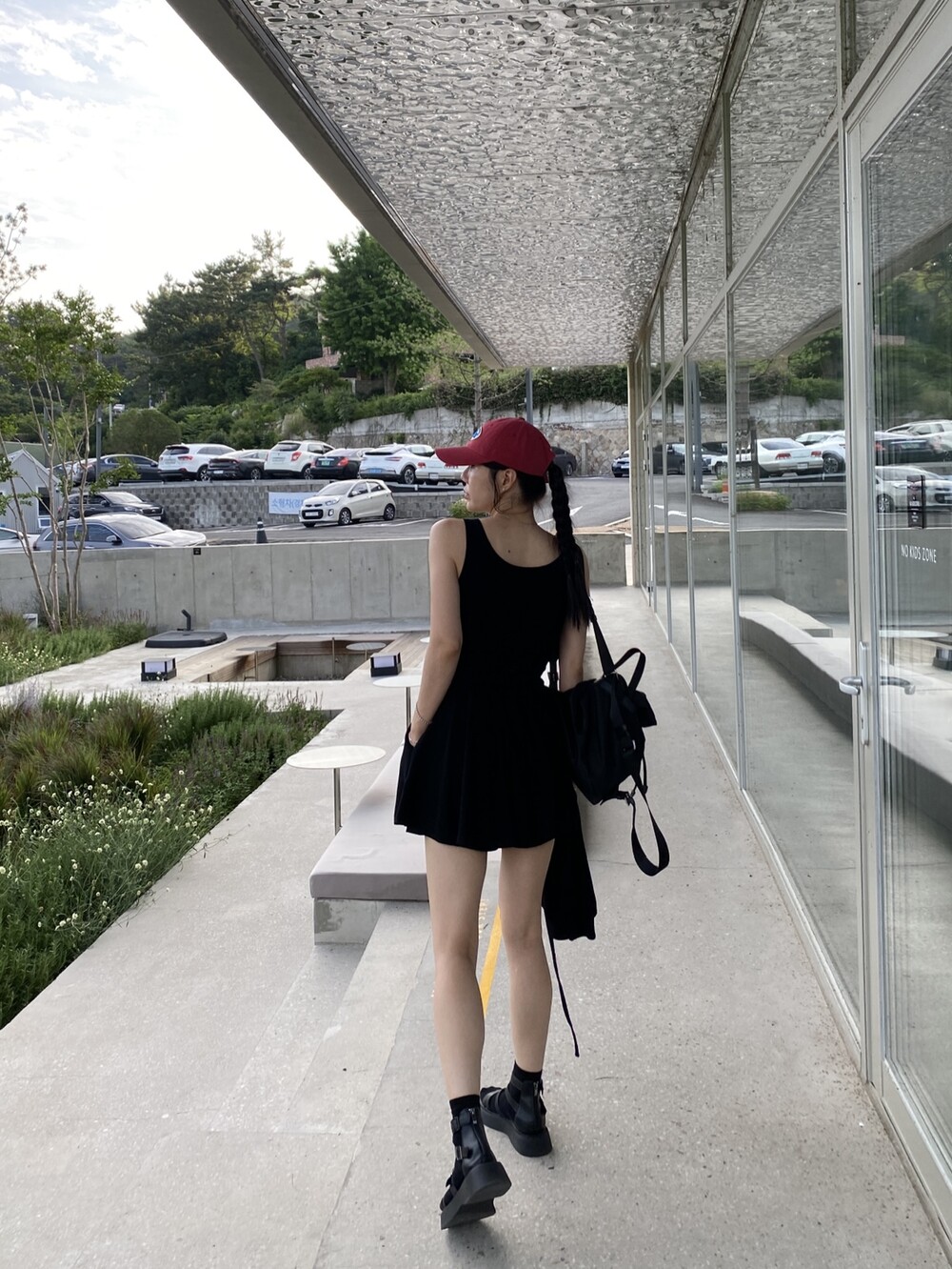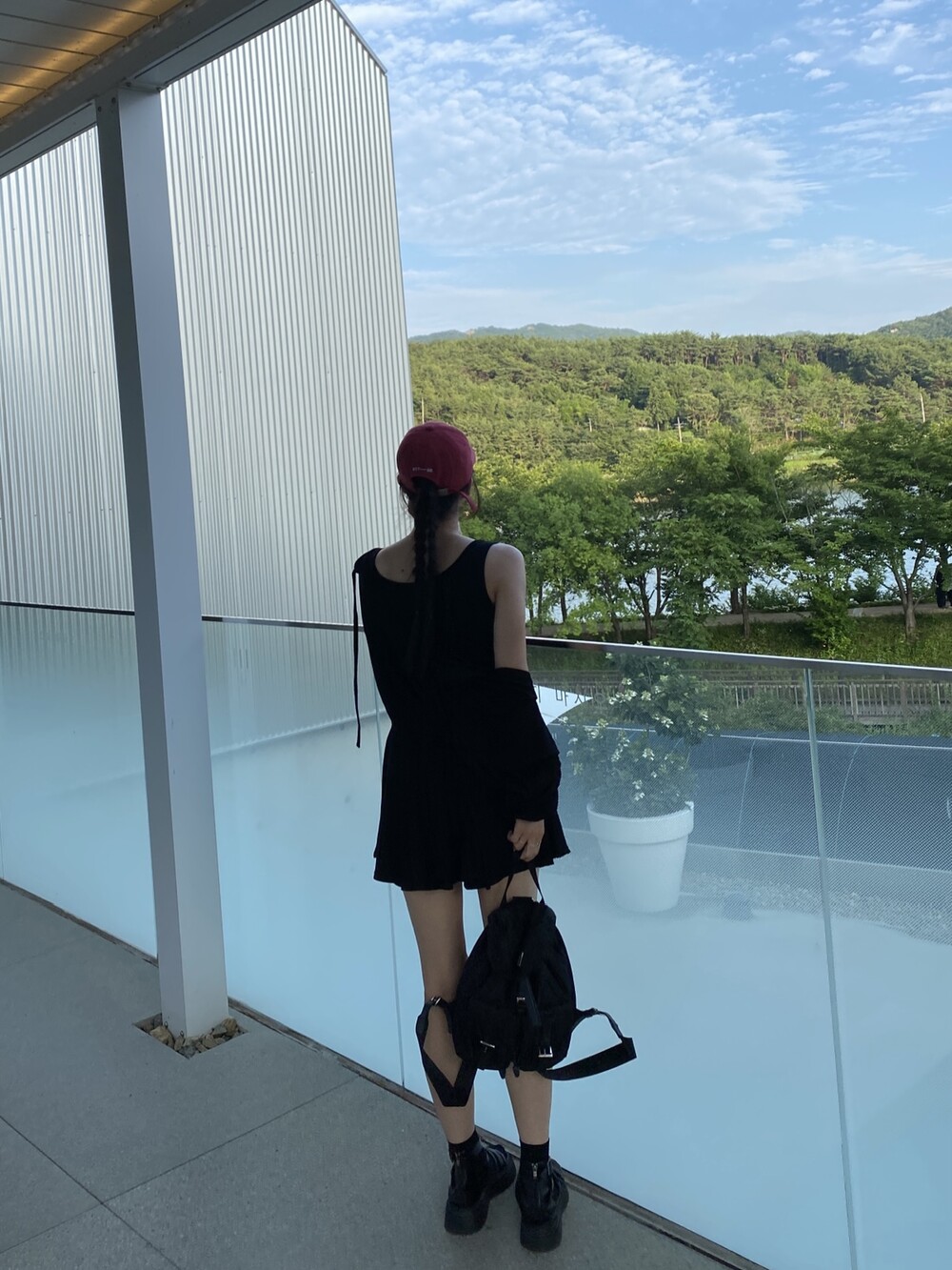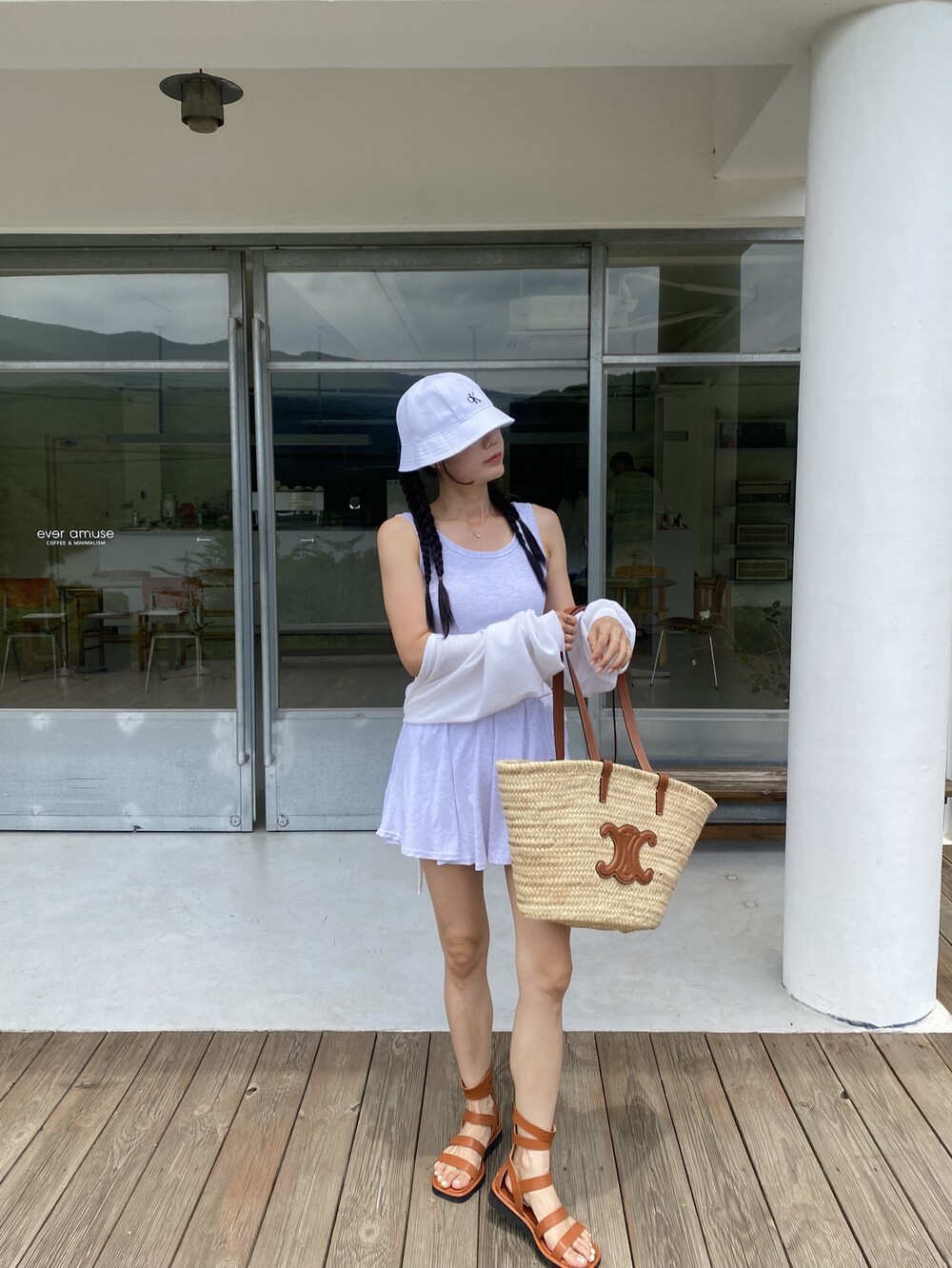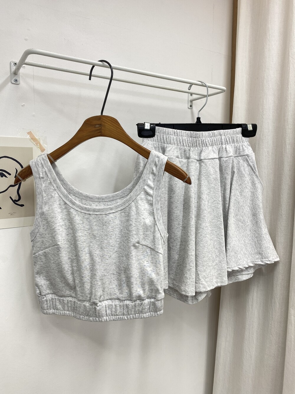 크롭기장의 나시지만 스커트가 하이로 올라오며