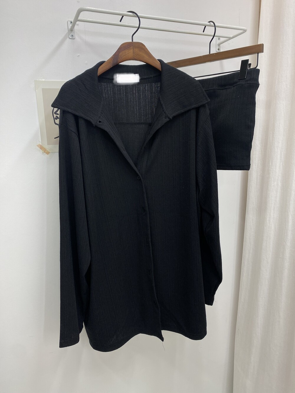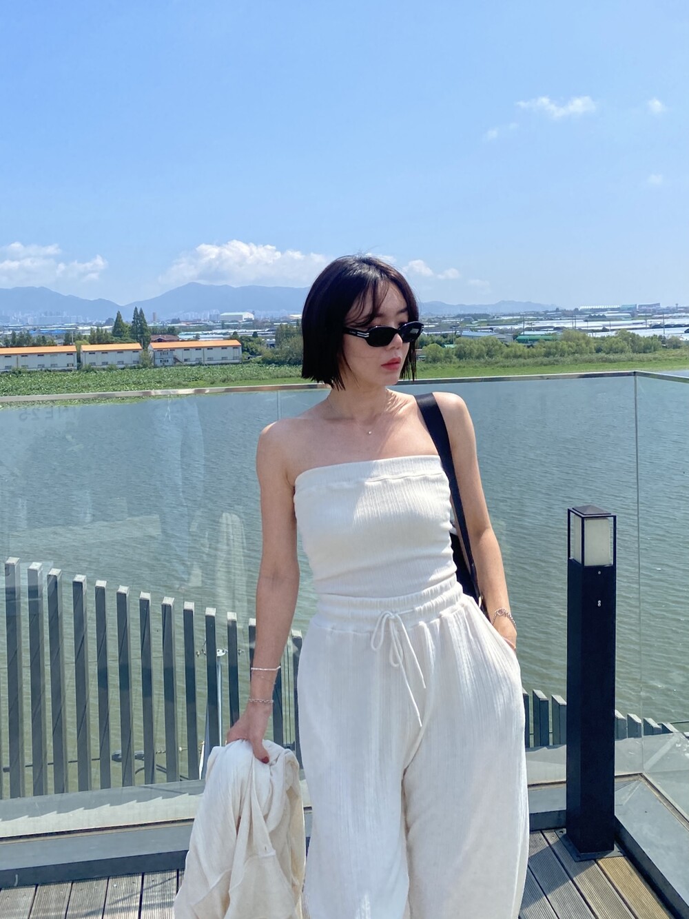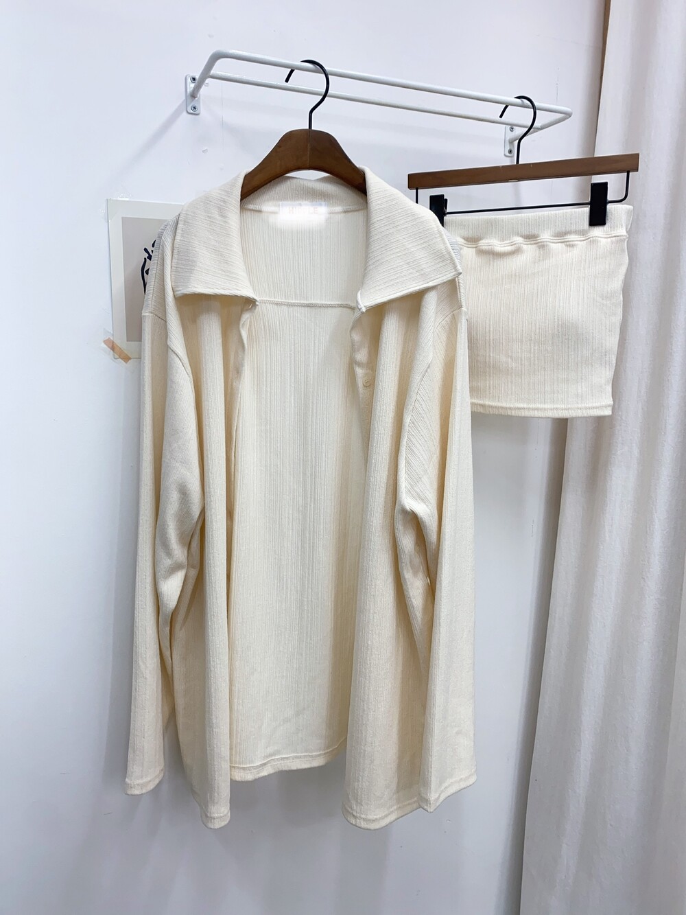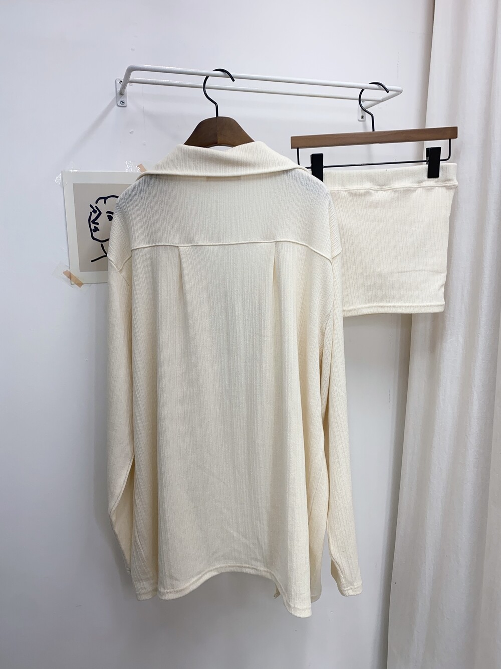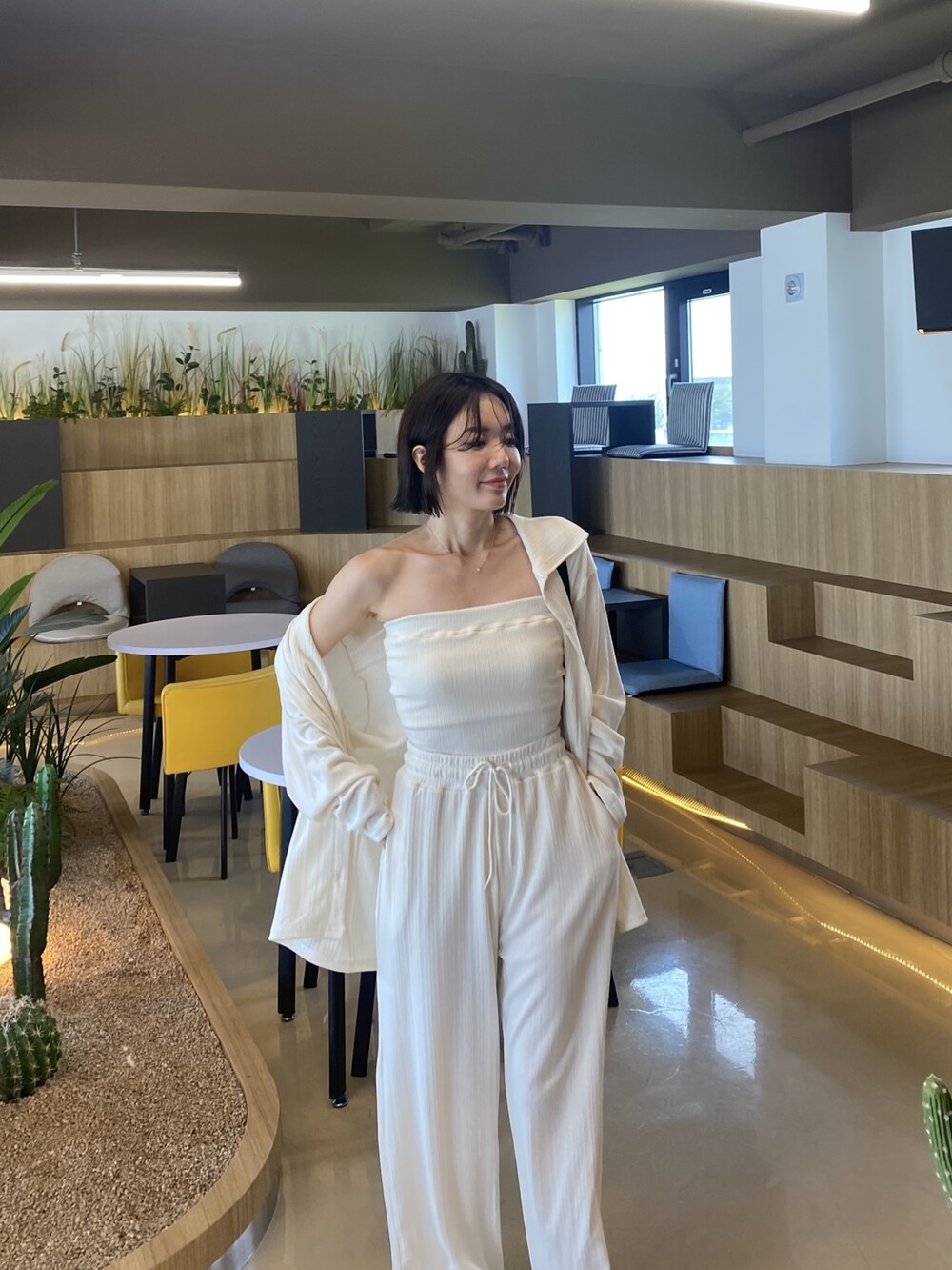 셋업으로 나온 플리츠 튜브탑 남방세트예요
