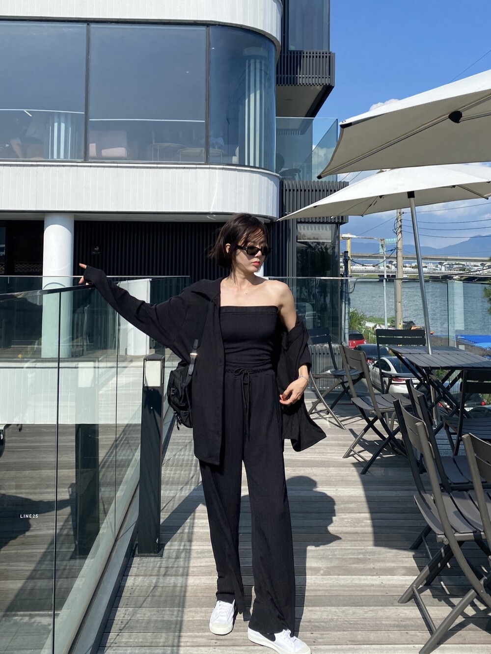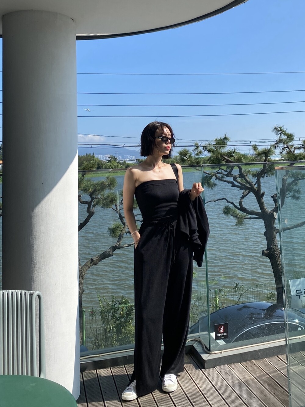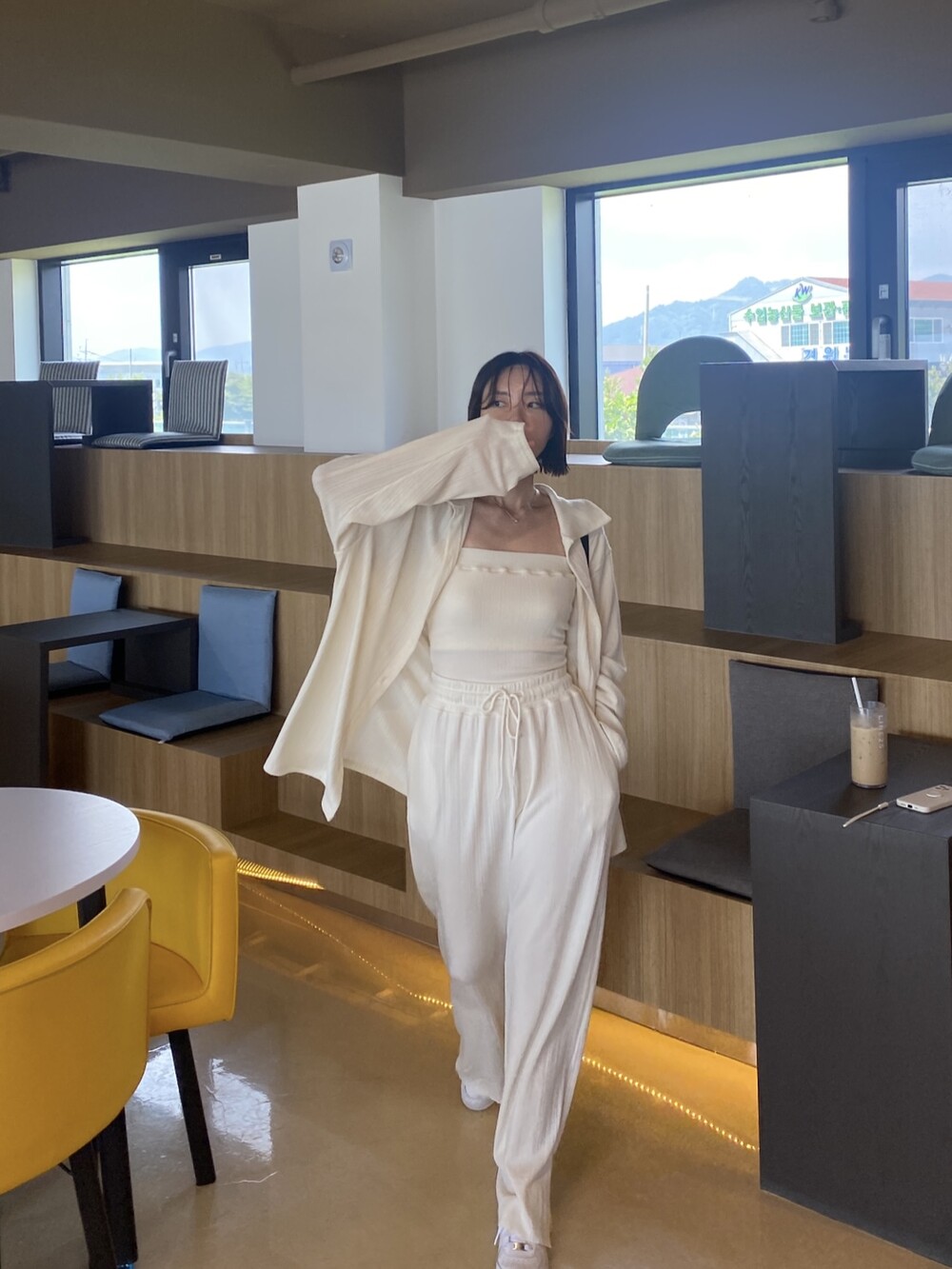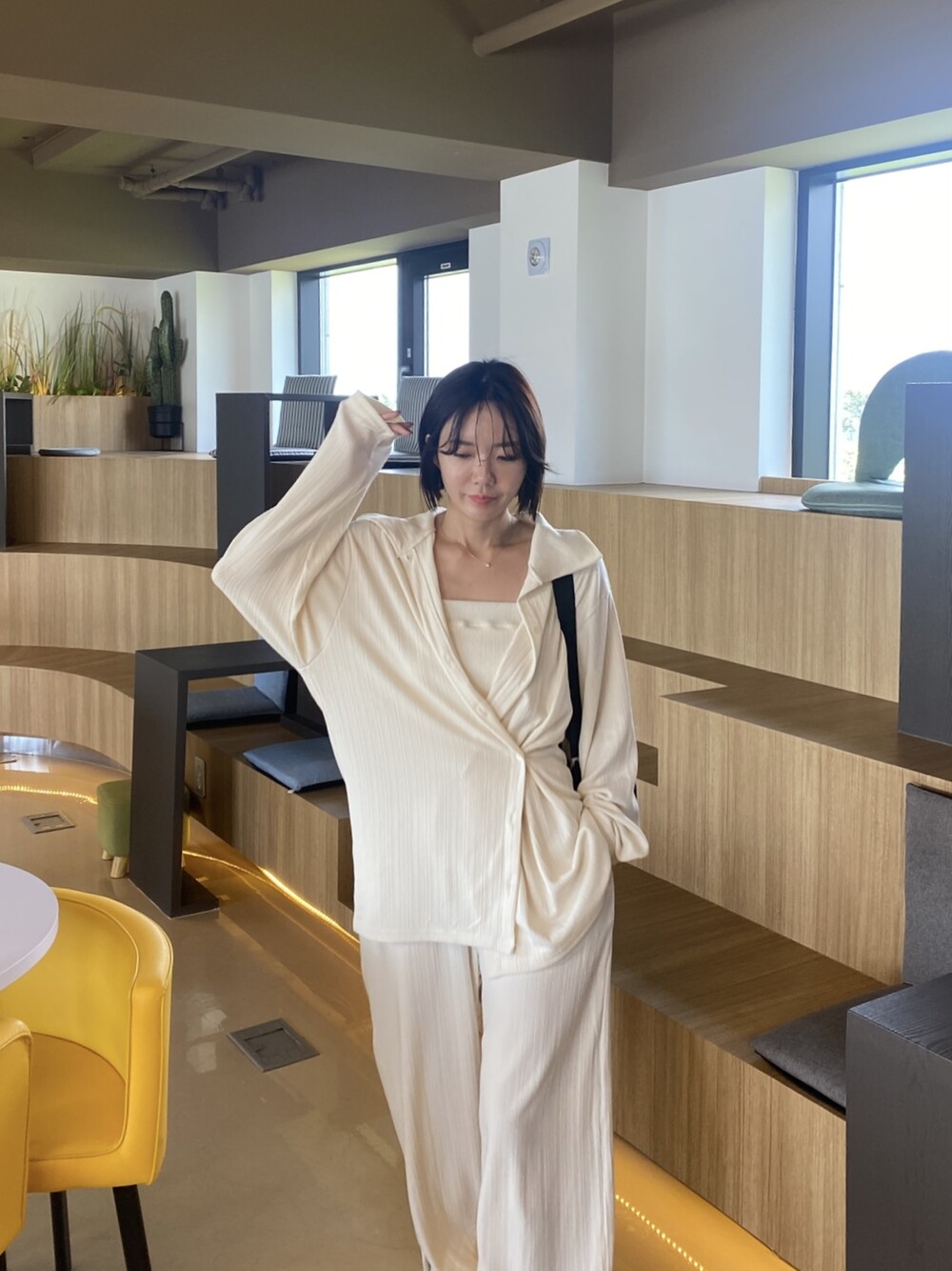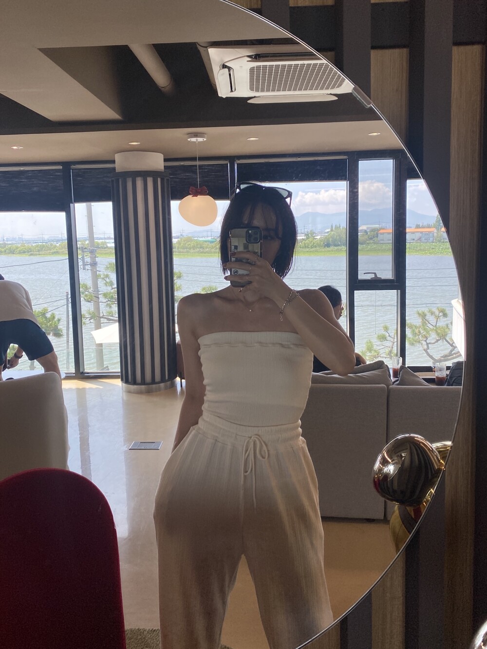 셋업으로 나온 플리츠 튜브탑 남방세트예요