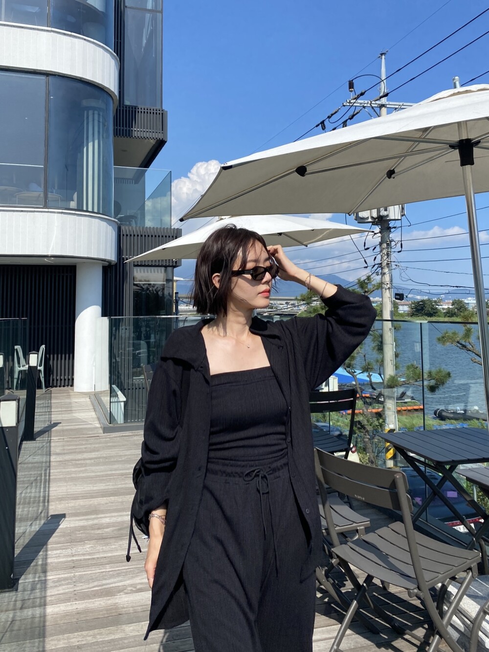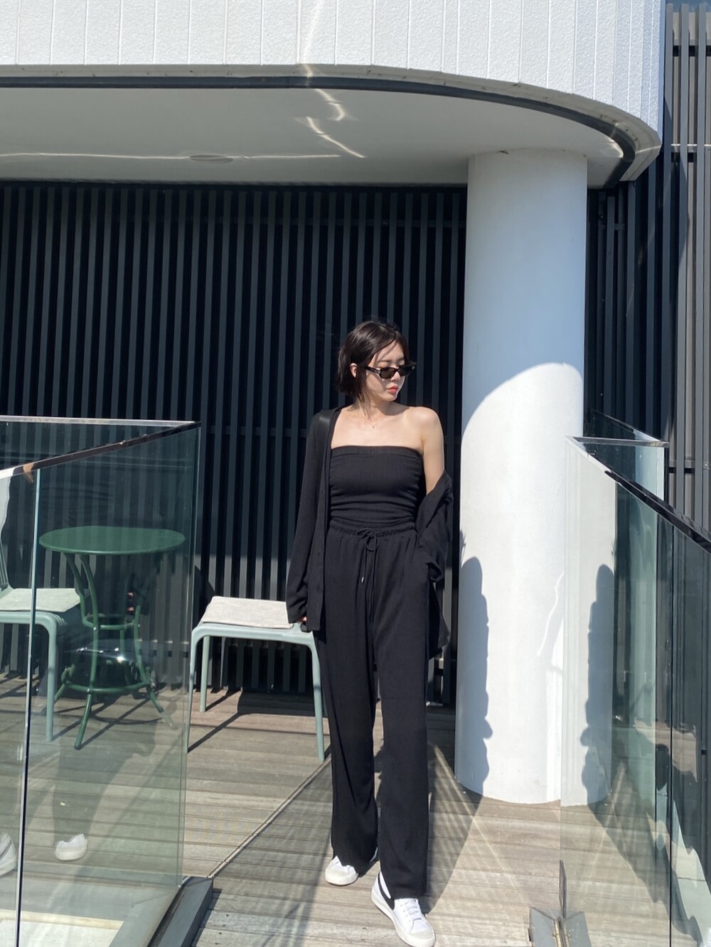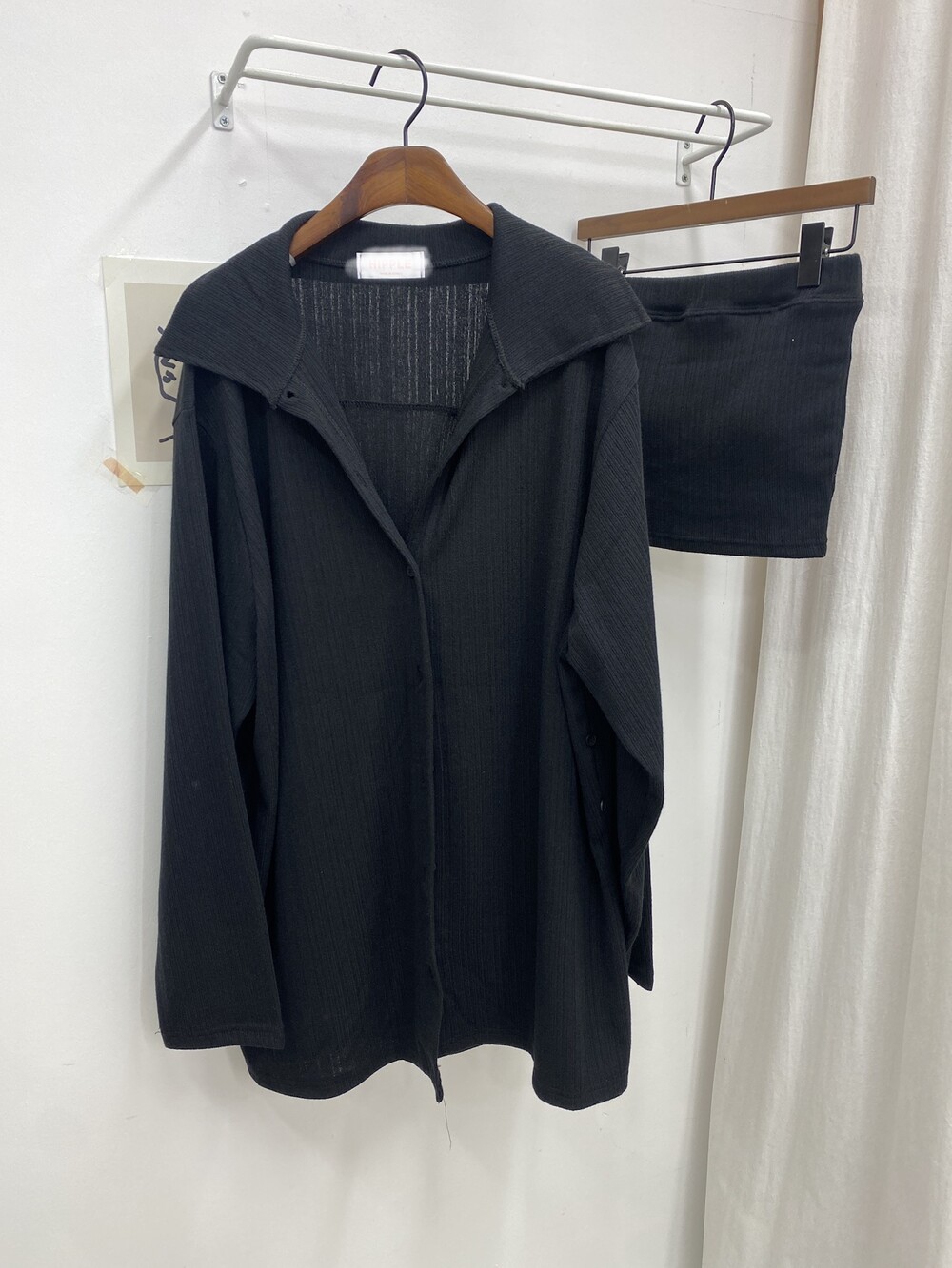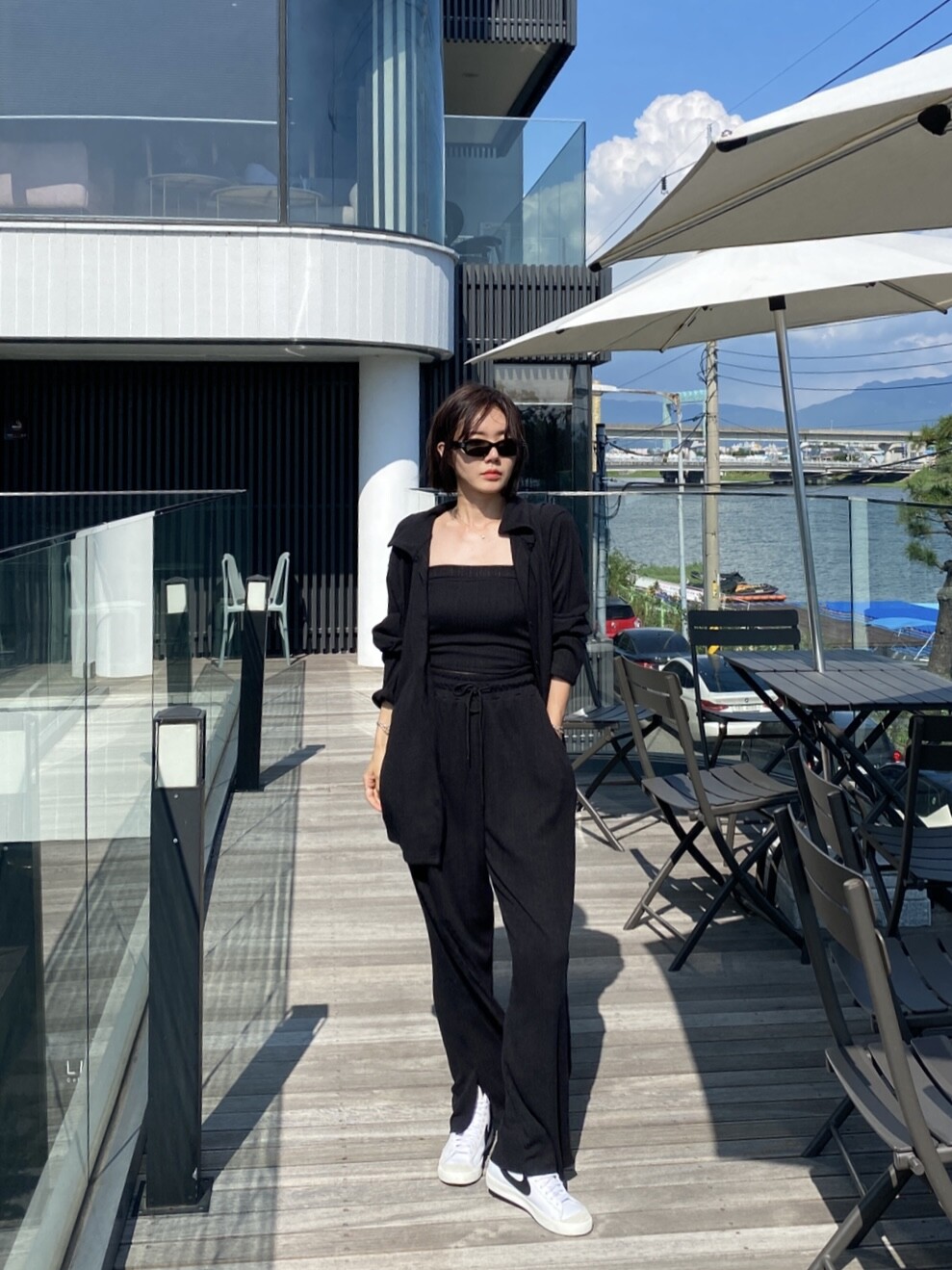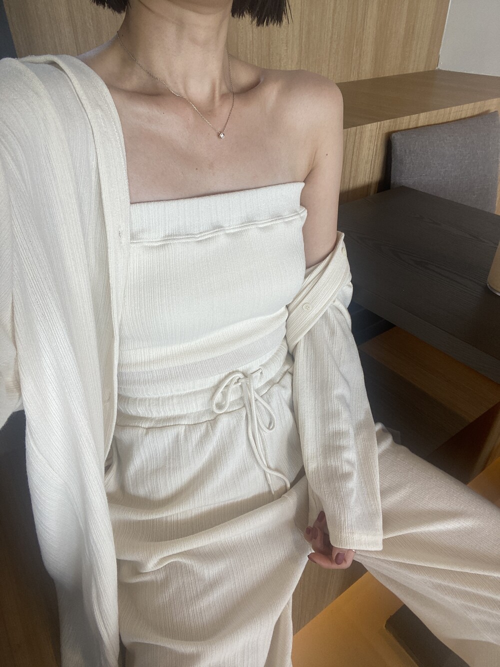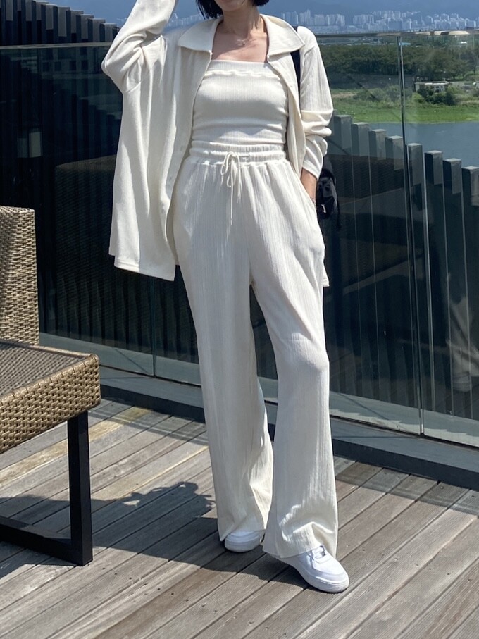 셋업으로 나온 플리츠 튜브탑 남방세트예요
