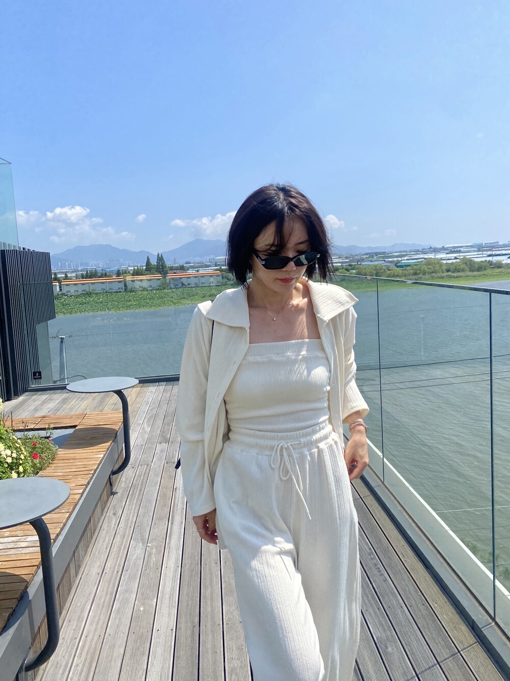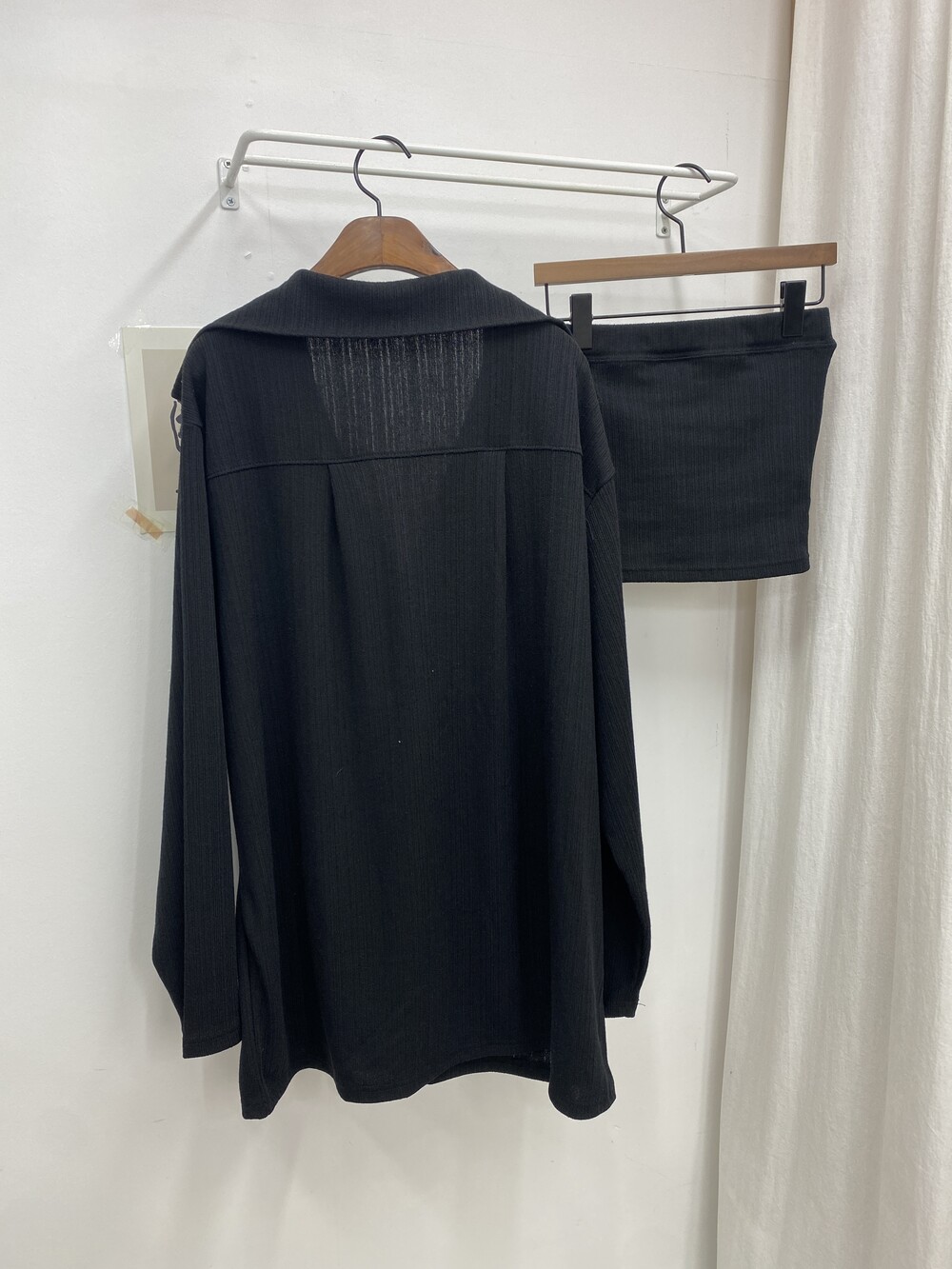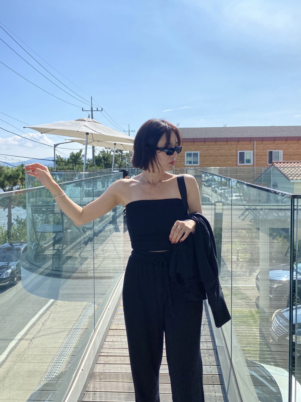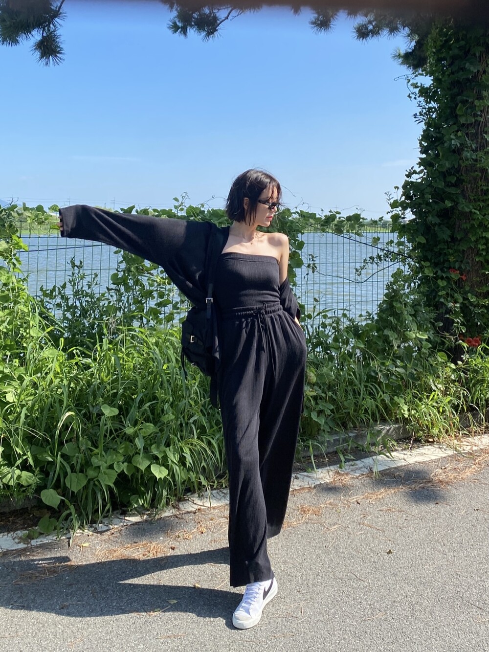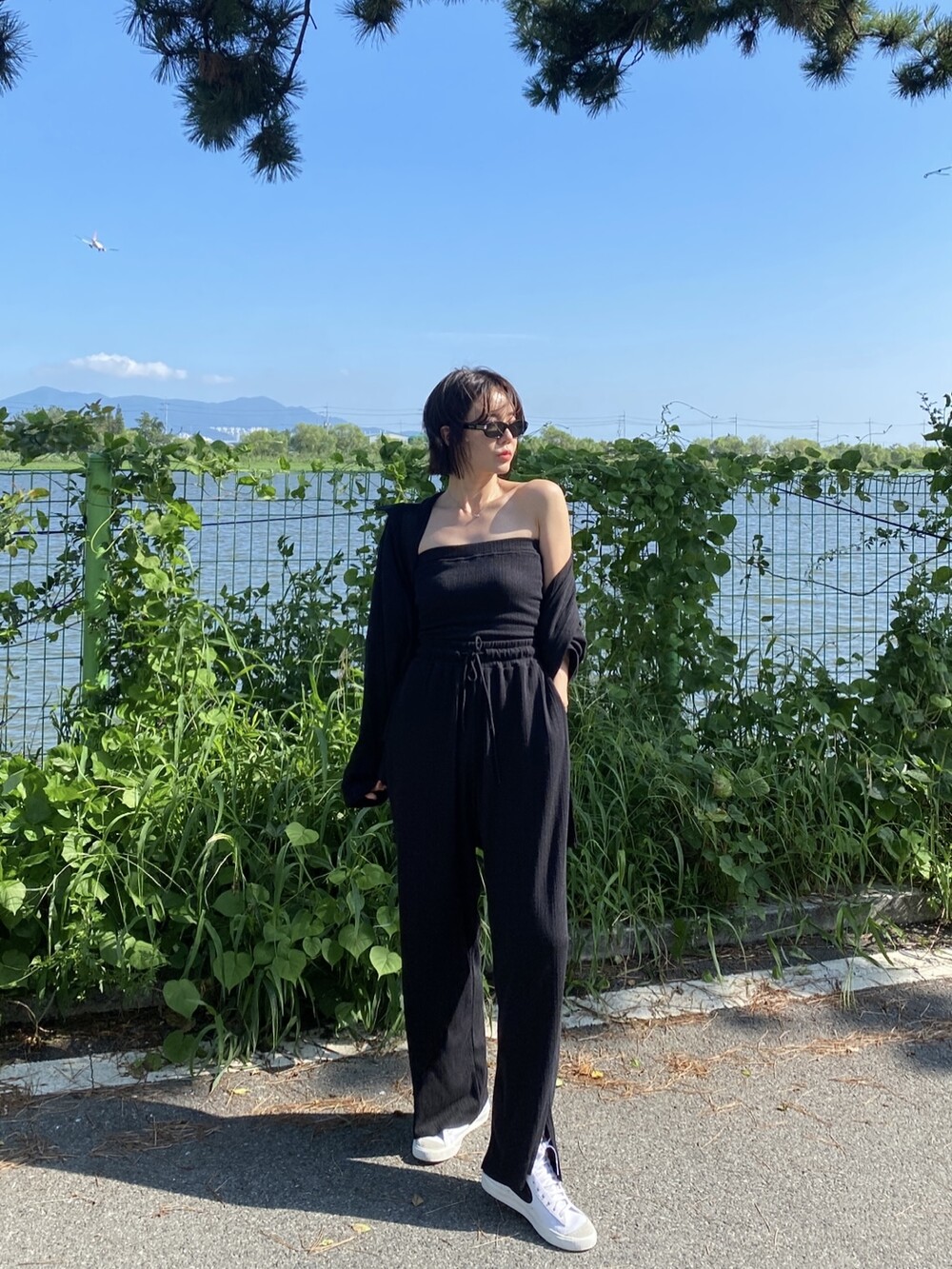 셋업으로 나온 플리츠 튜브탑 남방세트예요