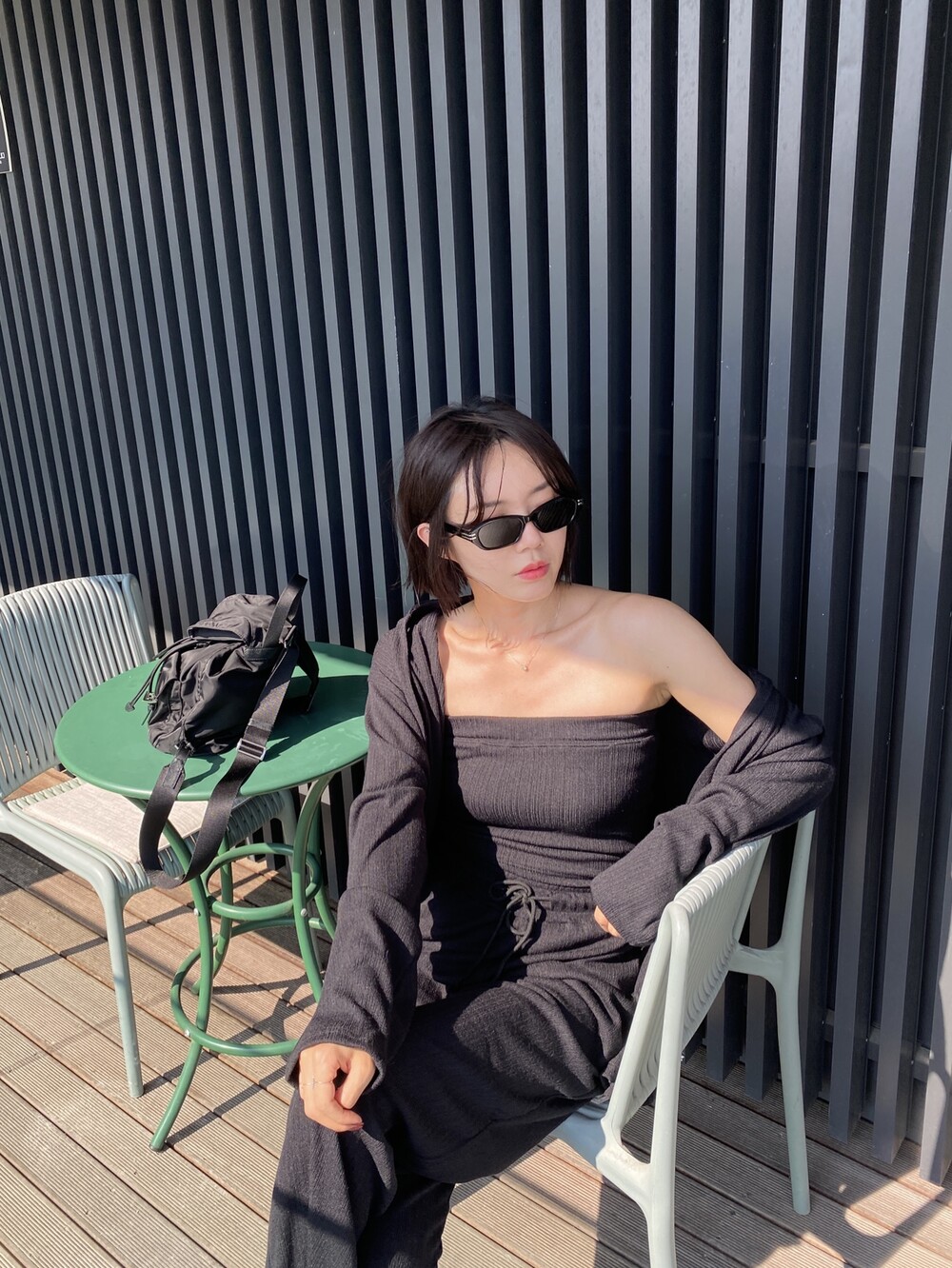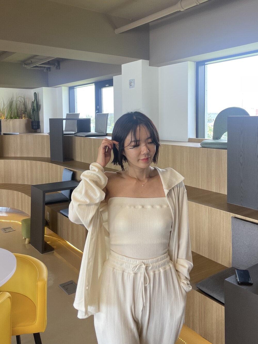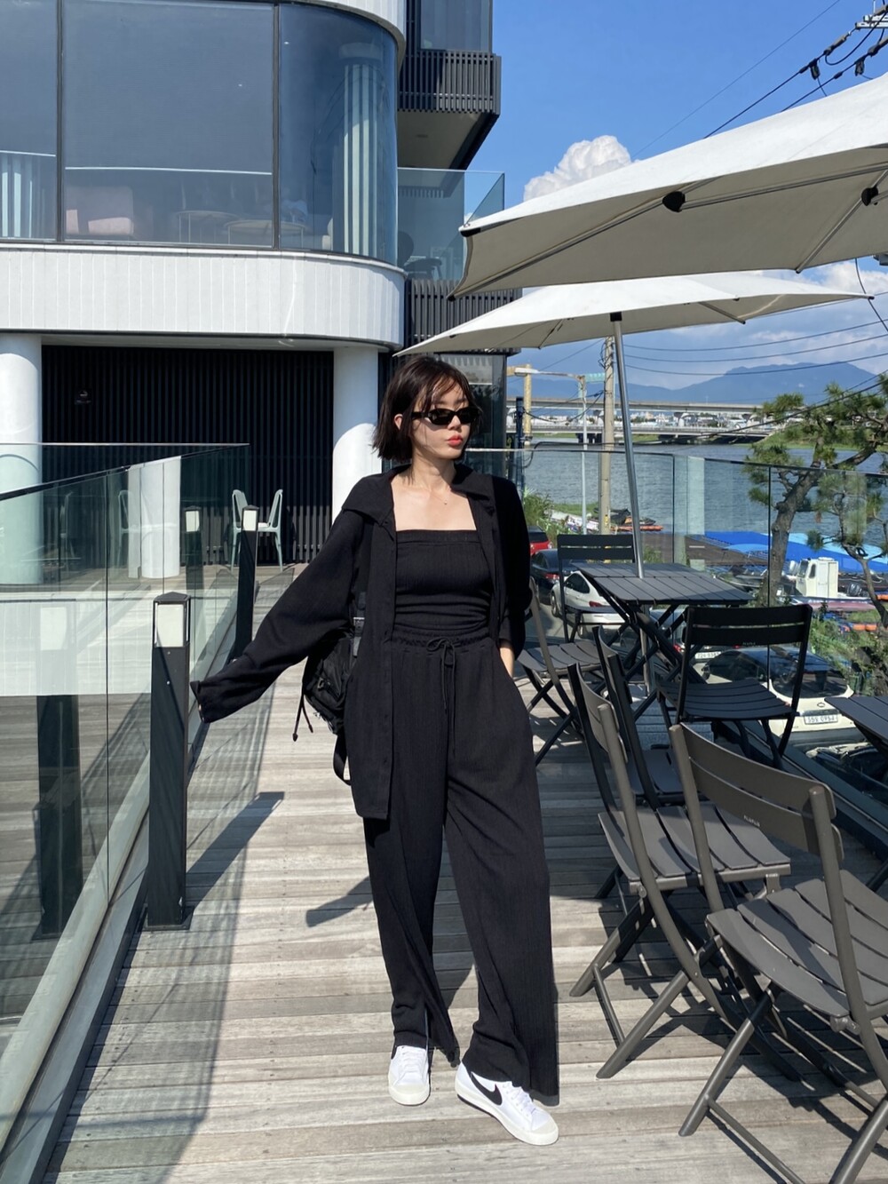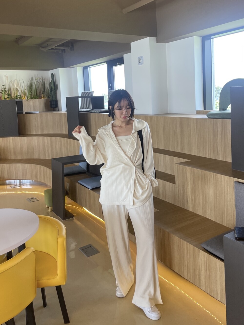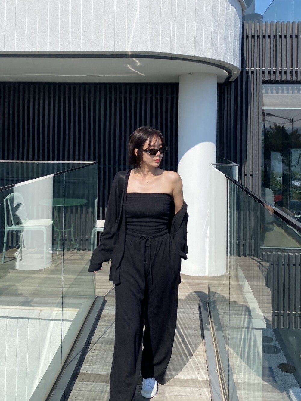 셋업으로 나온 플리츠 튜브탑 남방세트예요