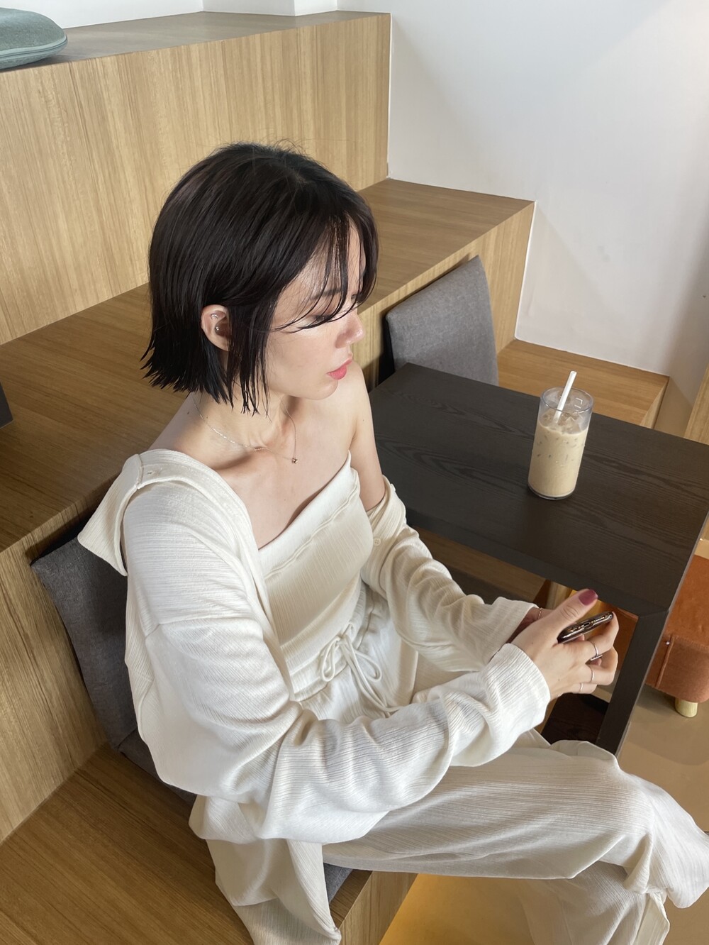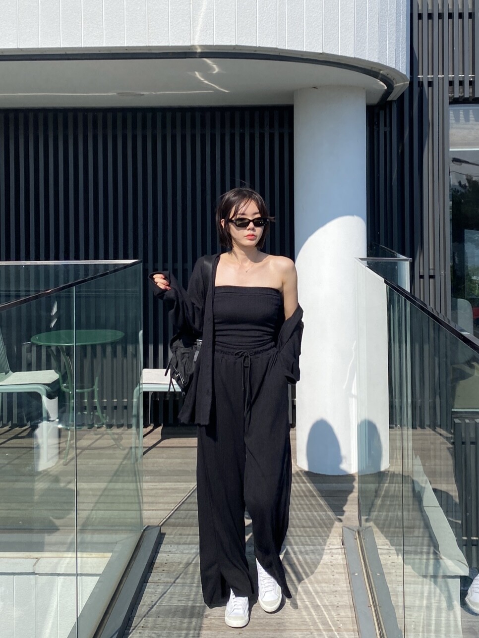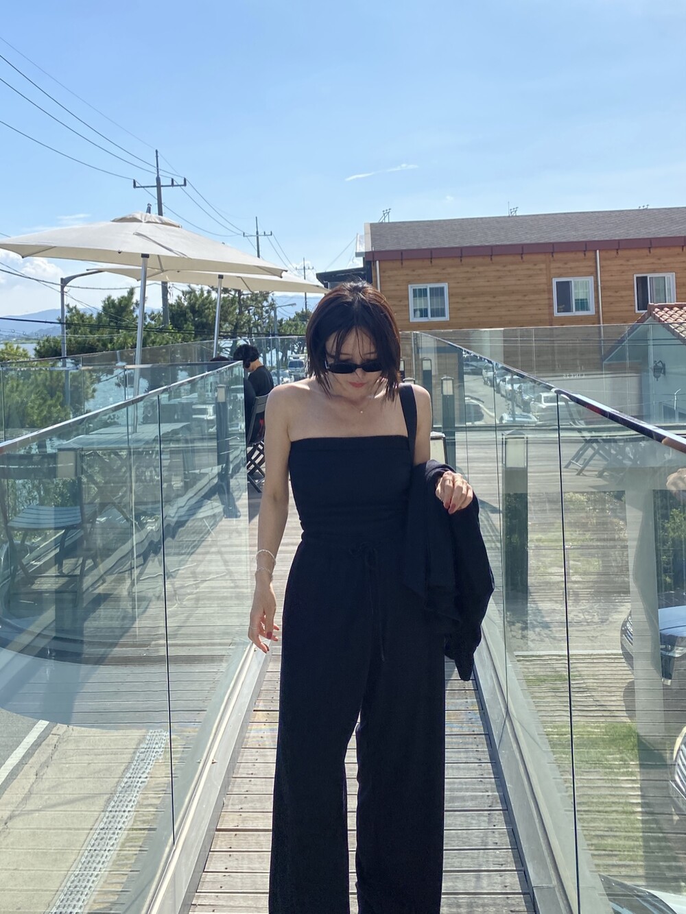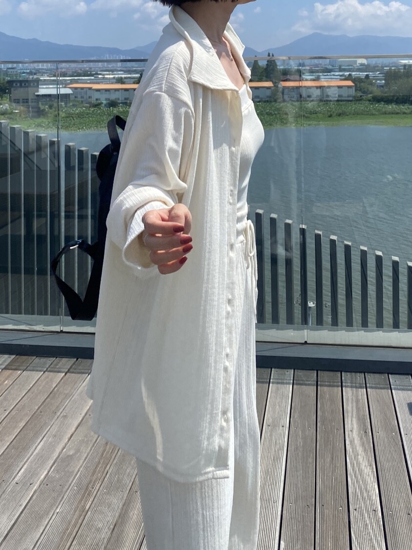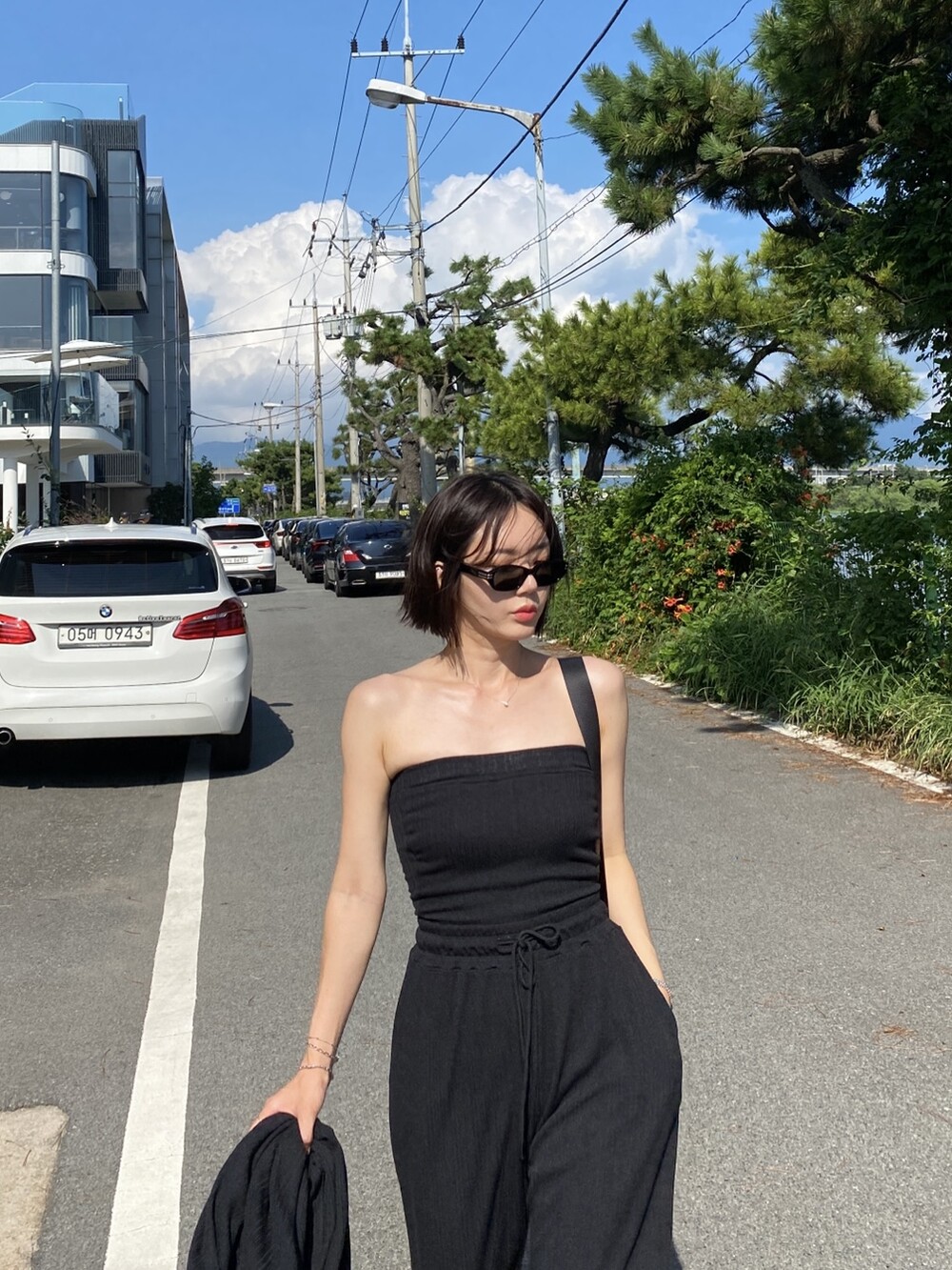 셋업으로 나온 플리츠 튜브탑 남방세트예요