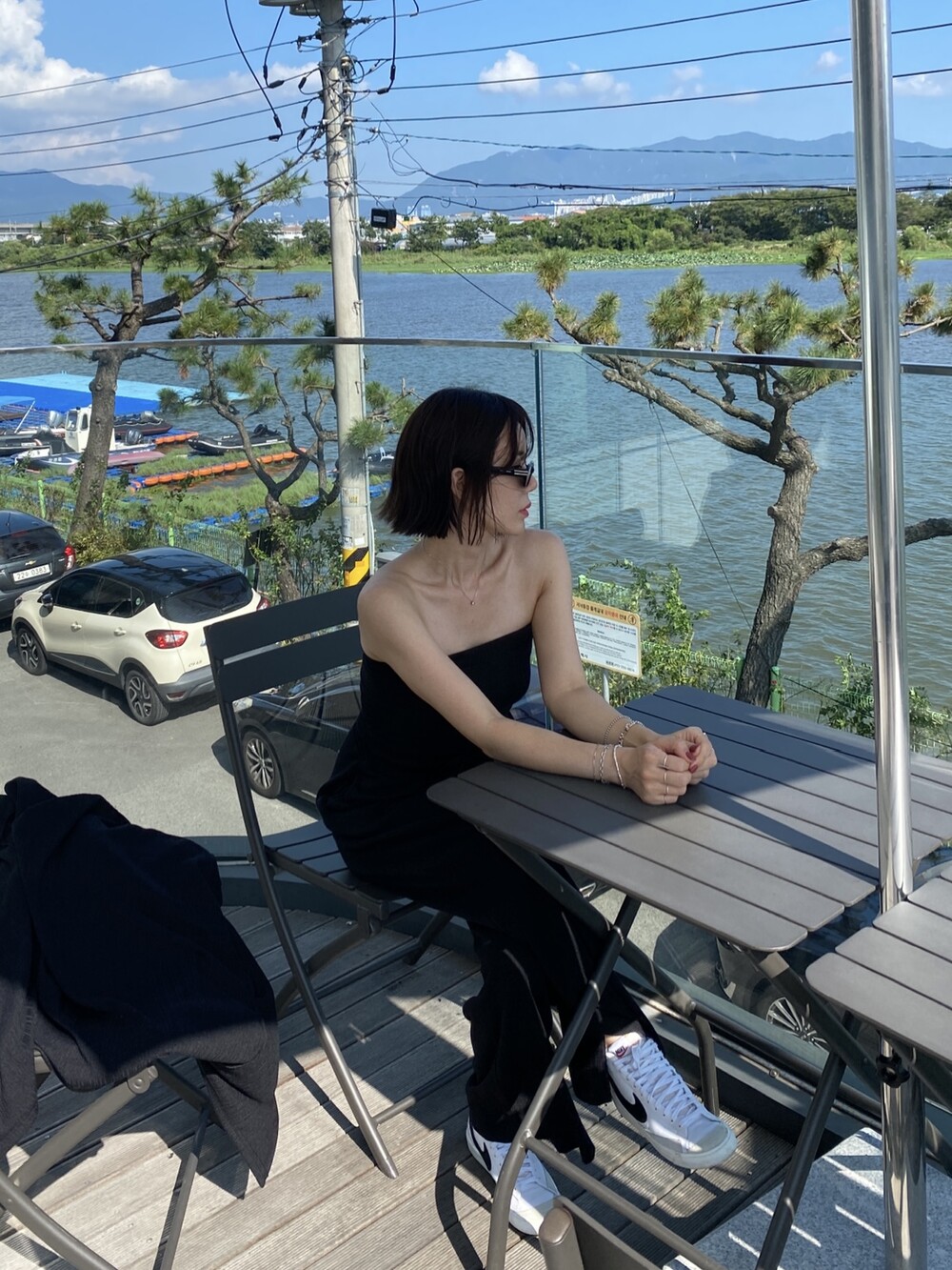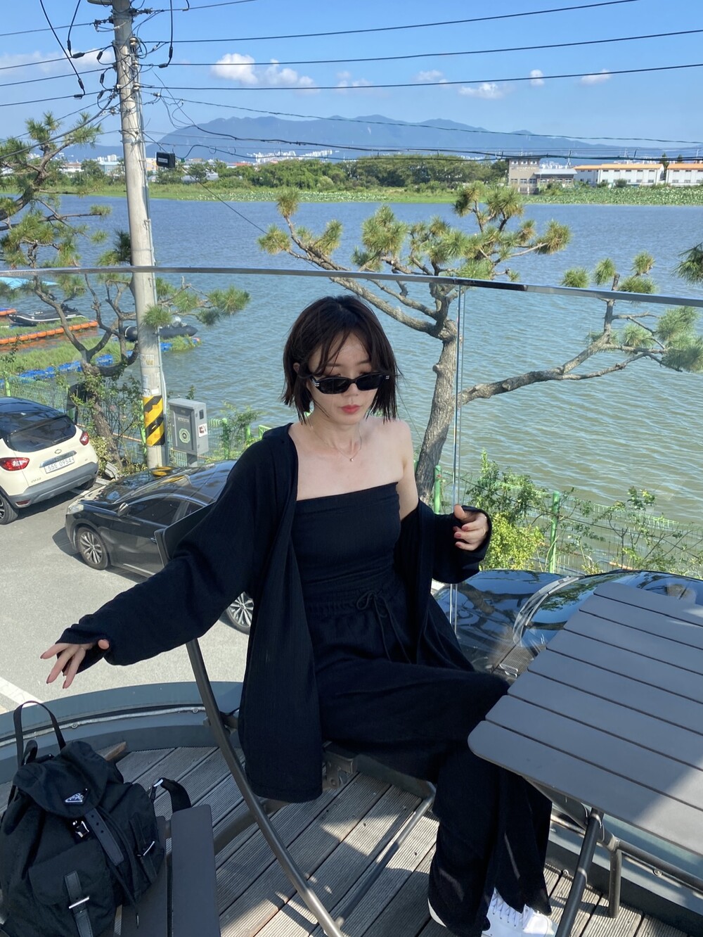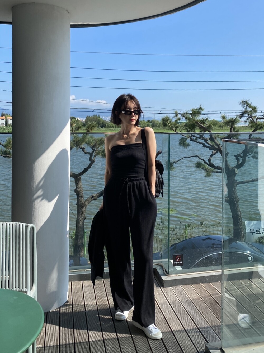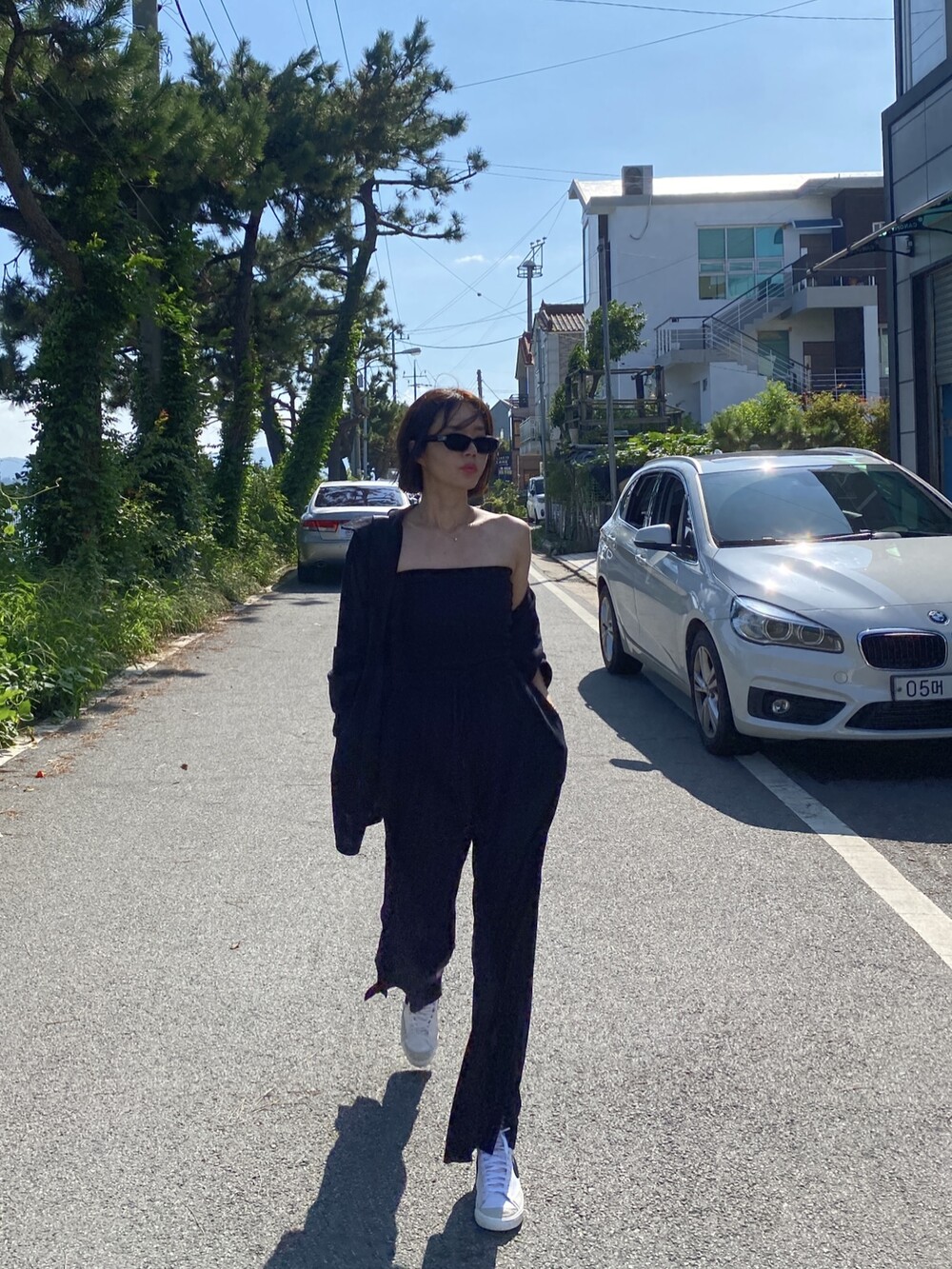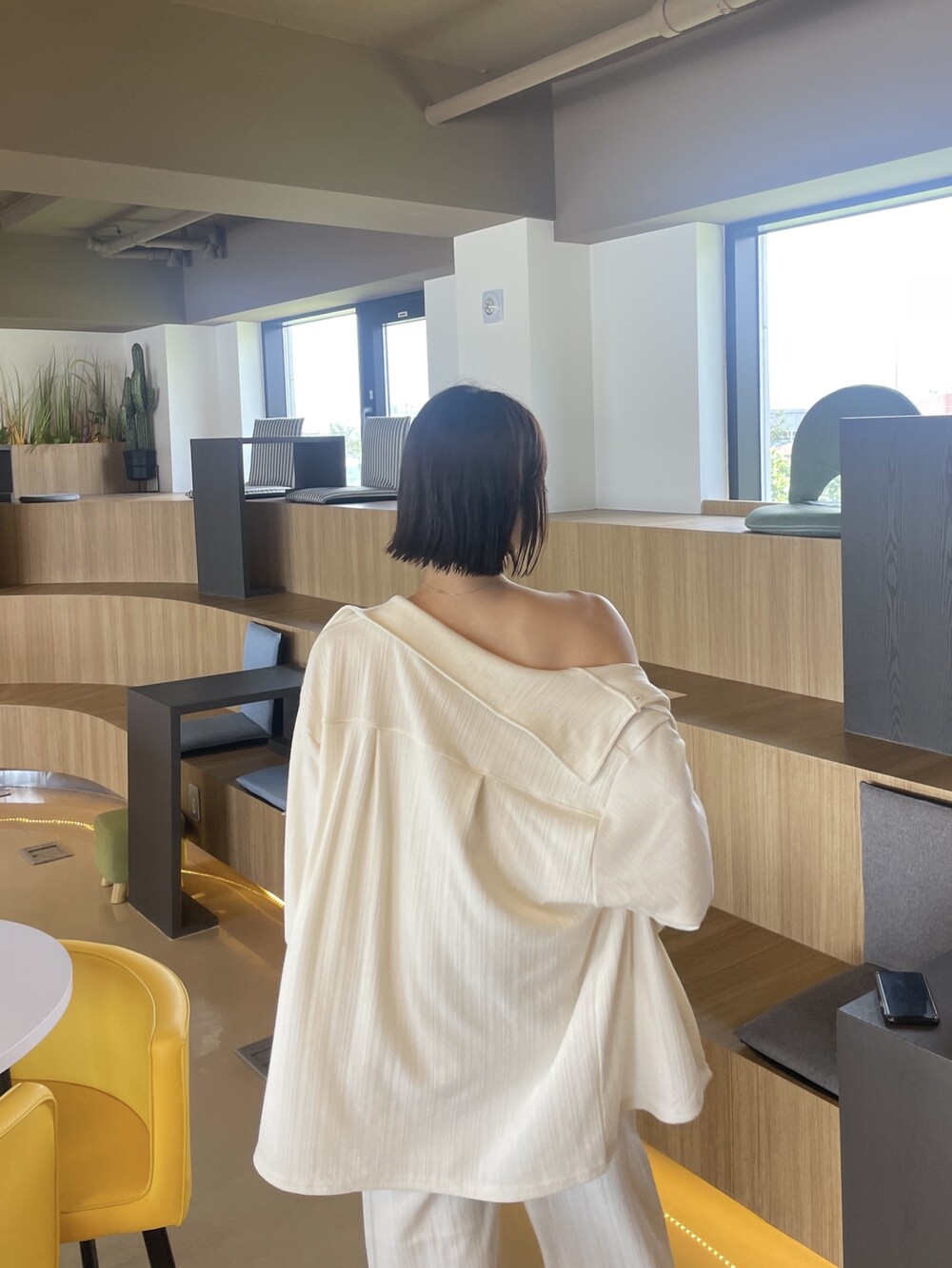 셋업으로 나온 플리츠 튜브탑 남방세트예요