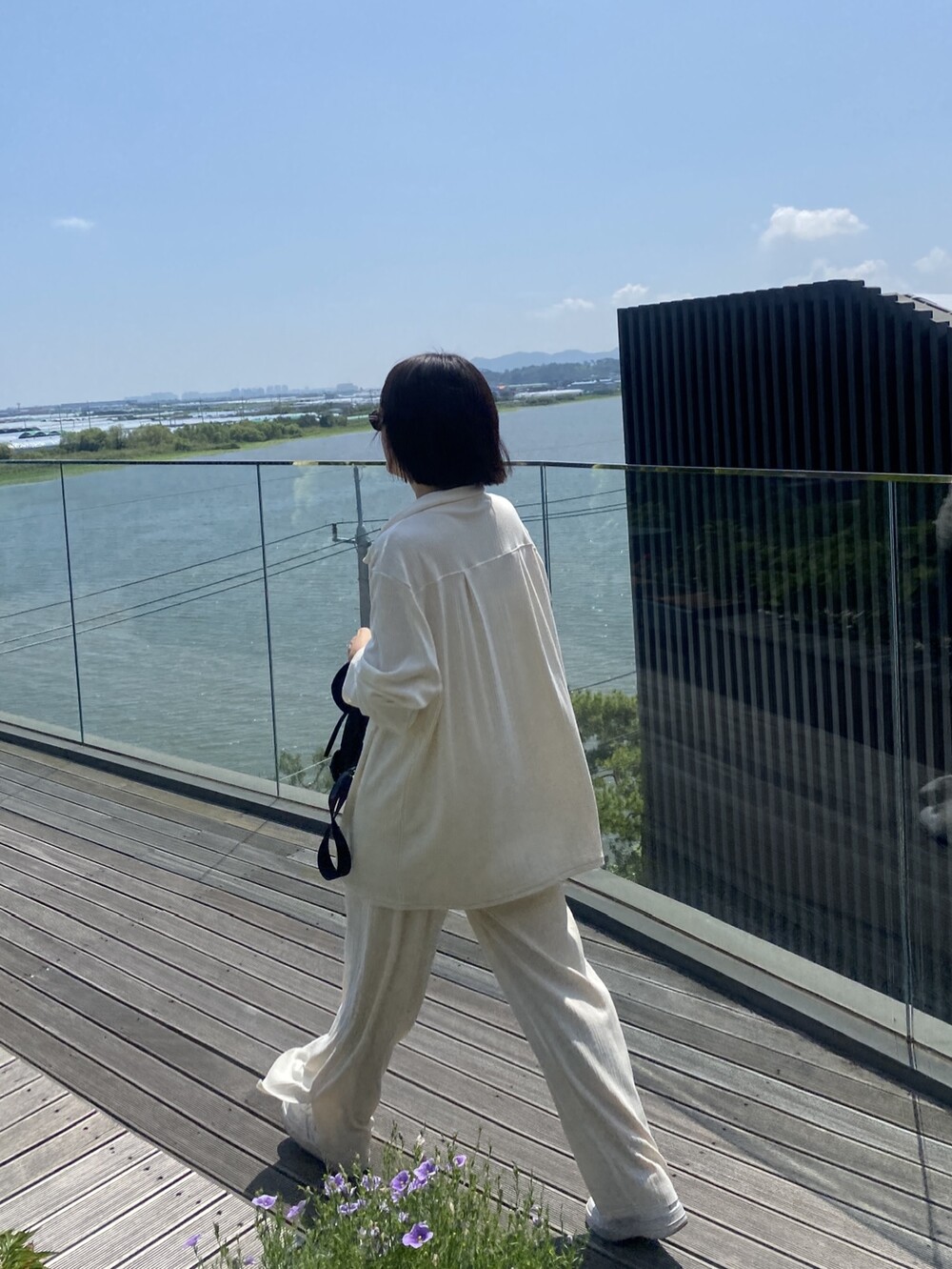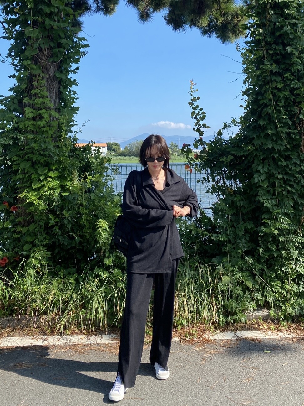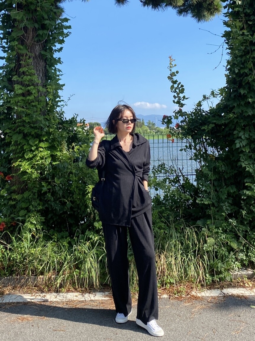 특징: 신축성 O , 비침 밝은컬러 약간, 안감 X, 두께감 보통, 무게감 보통