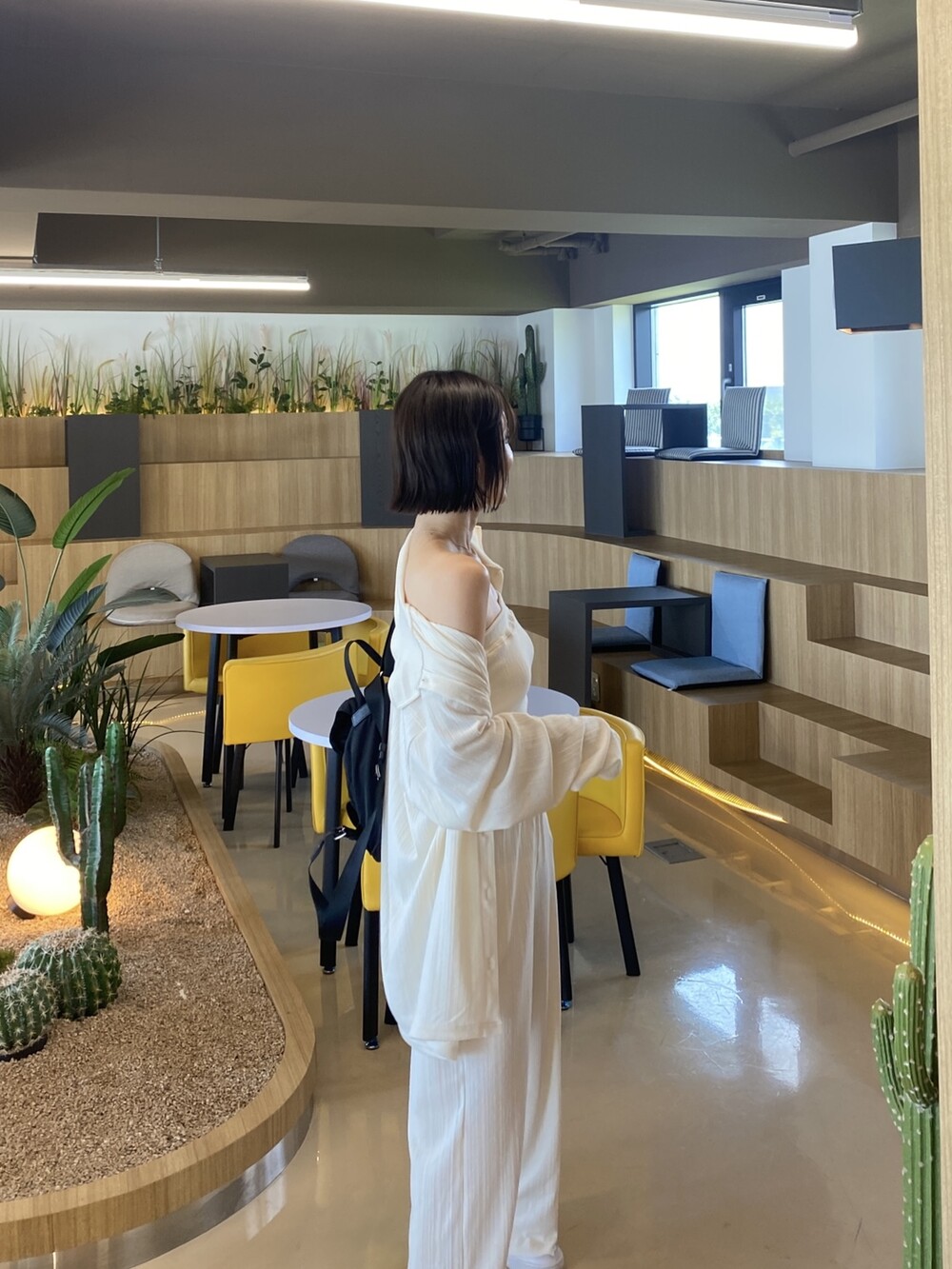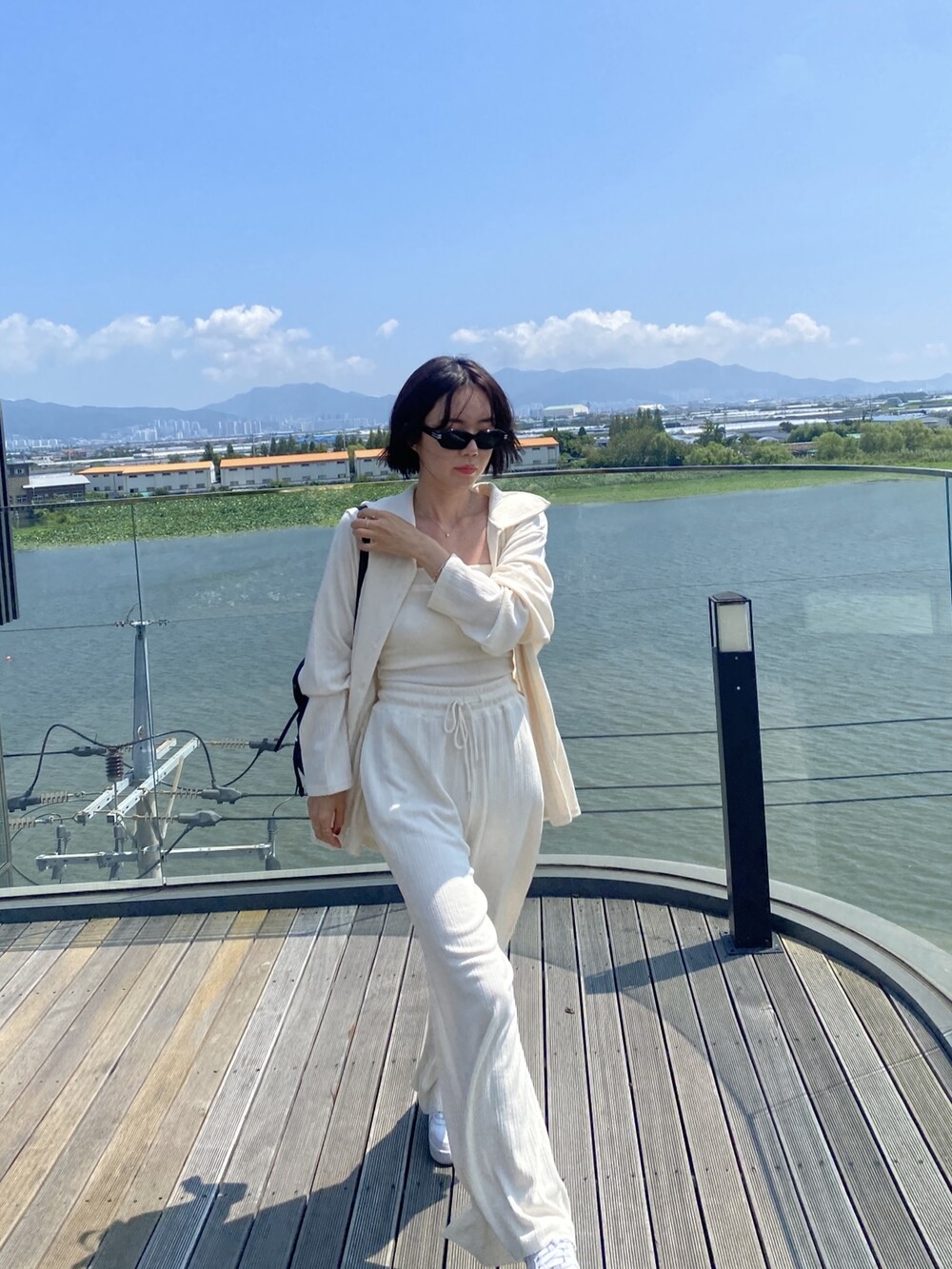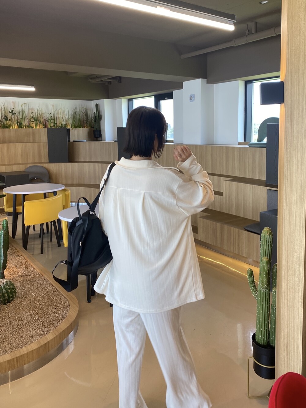 특징: 신축성 O , 비침 밝은컬러 약간, 안감 X, 두께감 보통, 무게감 보통