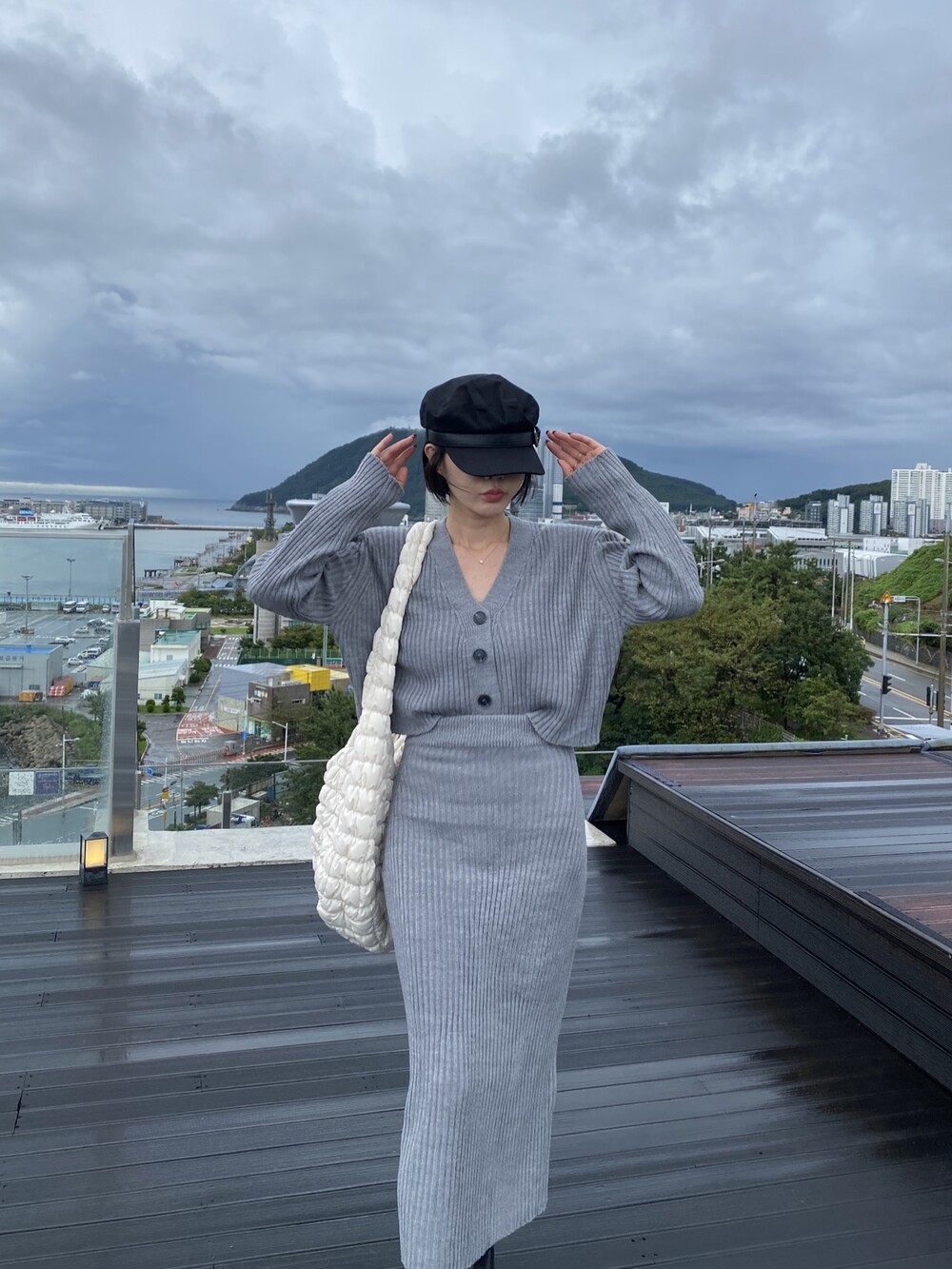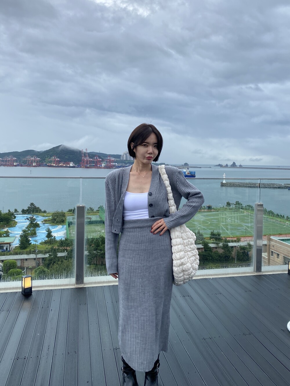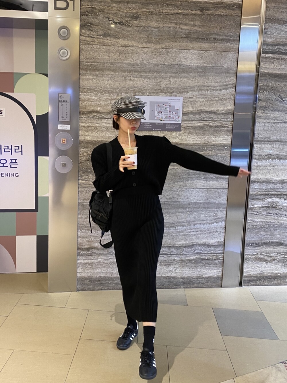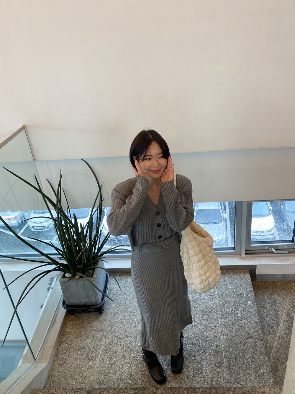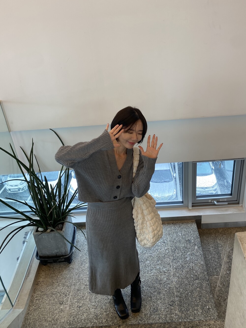 셋업으로 입을 수 있는 니트 골지 밴딩 스커트