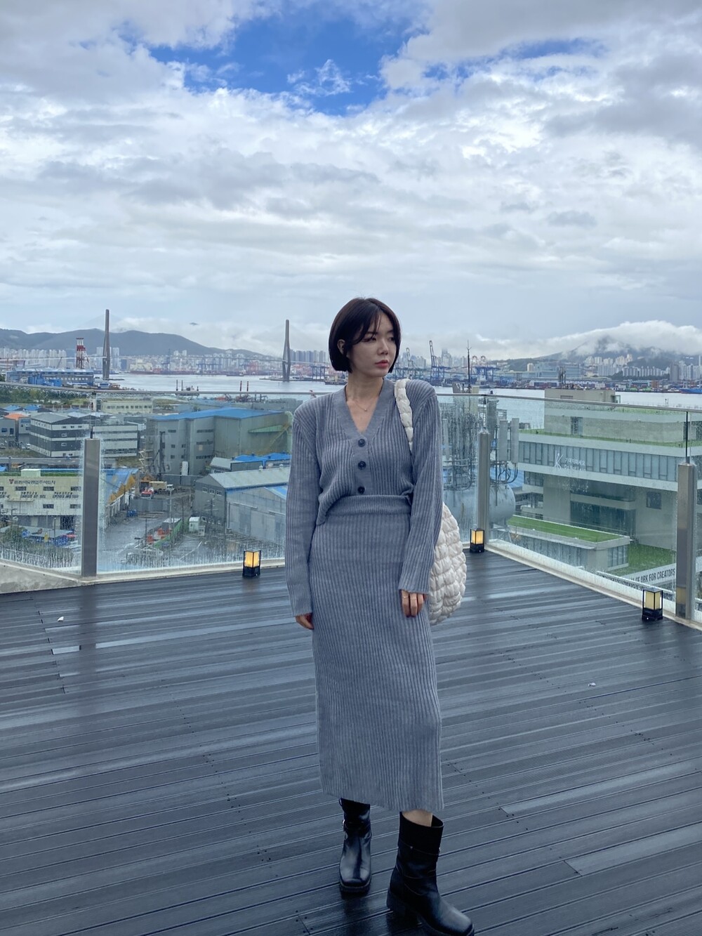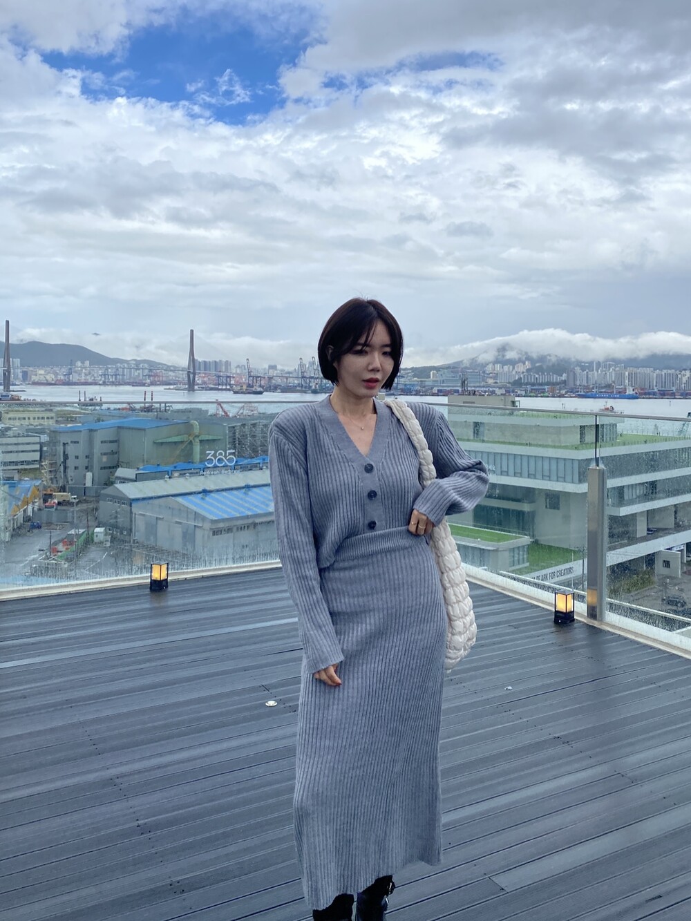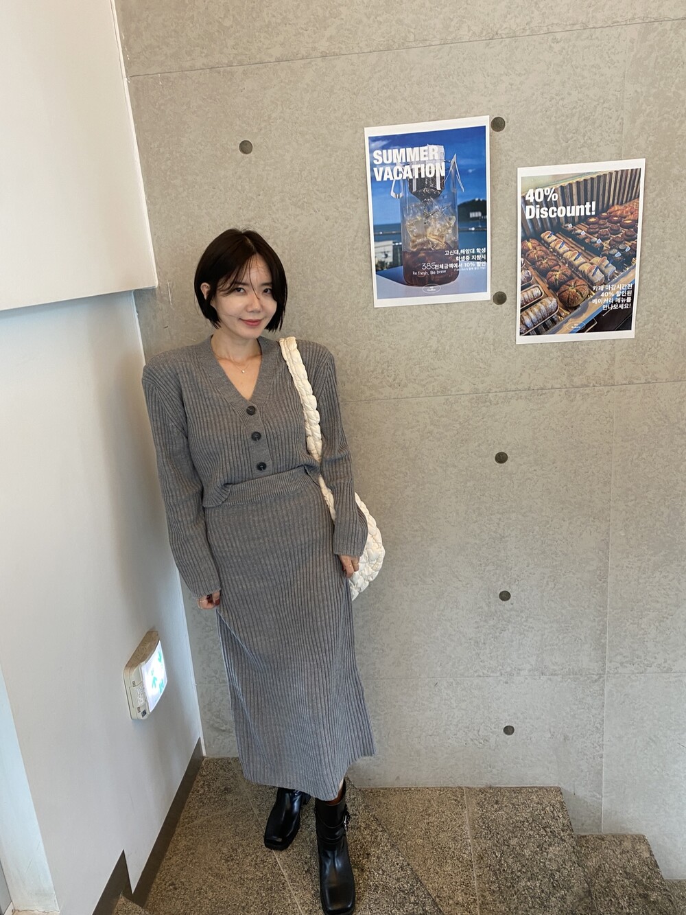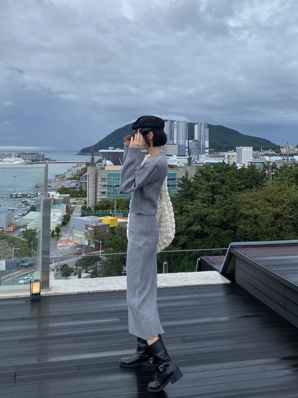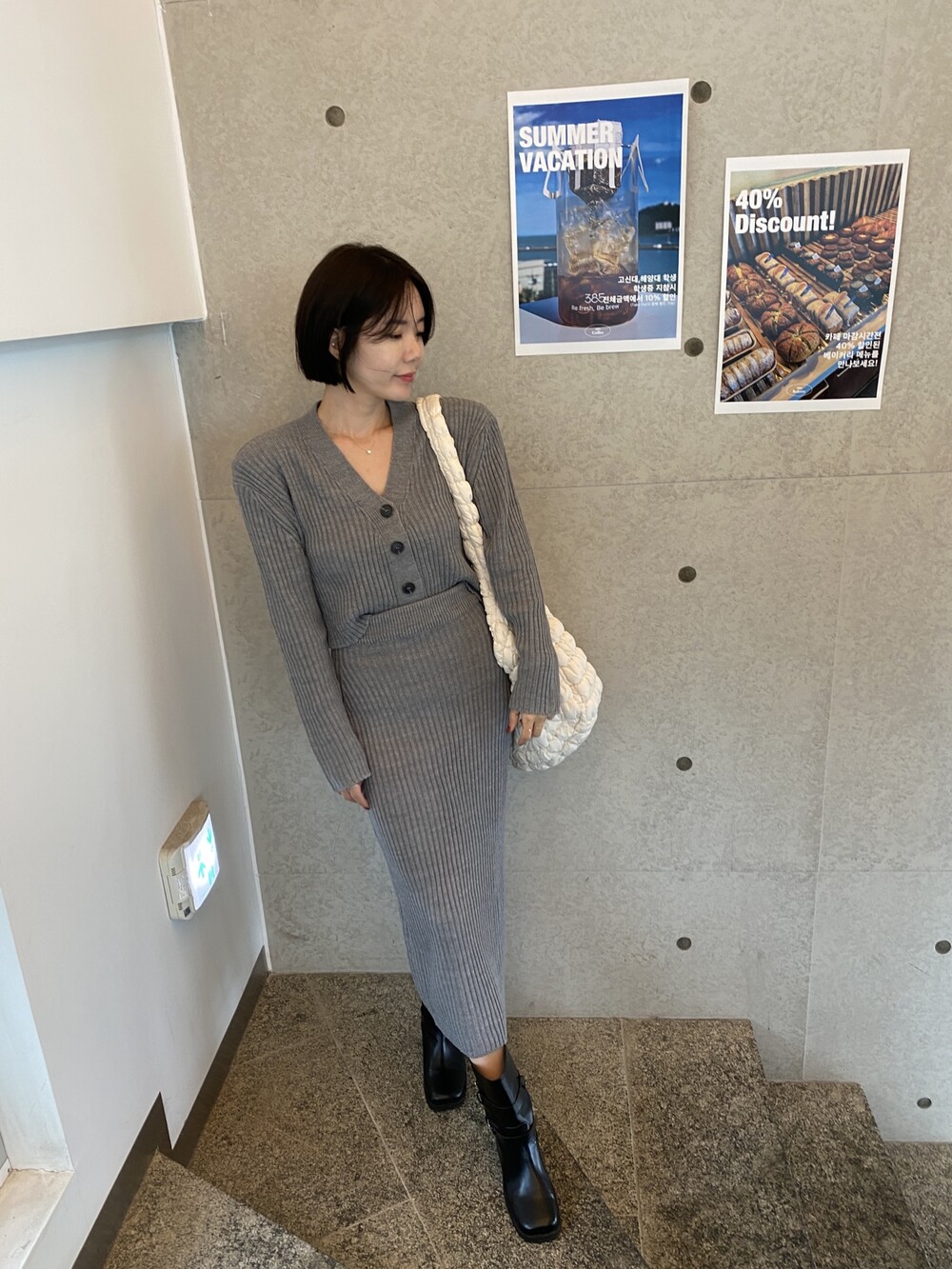 셋업으로 입을 수 있는 니트 골지 밴딩 스커트