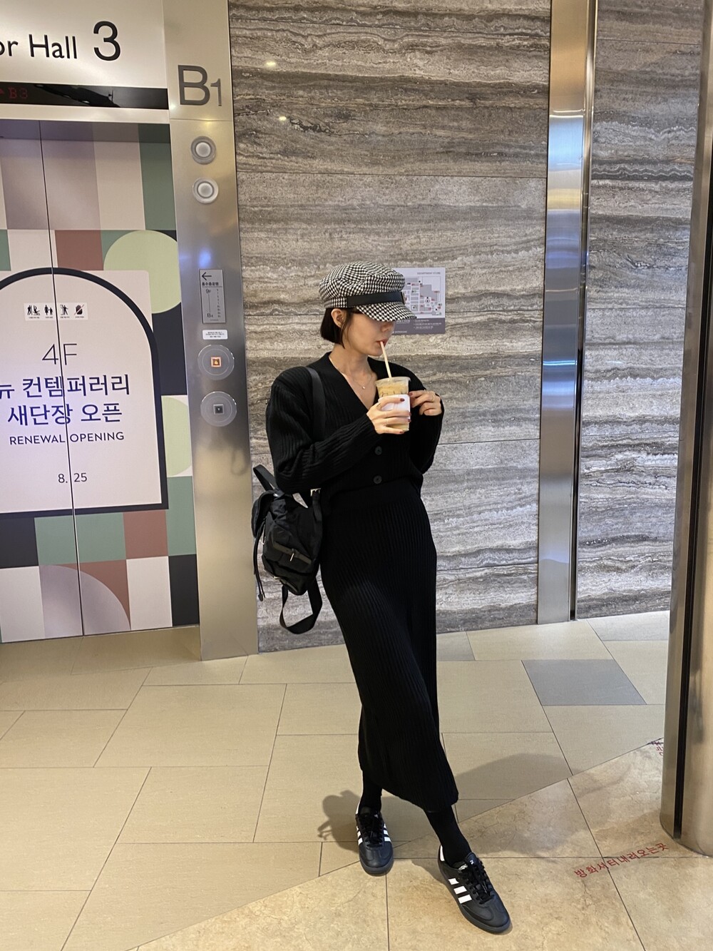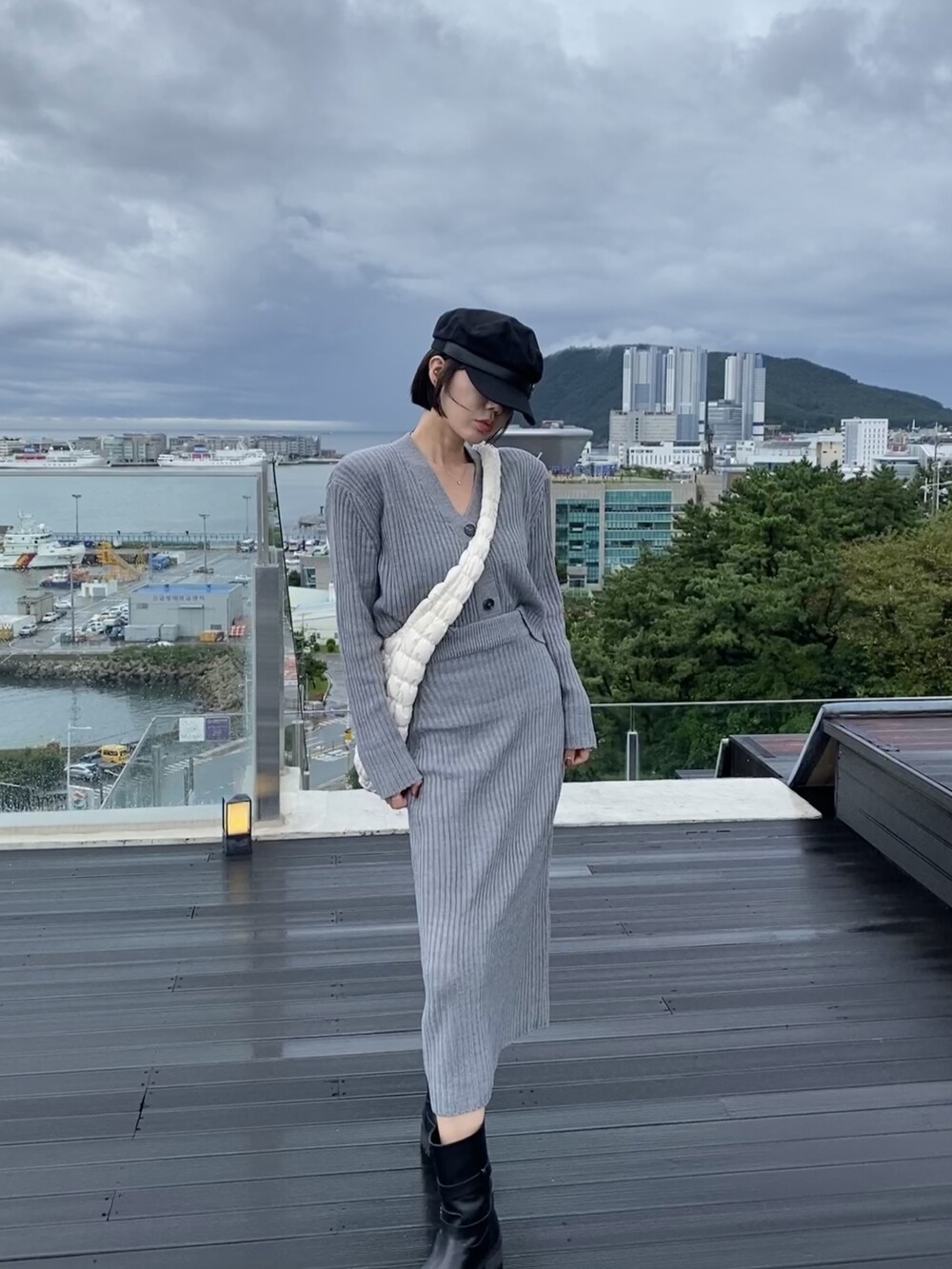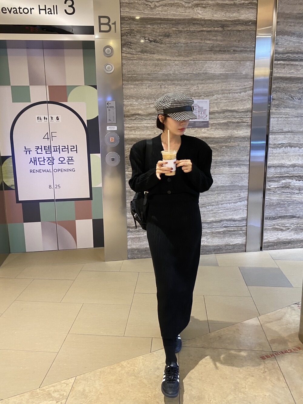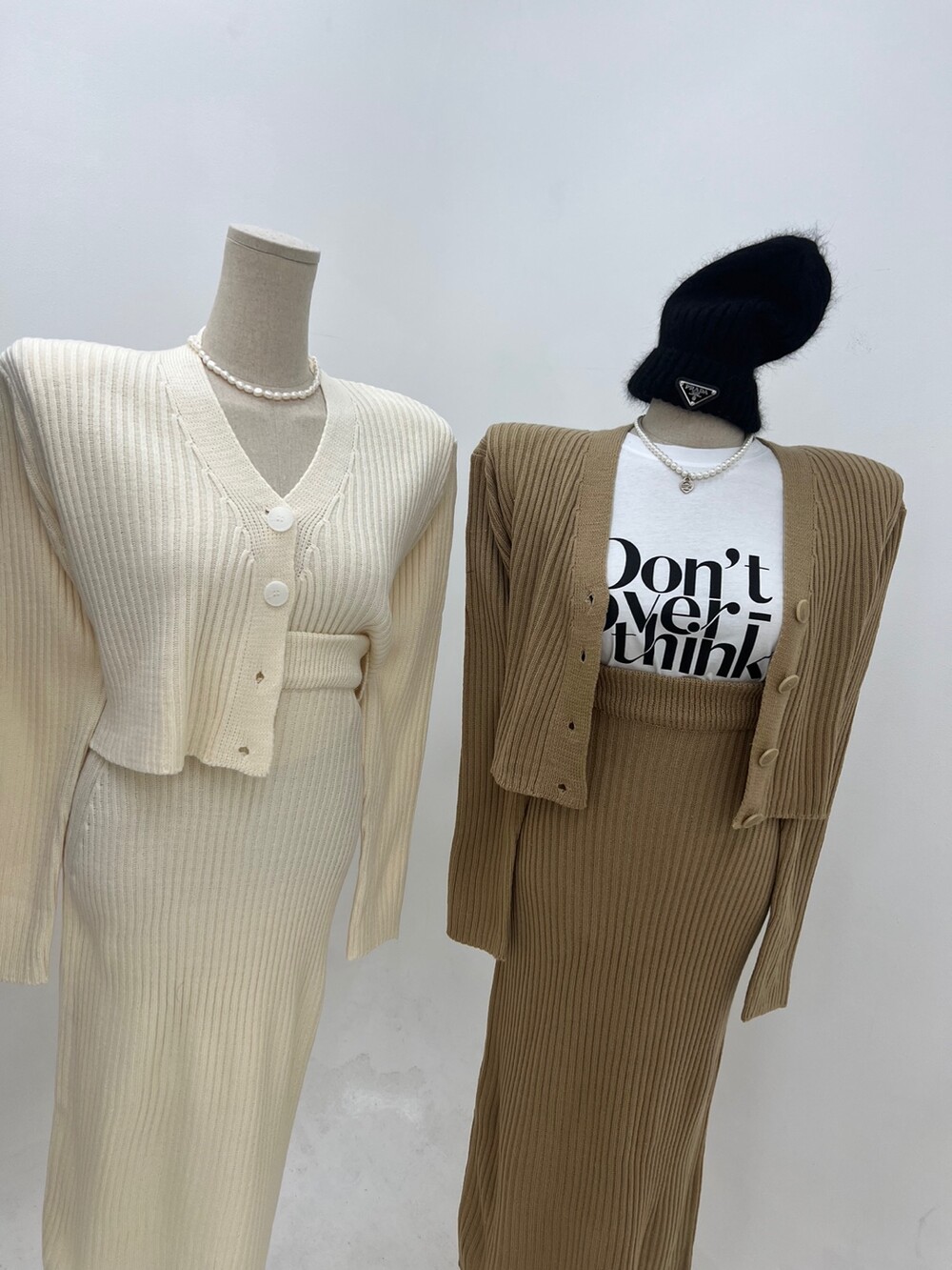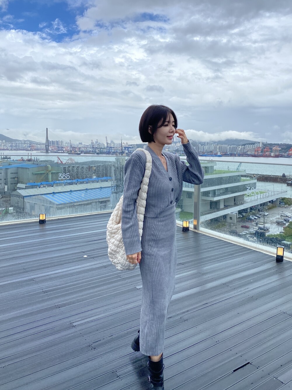 셋업으로 입을 수 있는 니트 골지 밴딩 스커트
