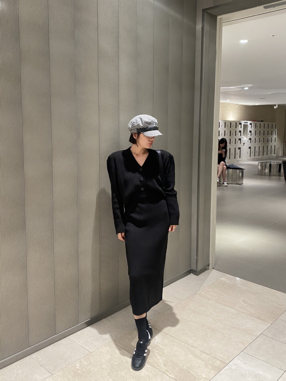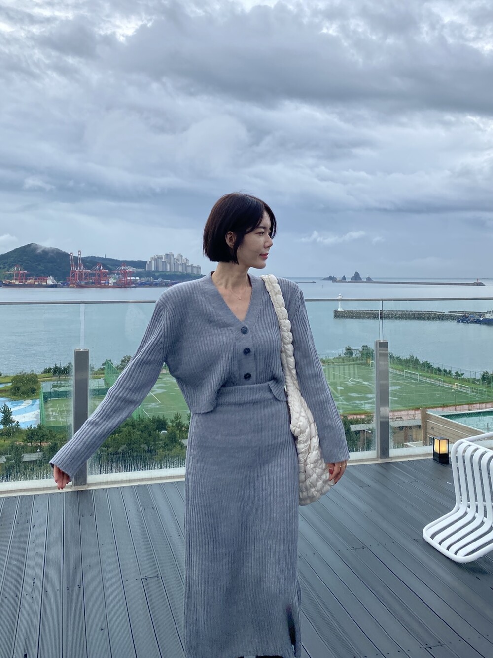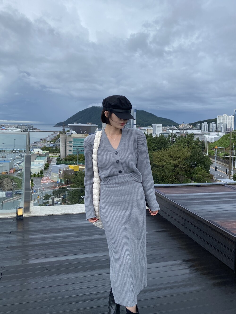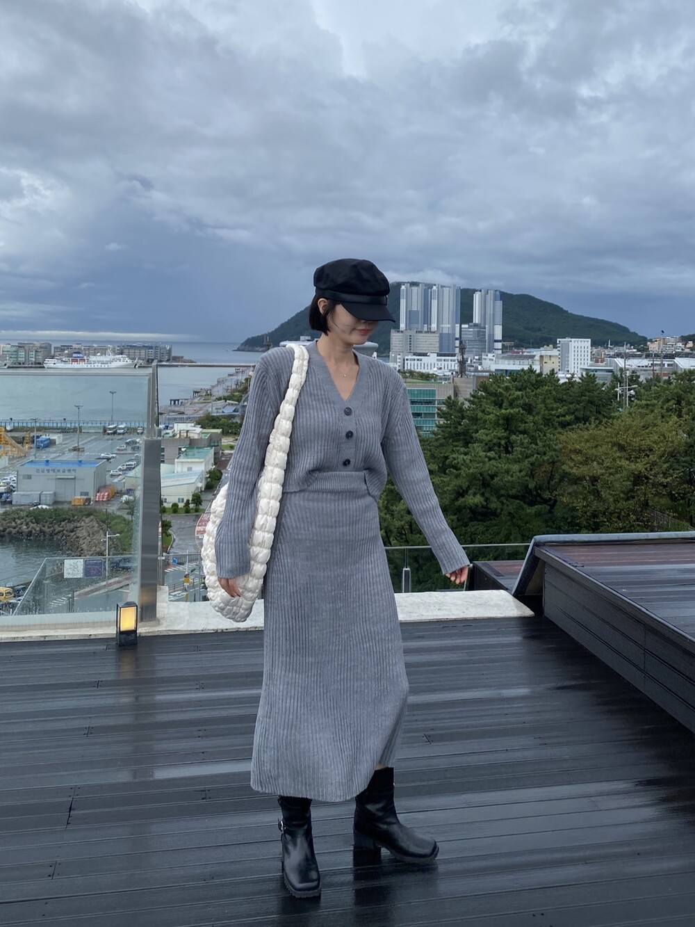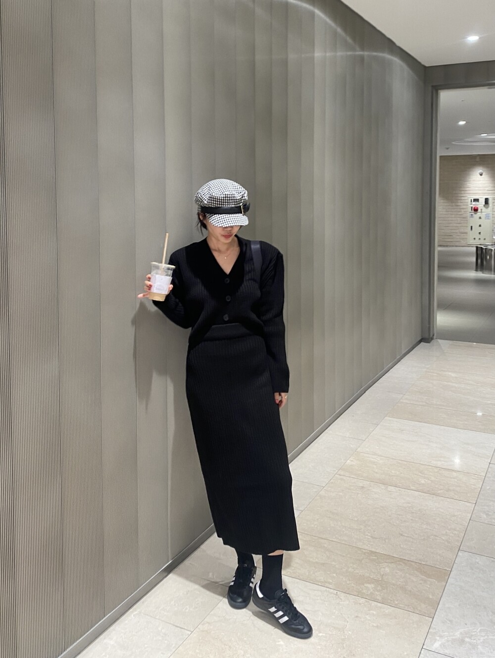 셋업으로 입을 수 있는 니트 골지 밴딩 스커트