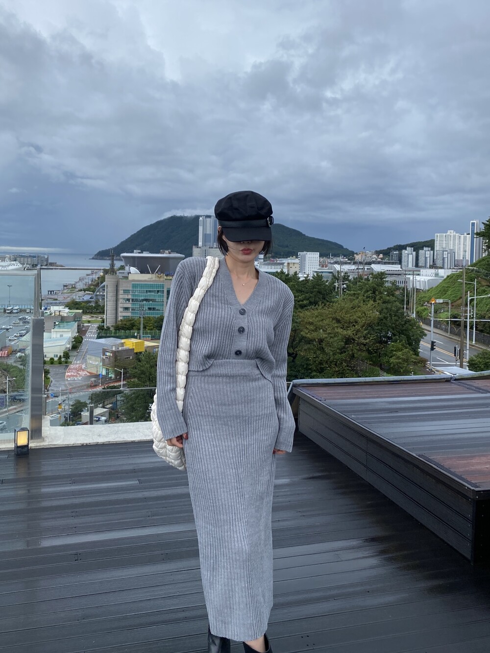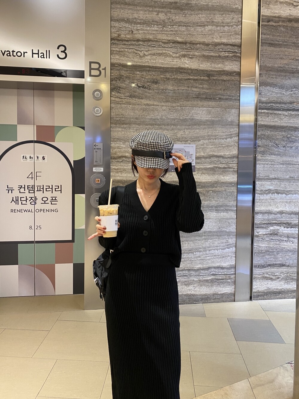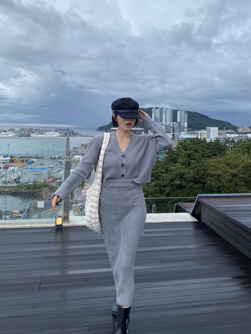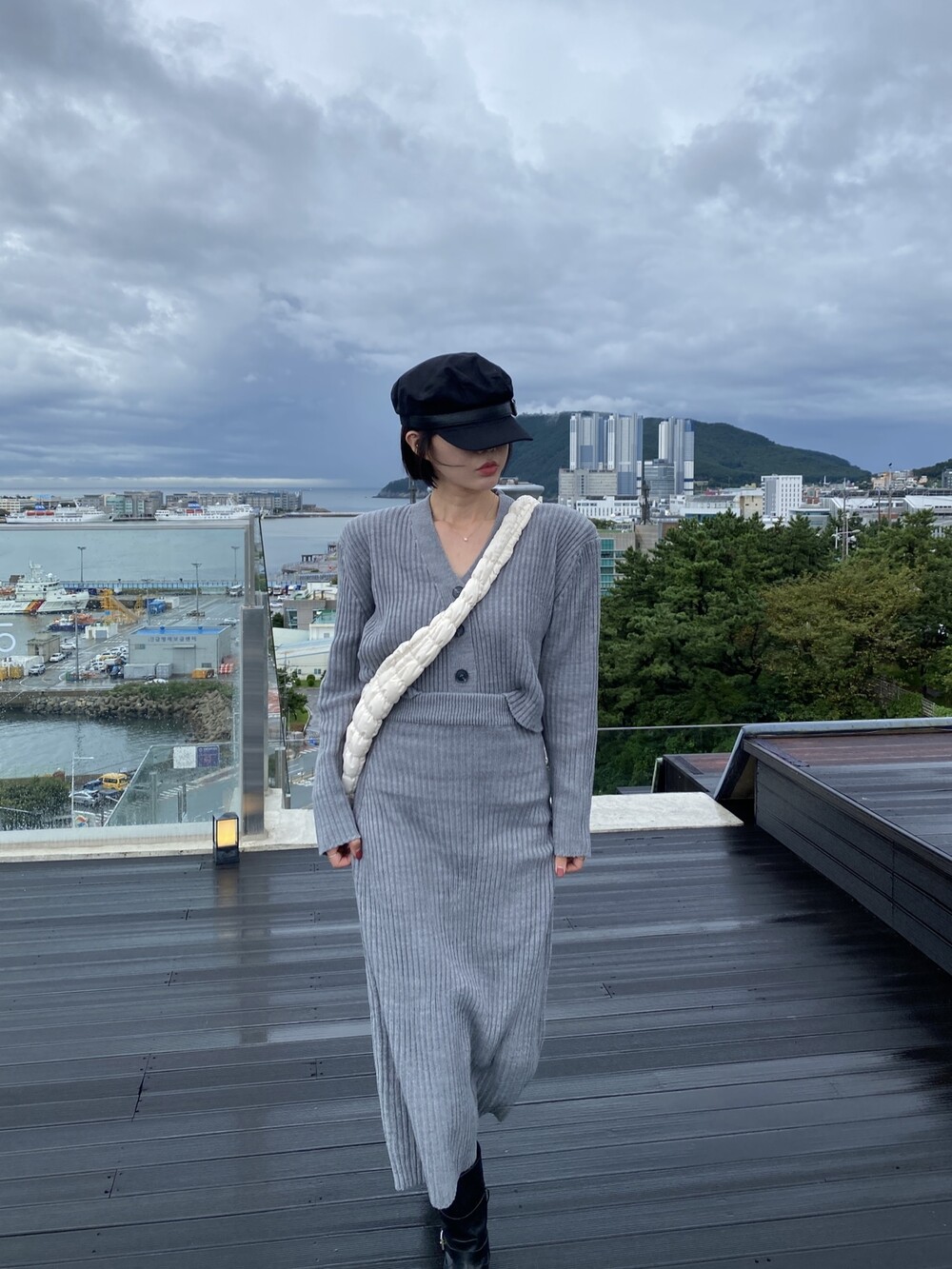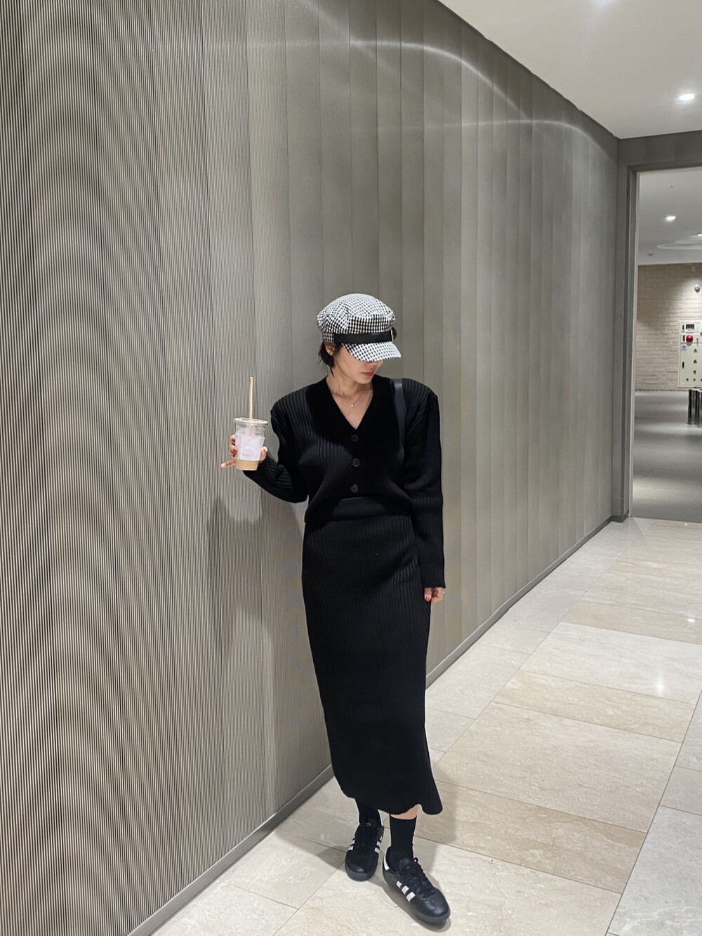셋업으로 입을 수 있는 니트 골지 밴딩 스커트