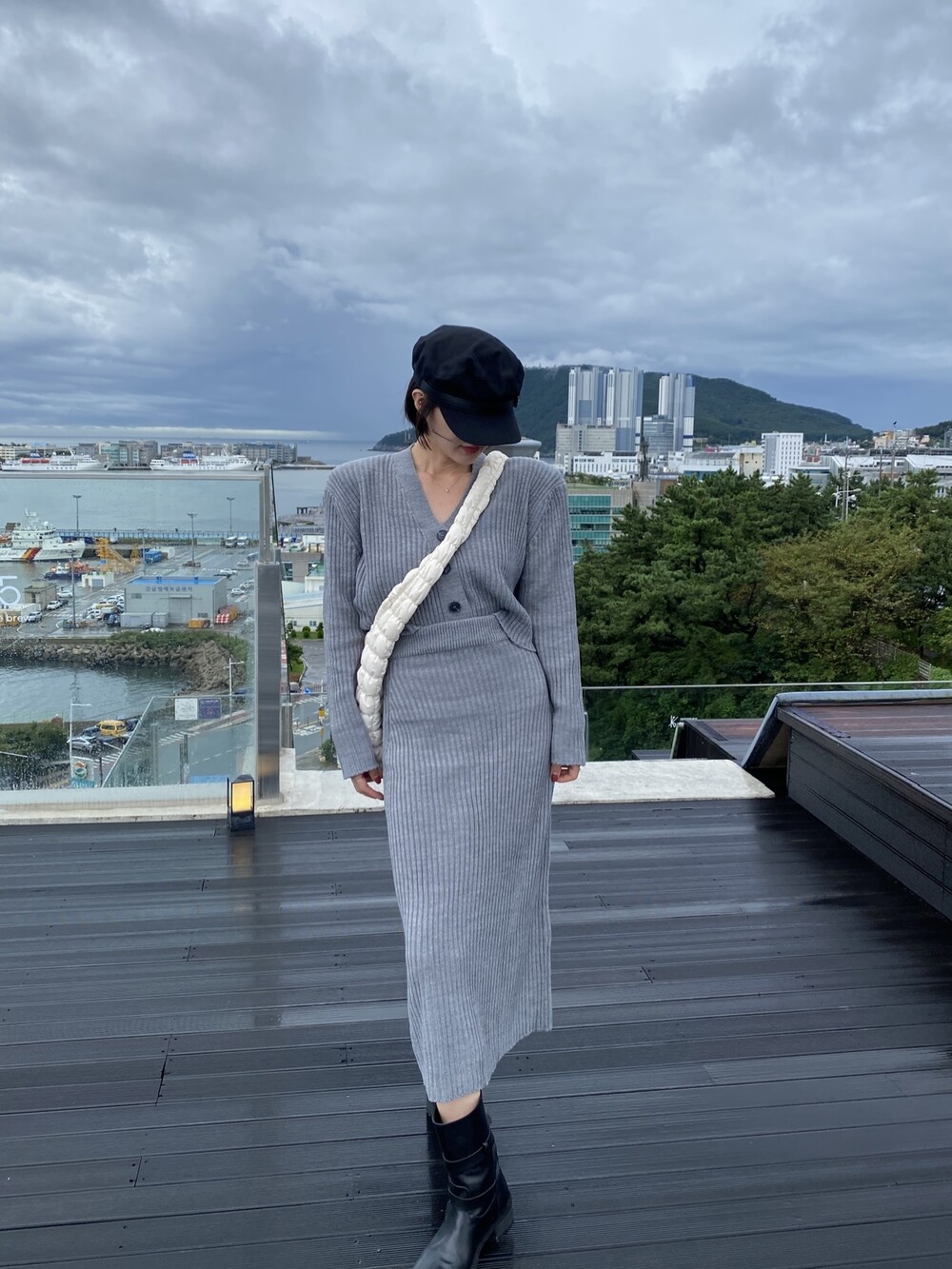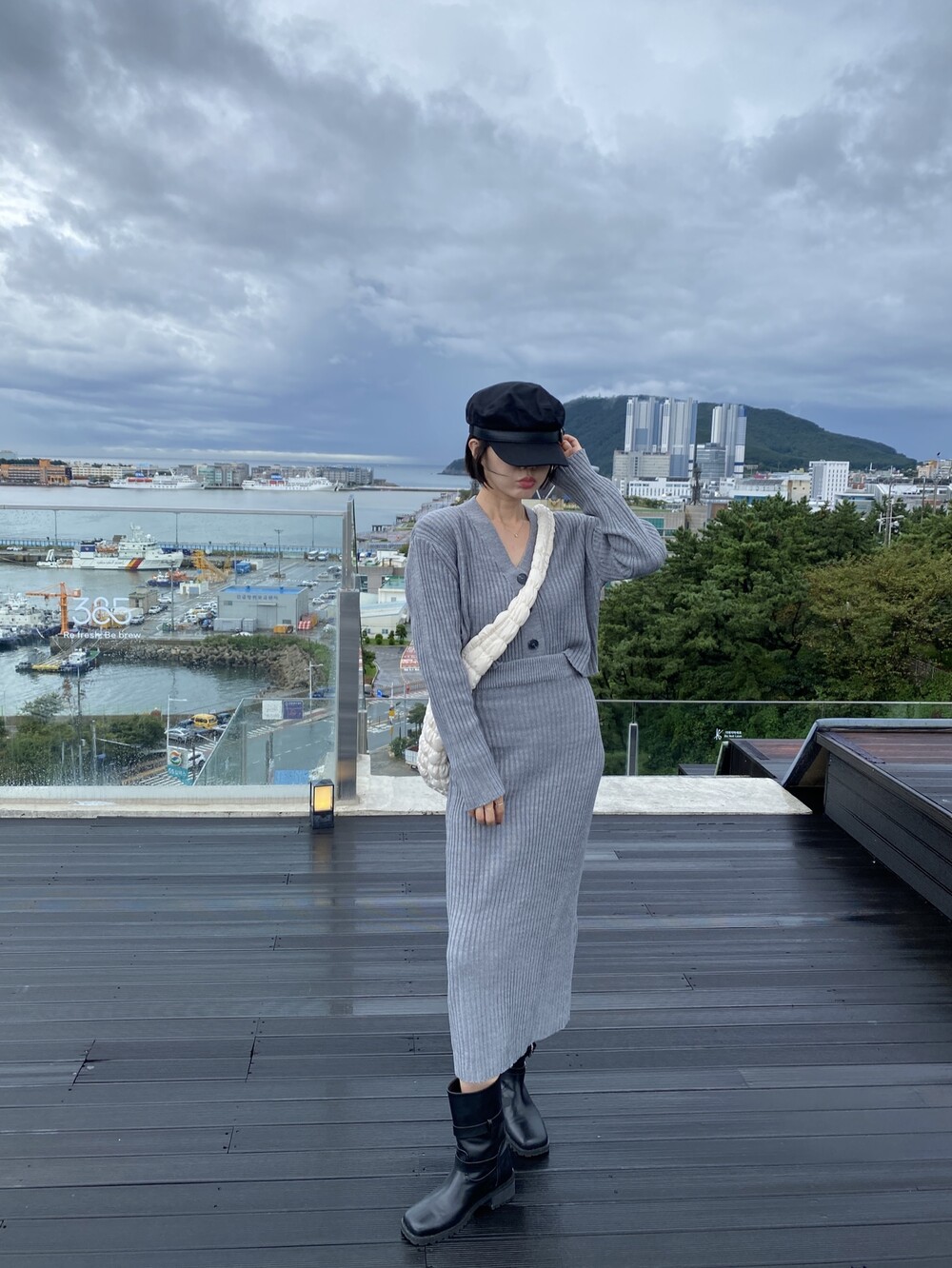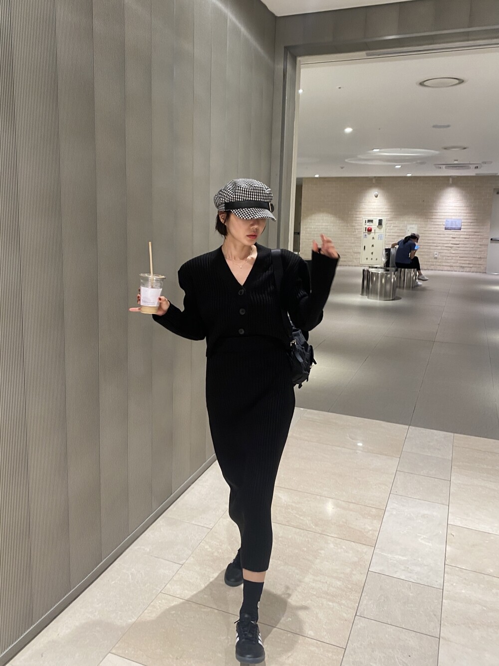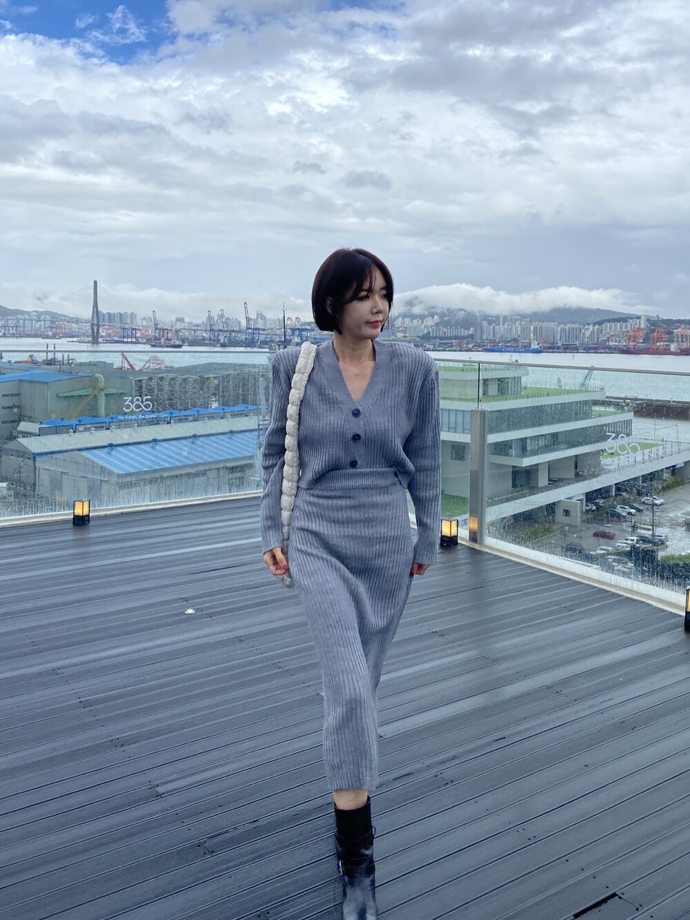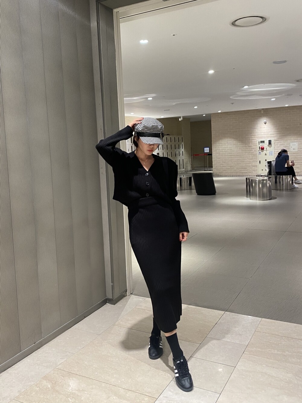 셋업으로 입을 수 있는 니트 골지 밴딩 스커트