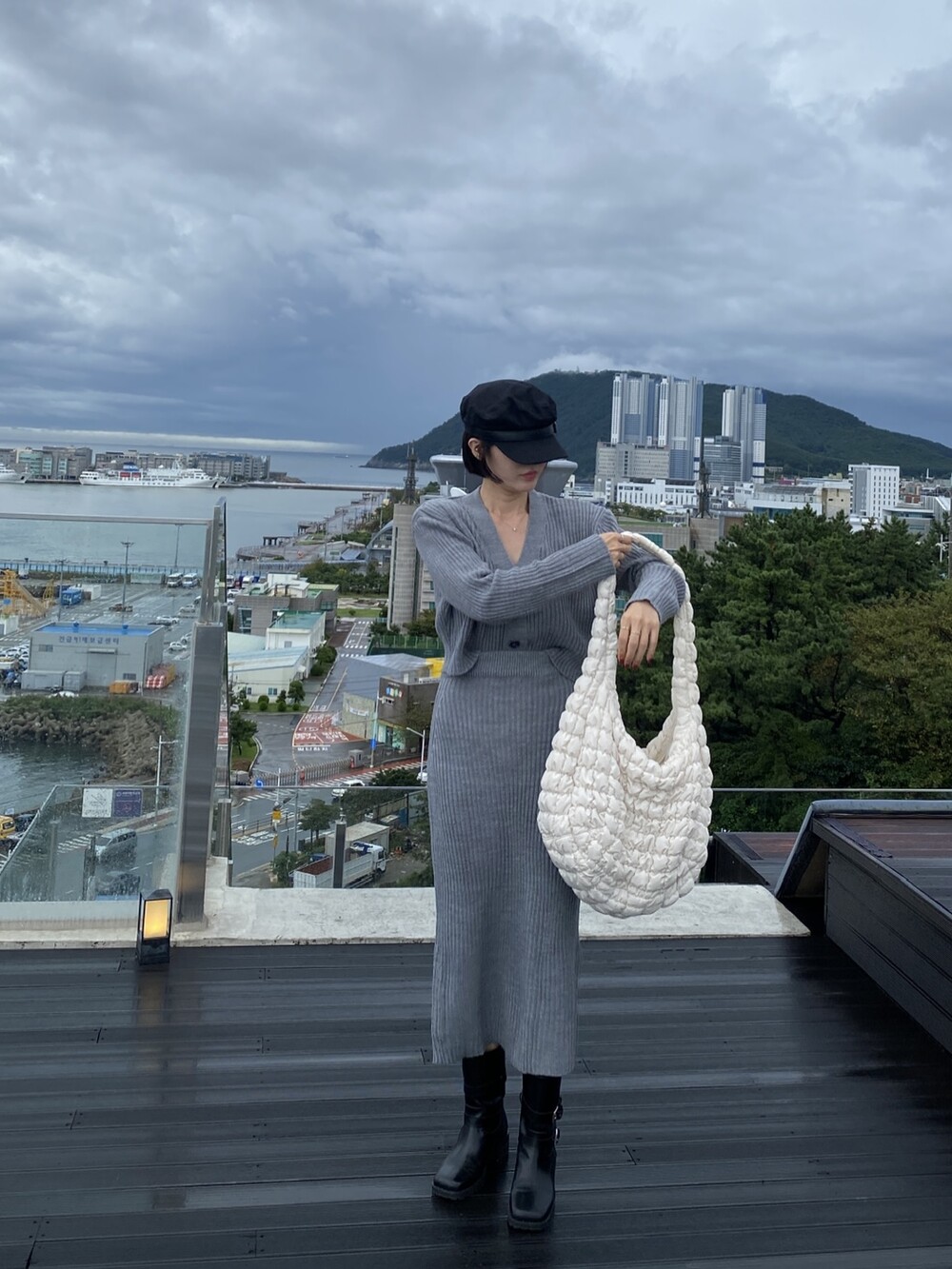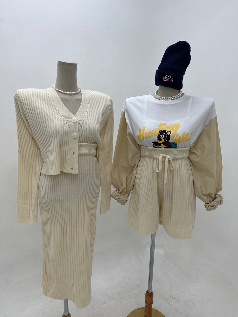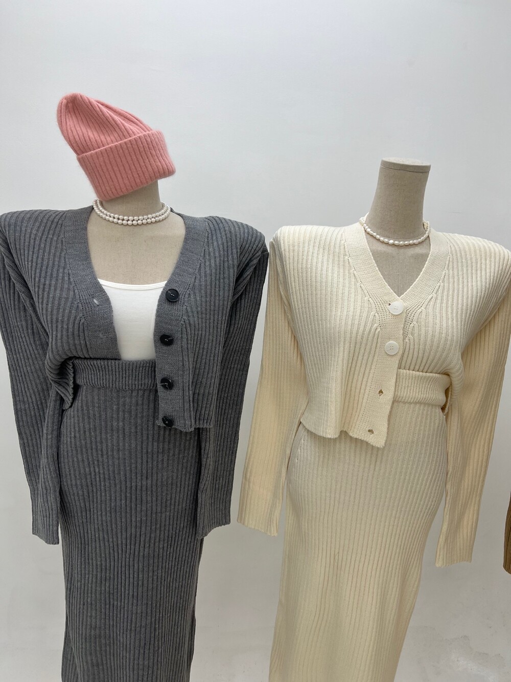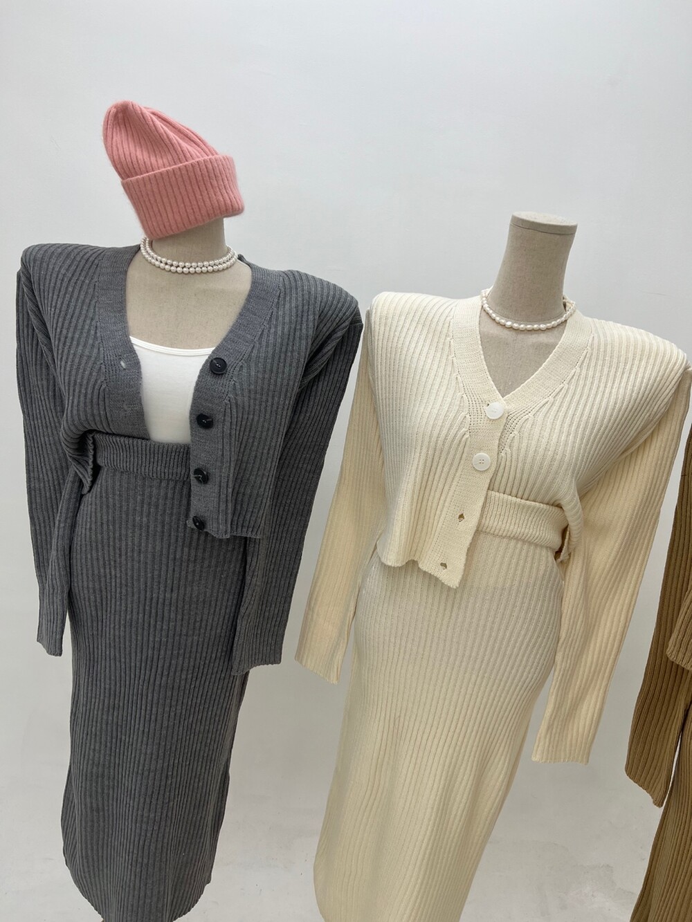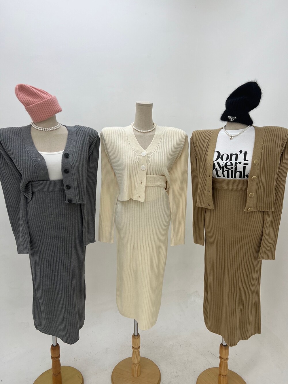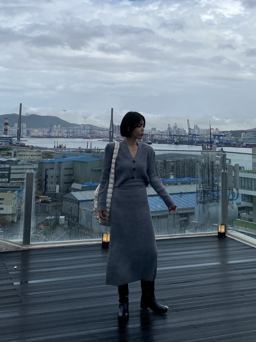 셋업으로 입을 수 있는 니트 골지 밴딩 스커트