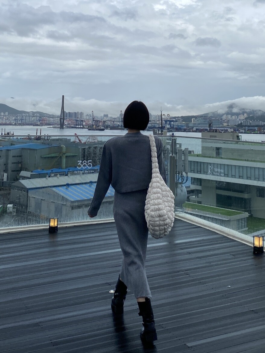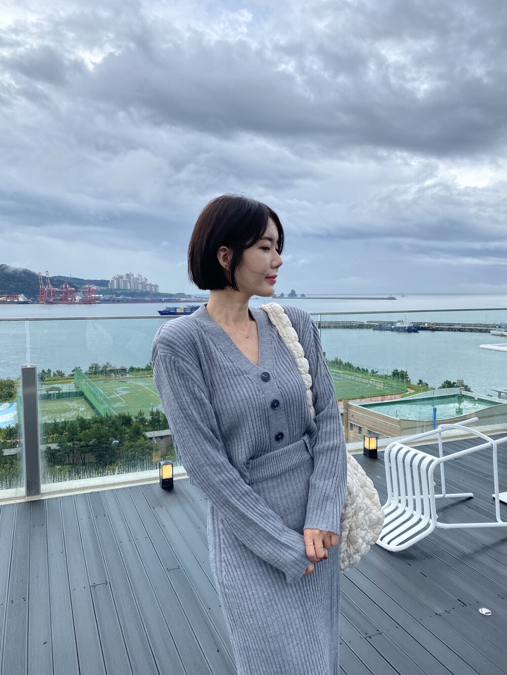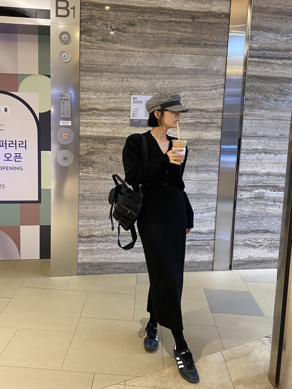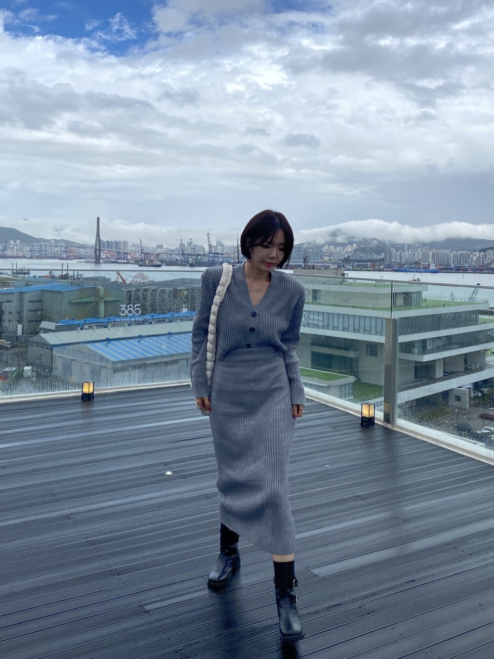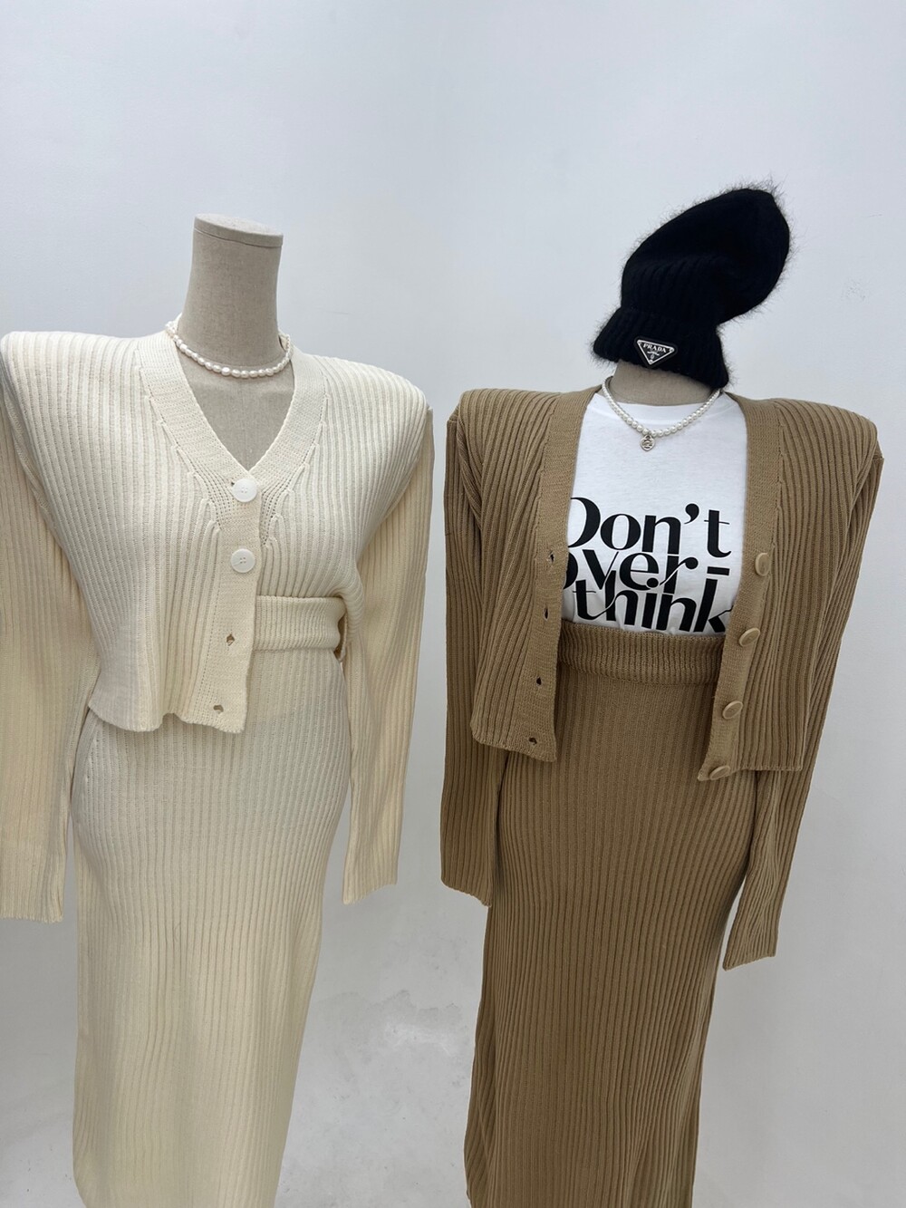 셋업으로 입을 수 있는 니트 골지 밴딩 스커트