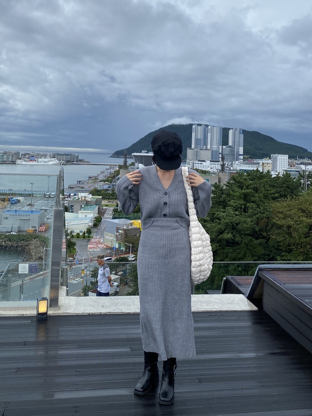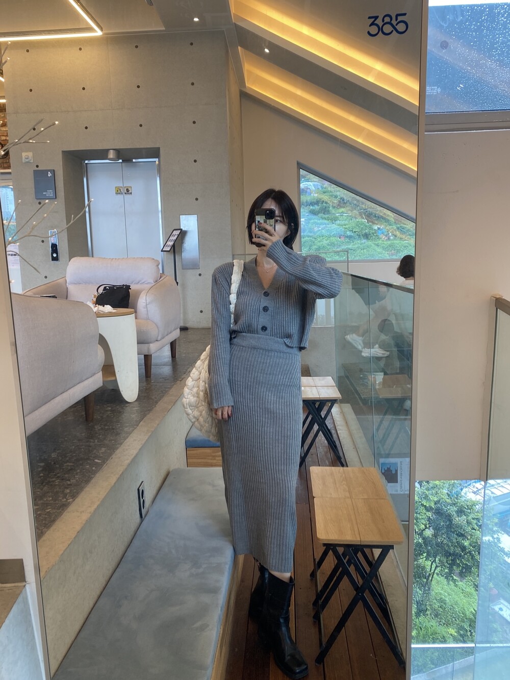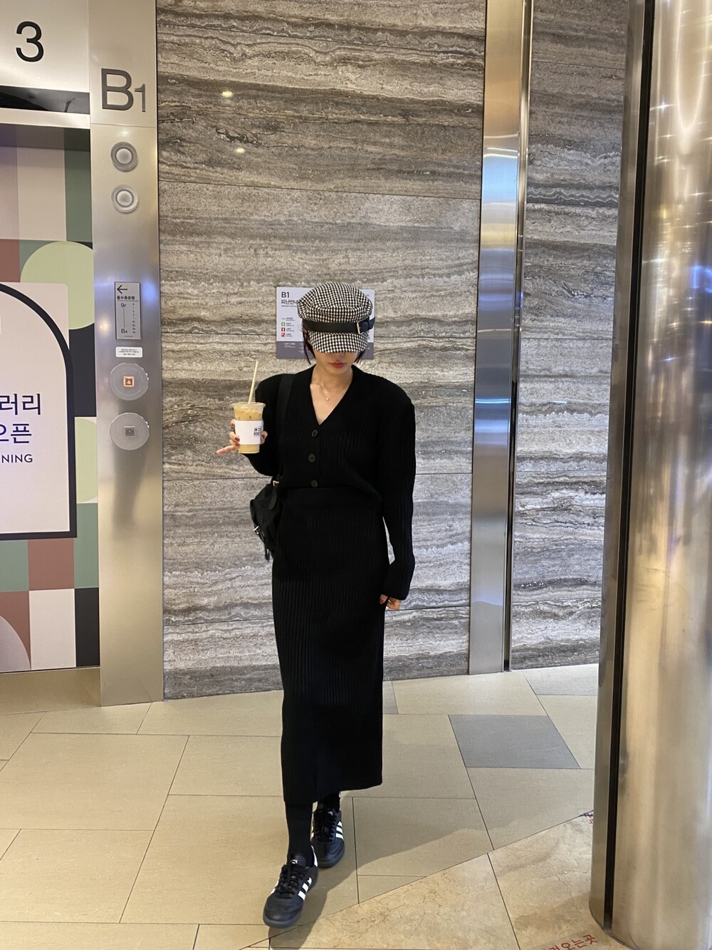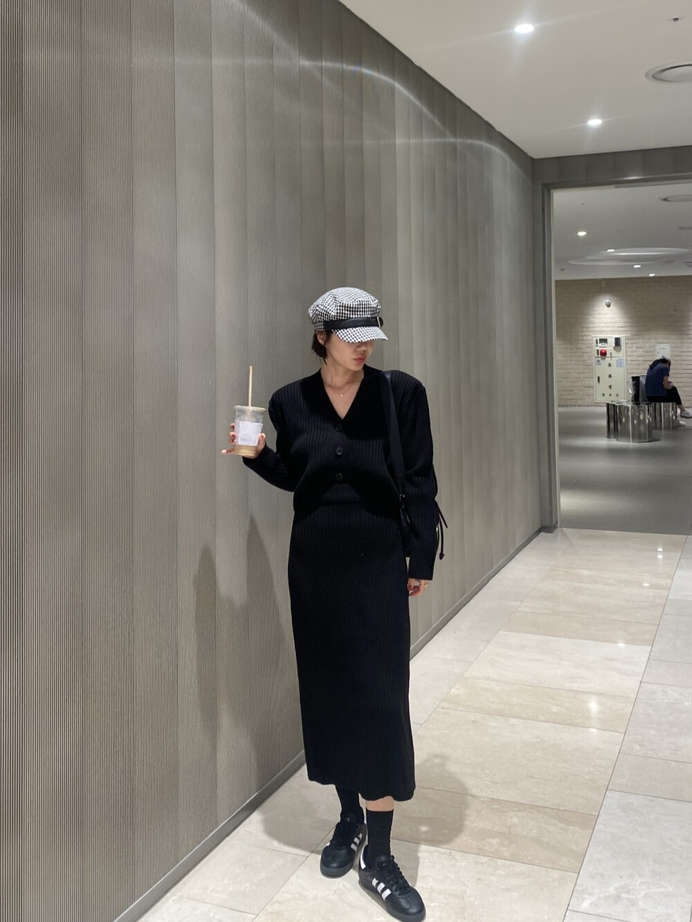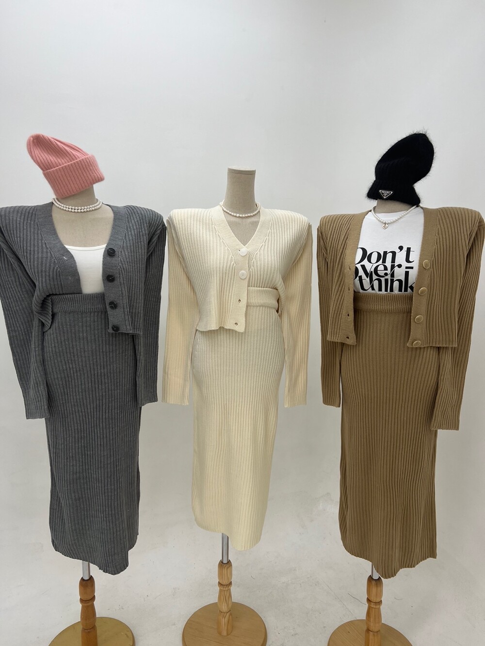 셋업으로 입을 수 있는 니트 골지 밴딩 스커트