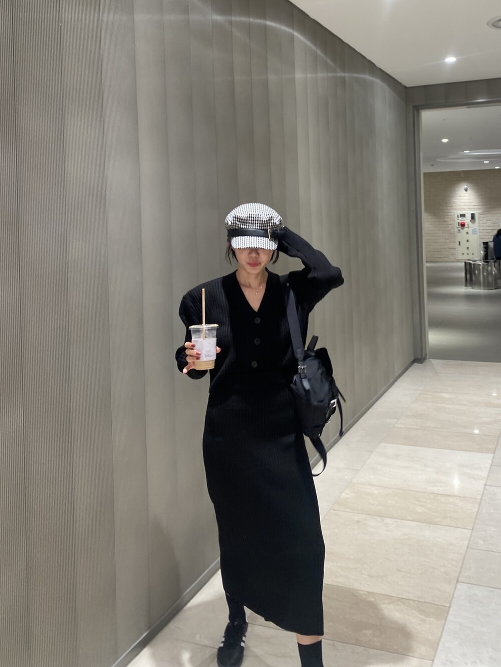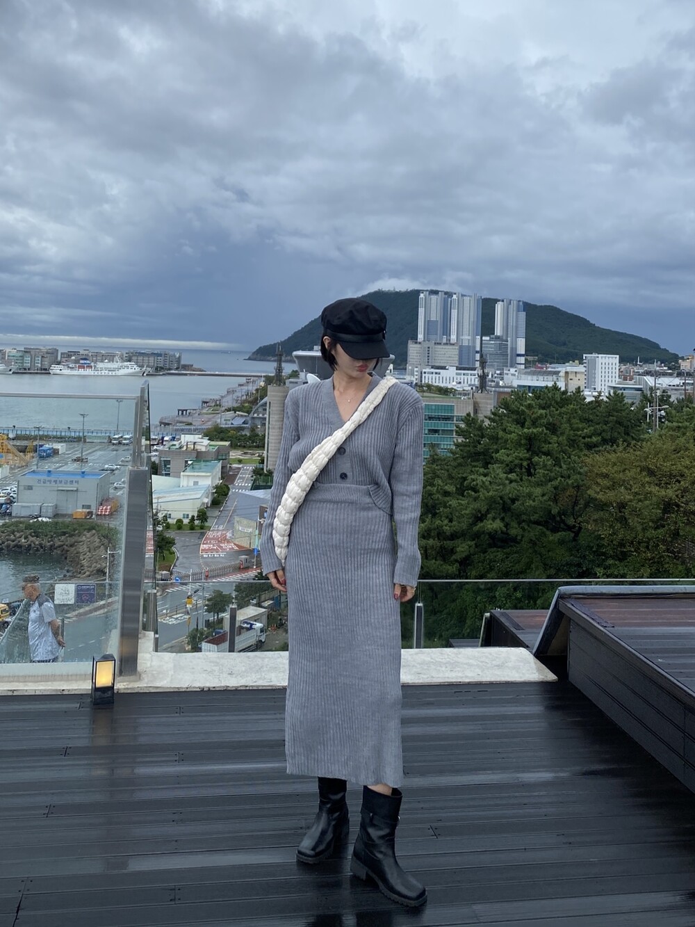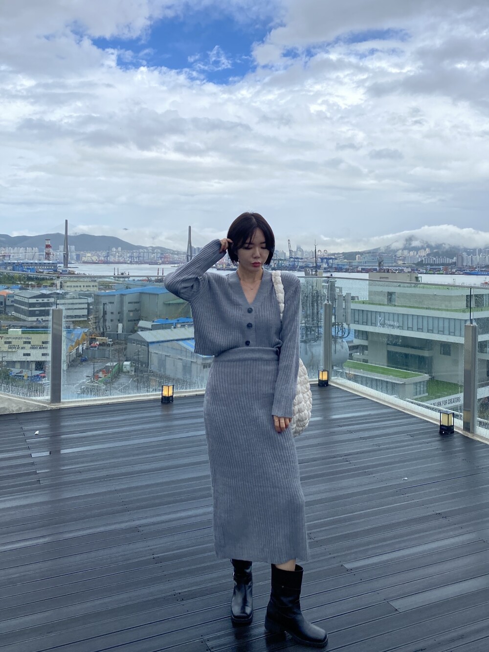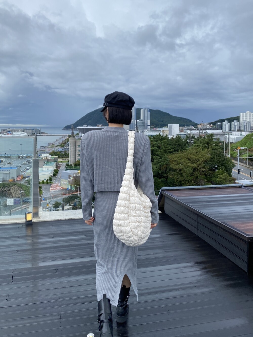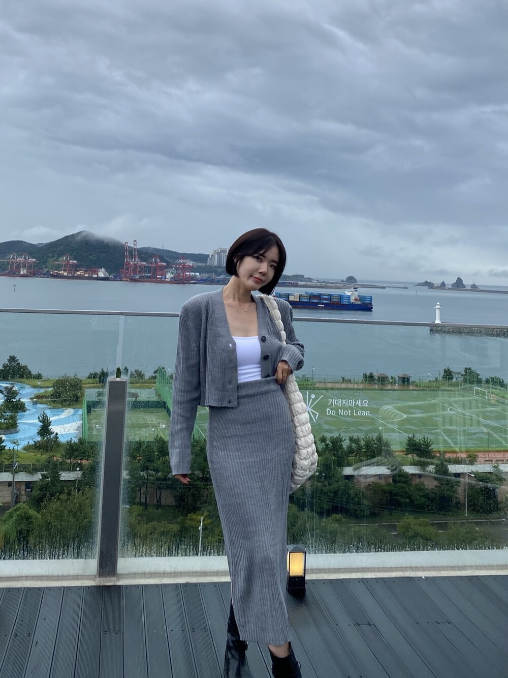 셋업으로 입을 수 있는 니트 골지 밴딩 스커트