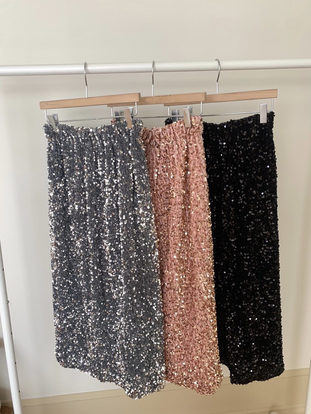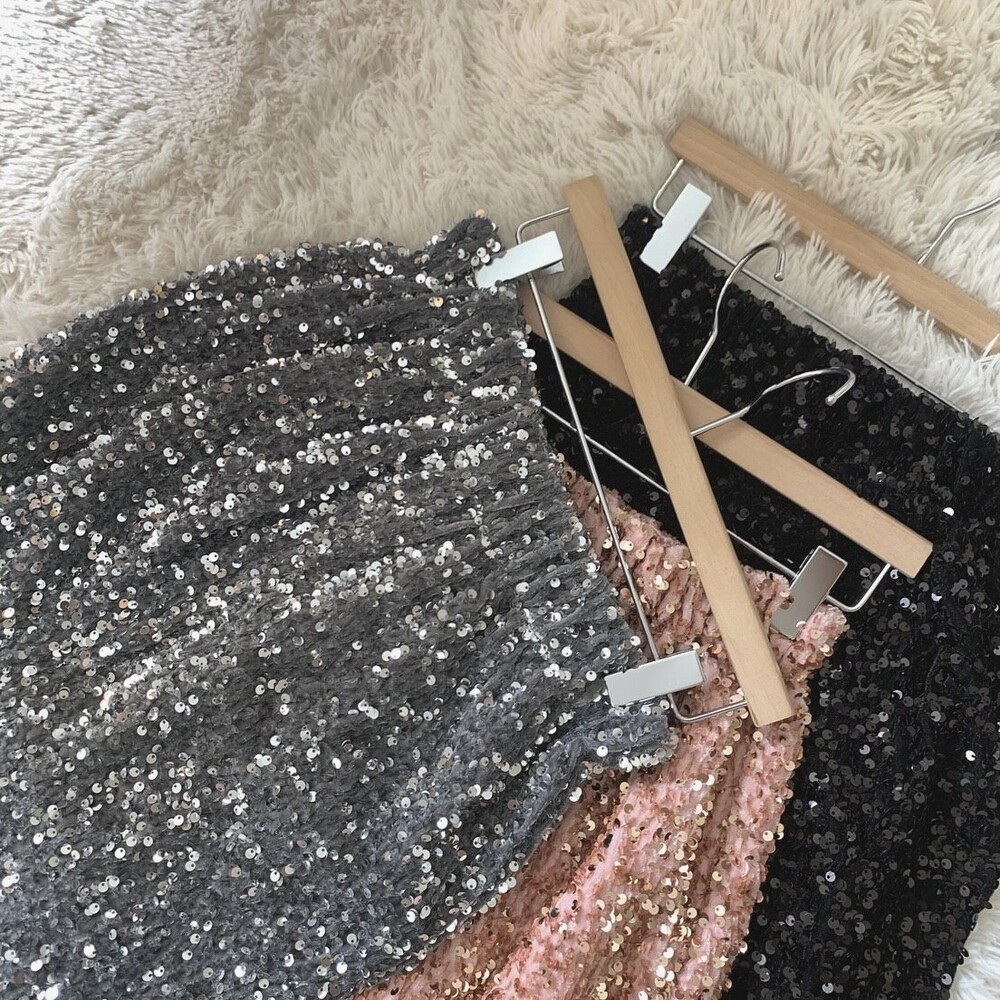 스팽글 밴딩 미디 스커트 3col