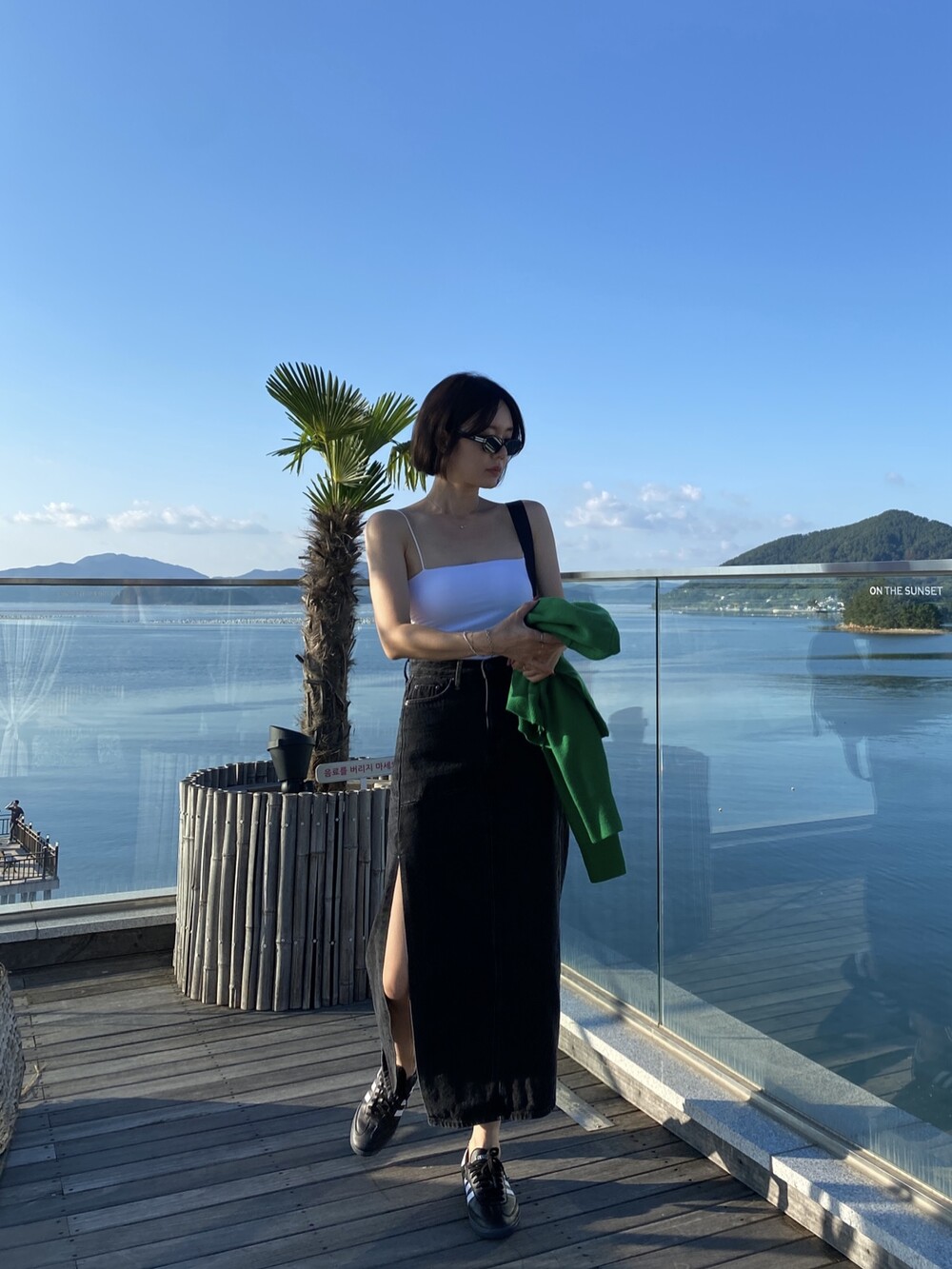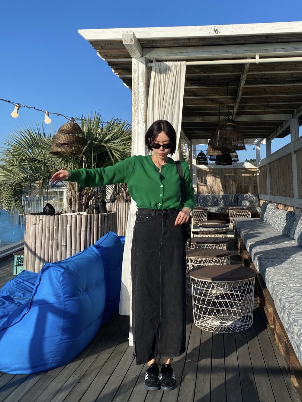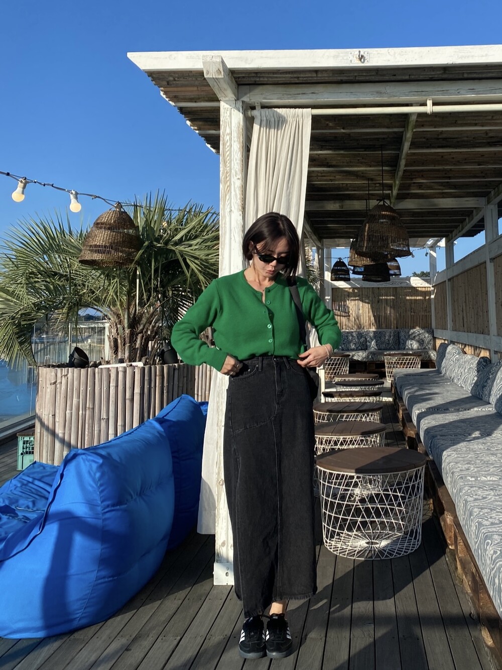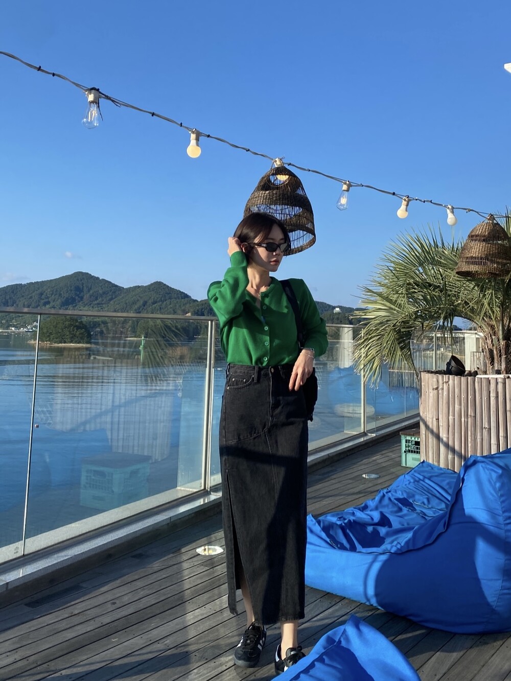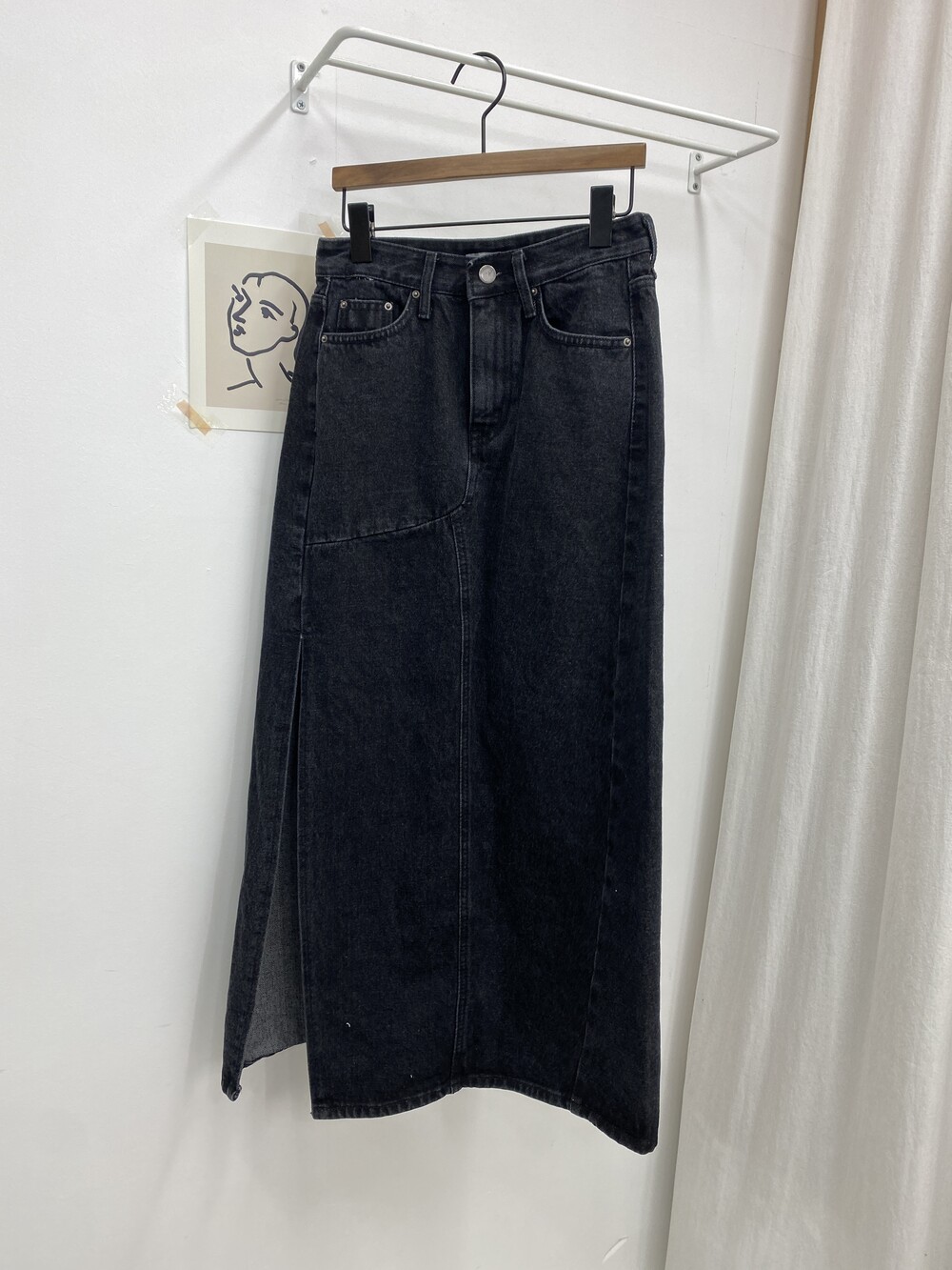 멋스럽게 떨어지는 흑청 롱스커트예요