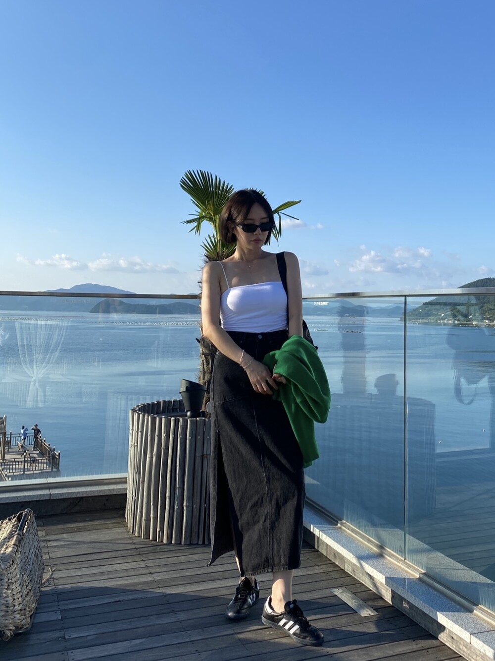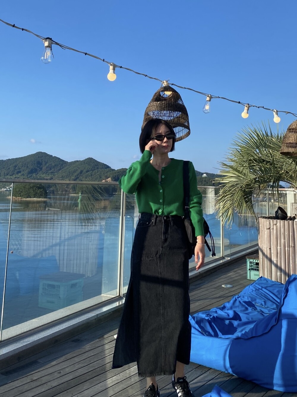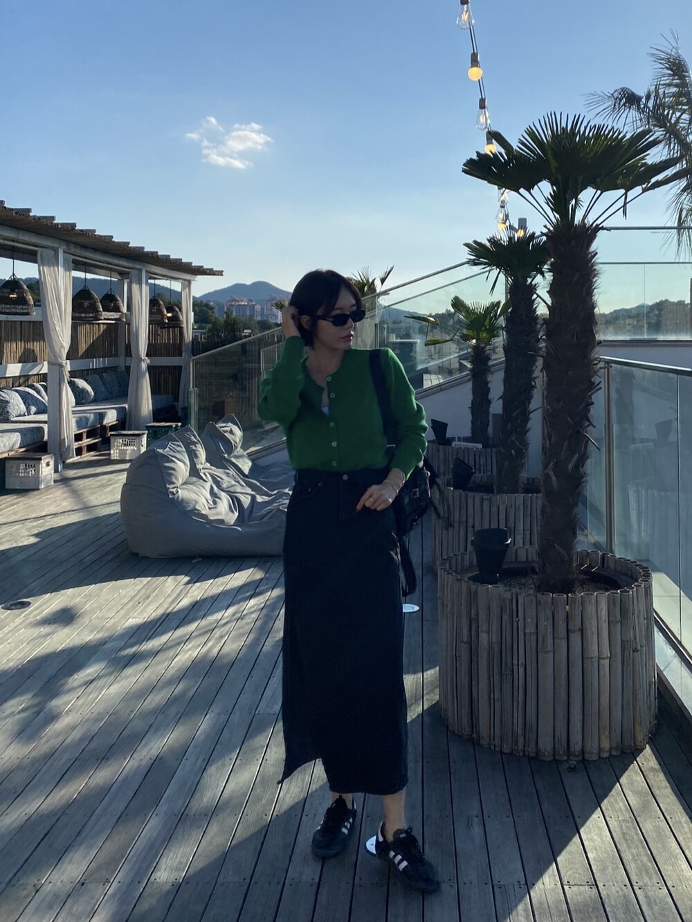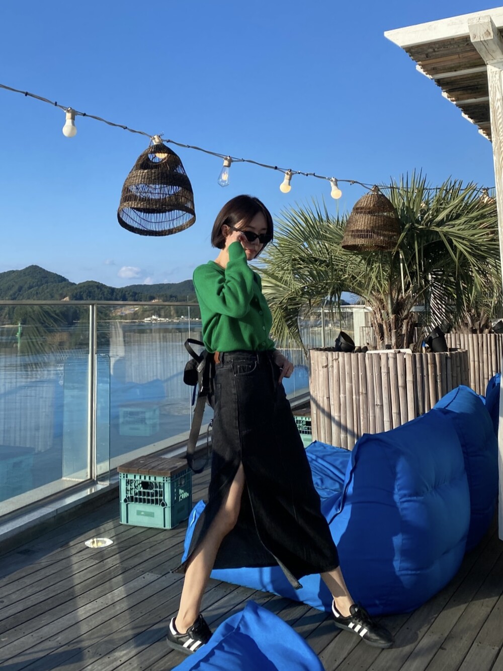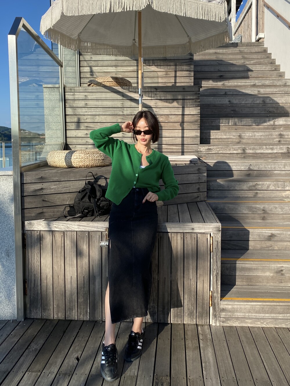 멋스럽게 떨어지는 흑청 롱스커트예요