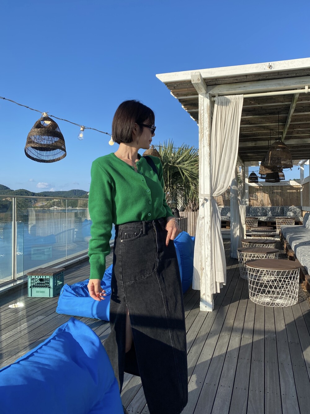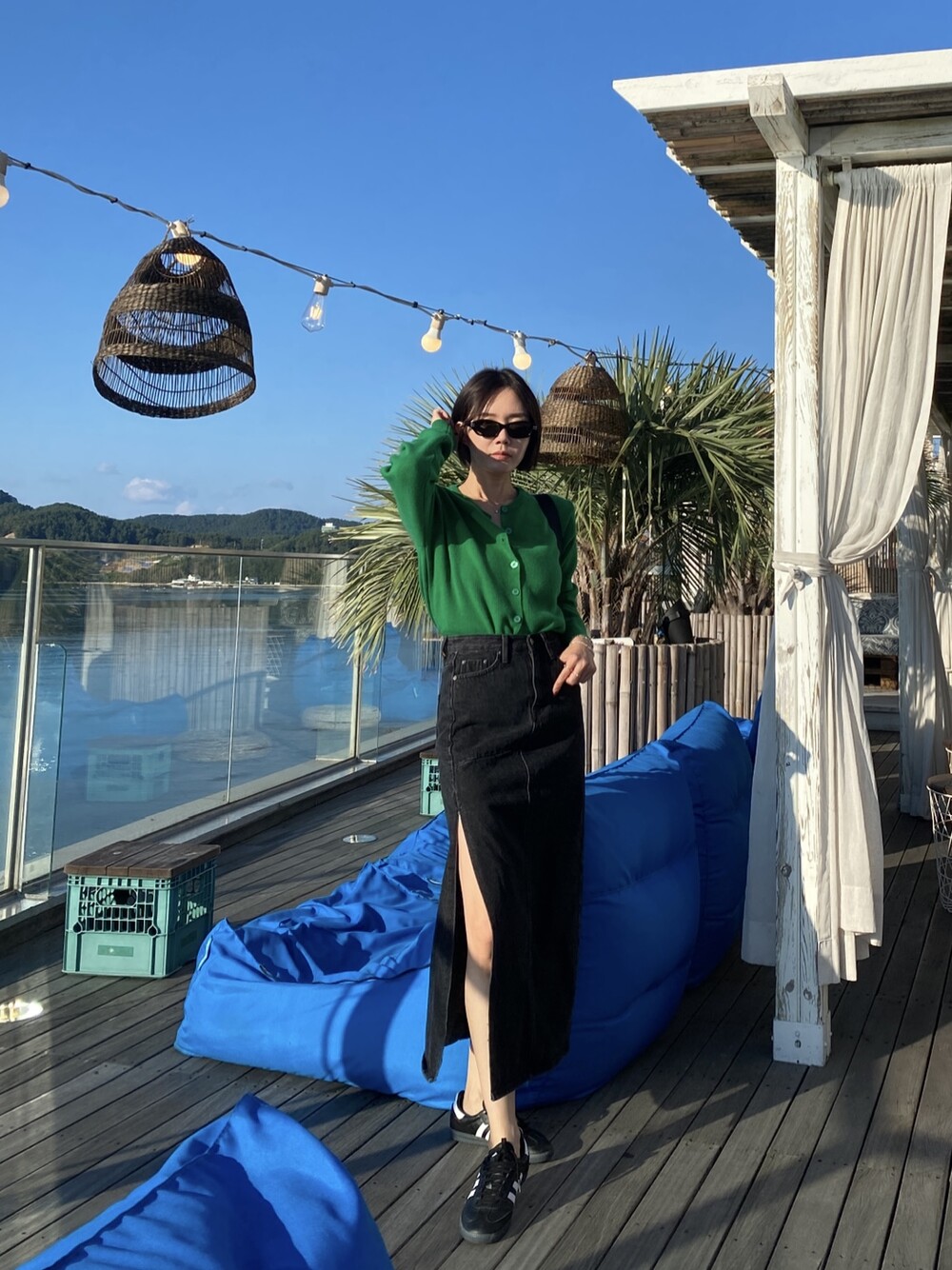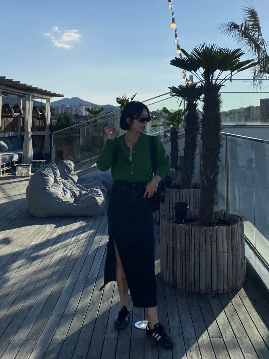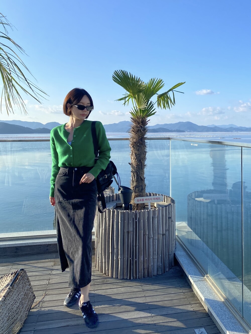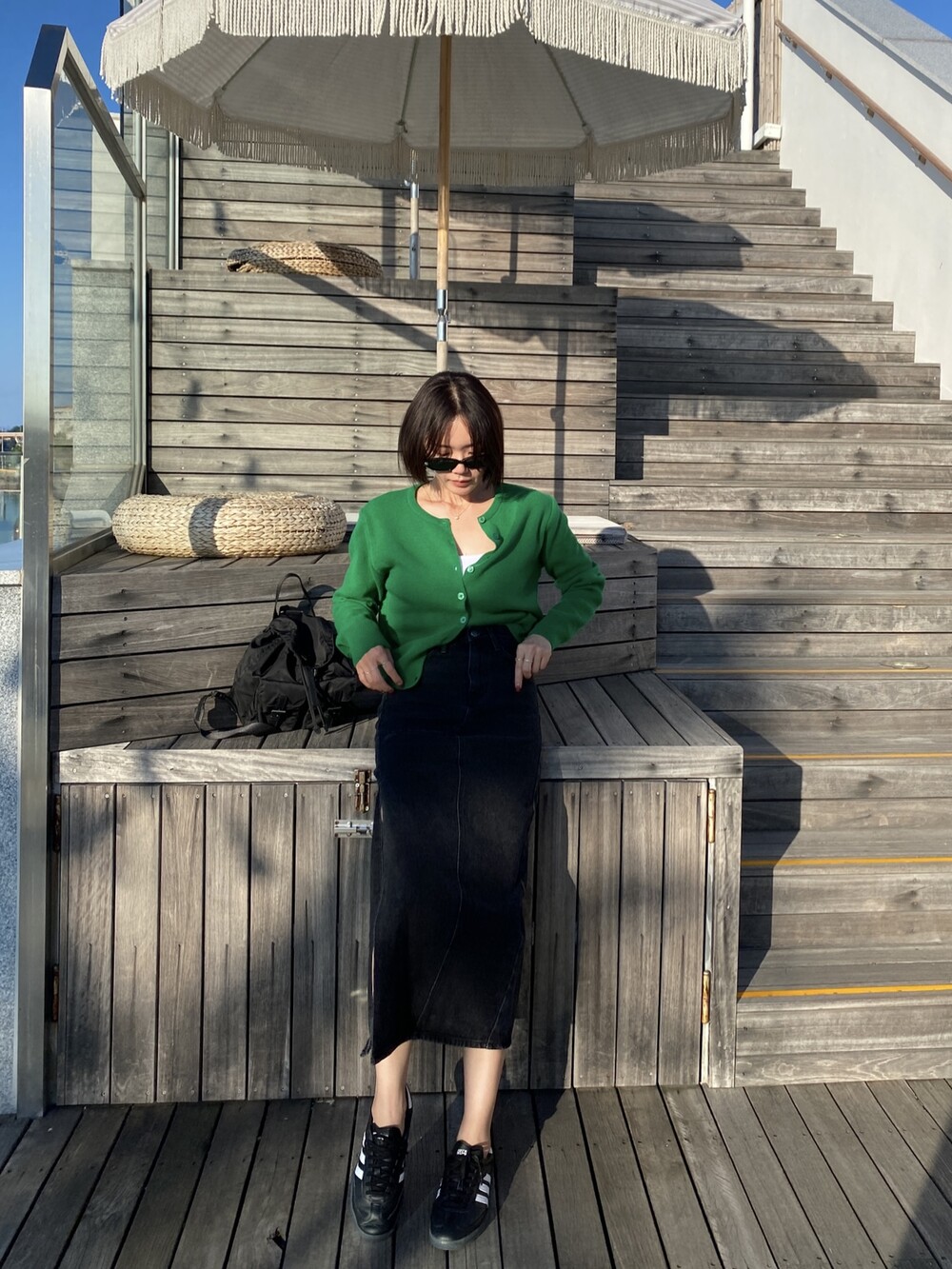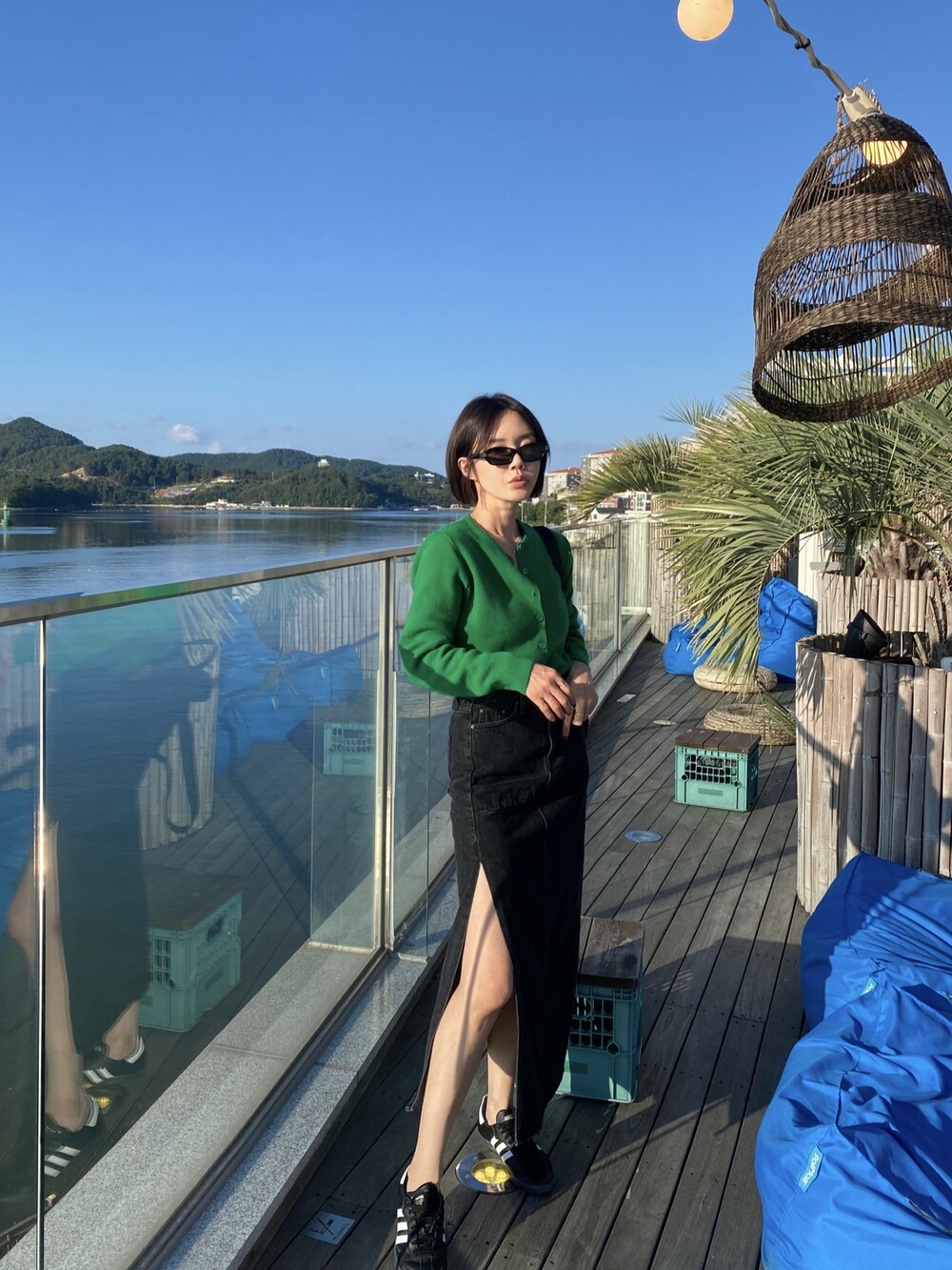 멋스럽게 떨어지는 흑청 롱스커트예요