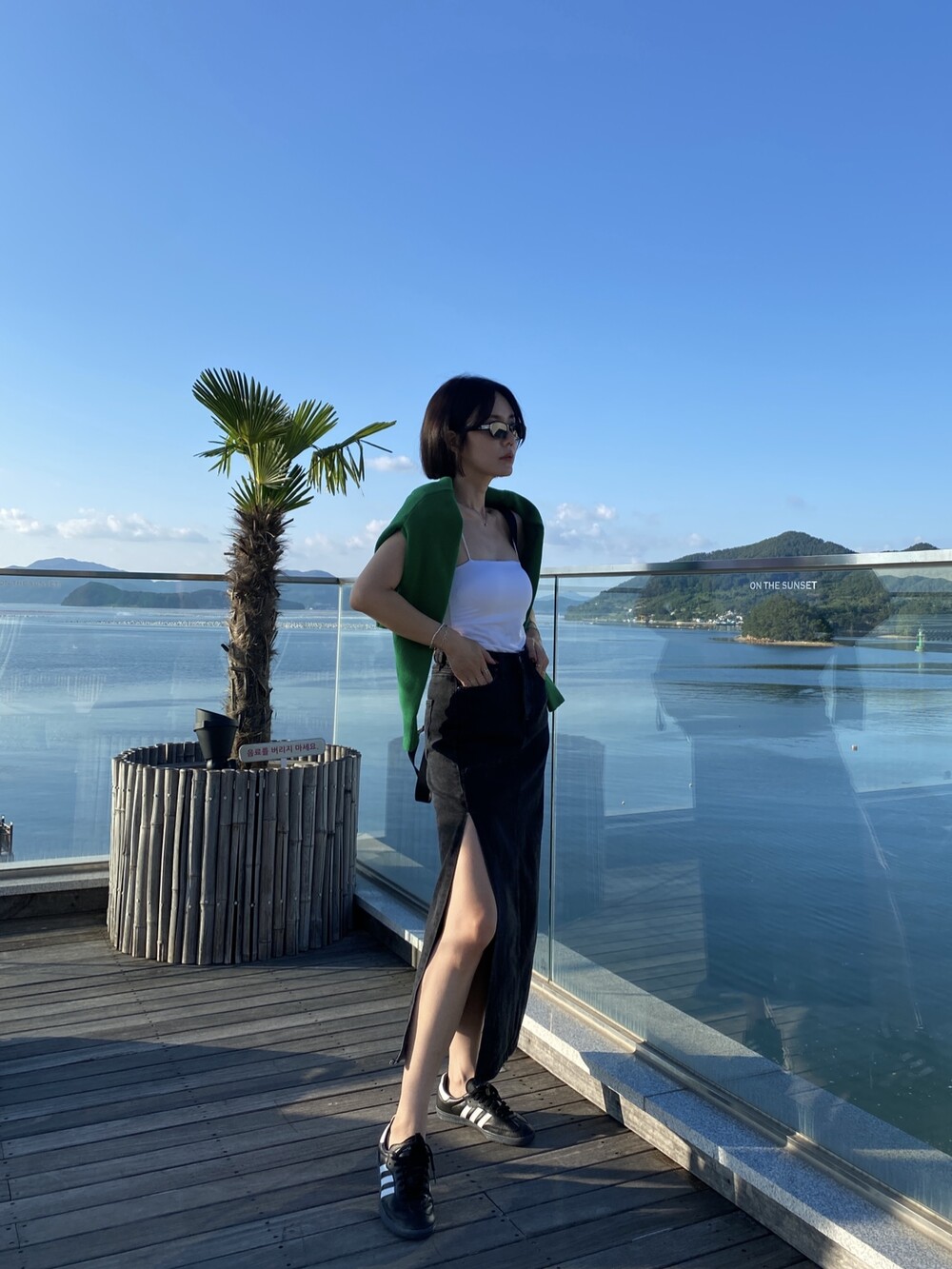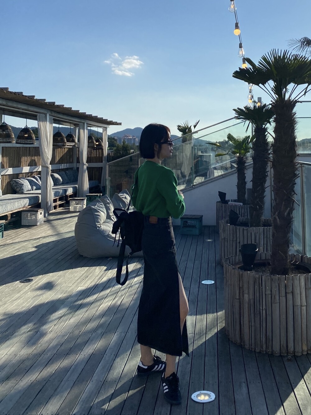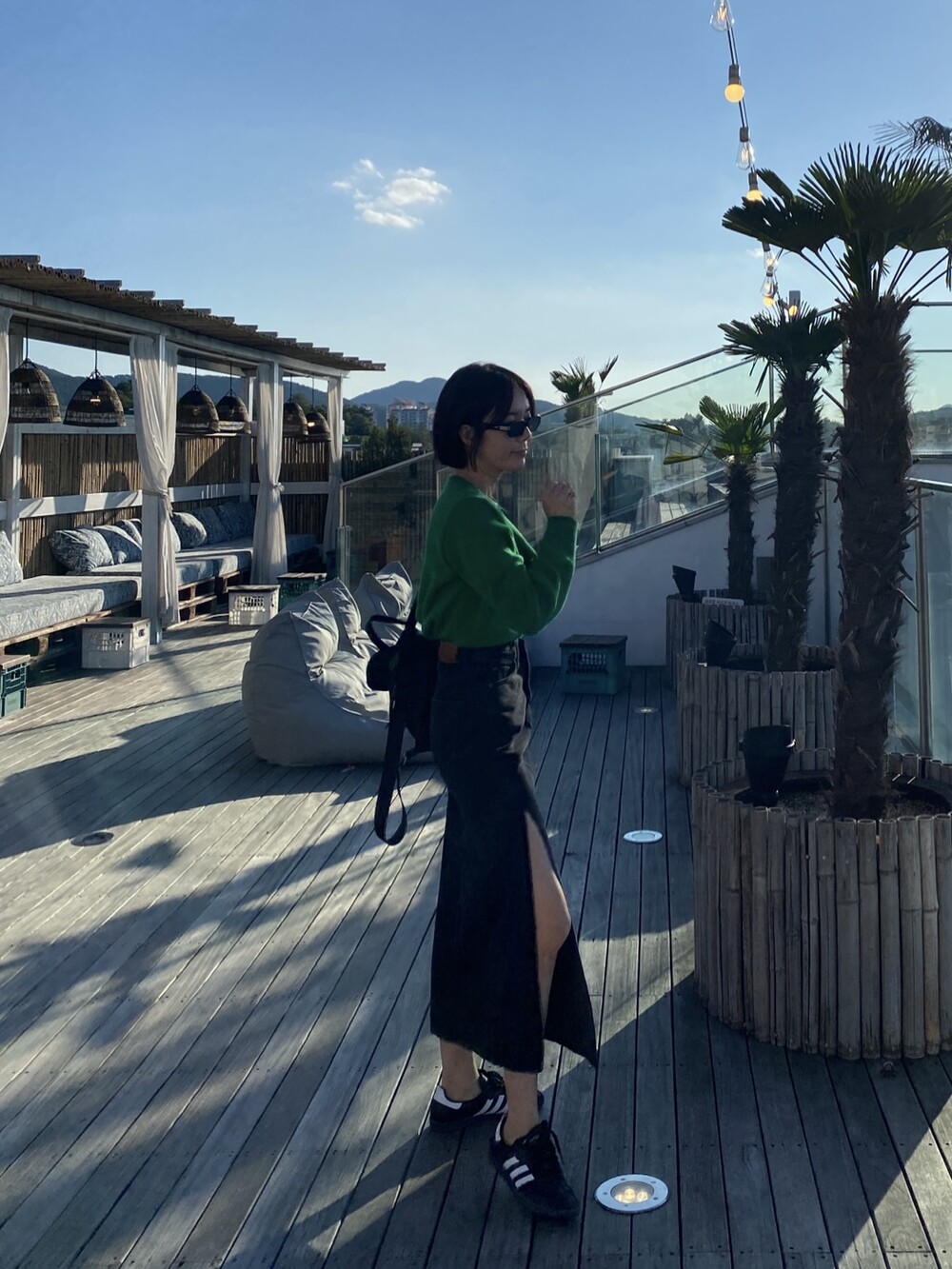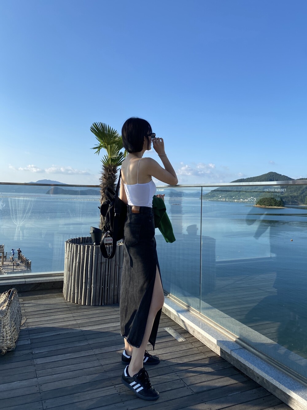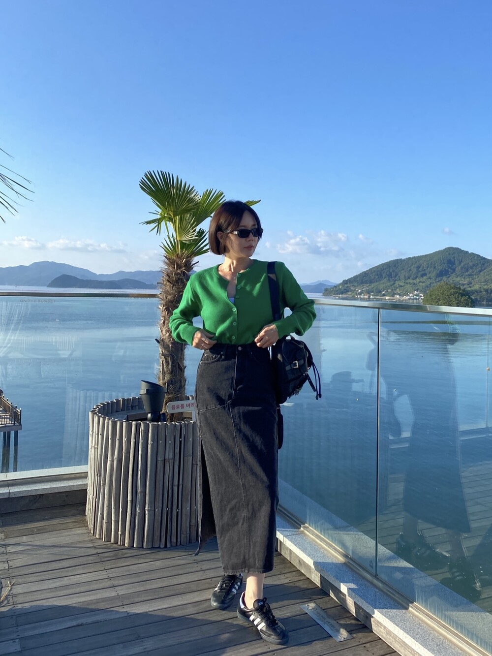 멋스럽게 떨어지는 흑청 롱스커트예요